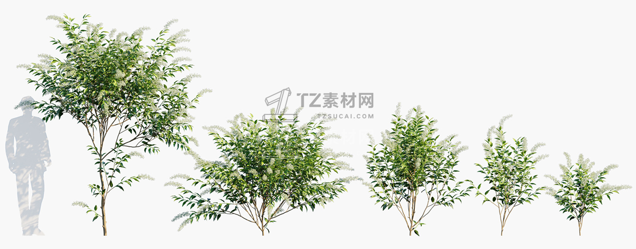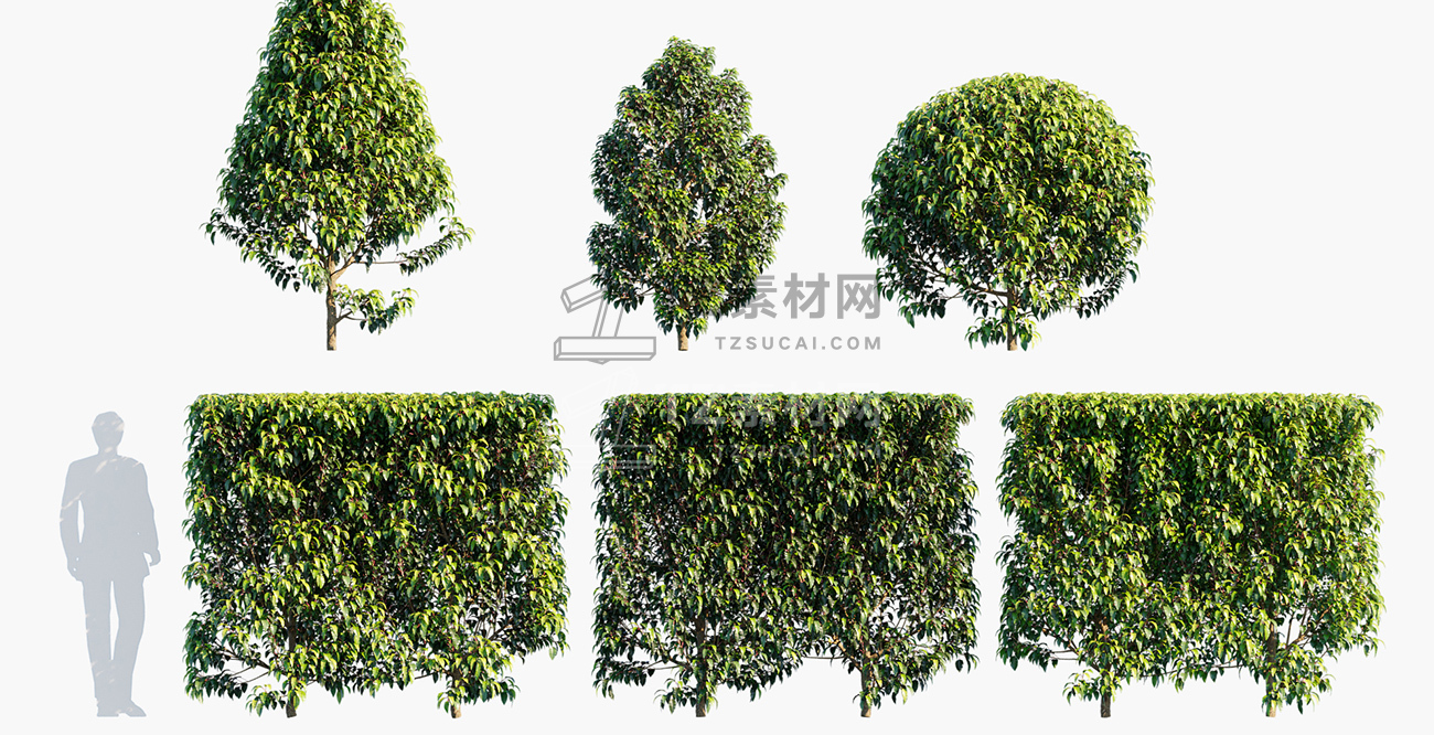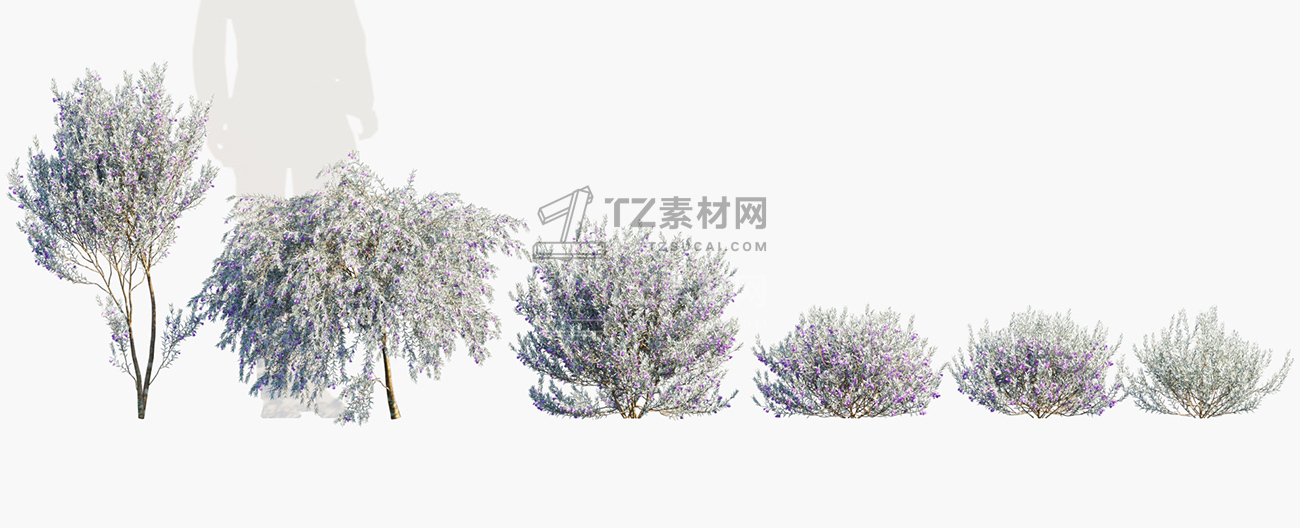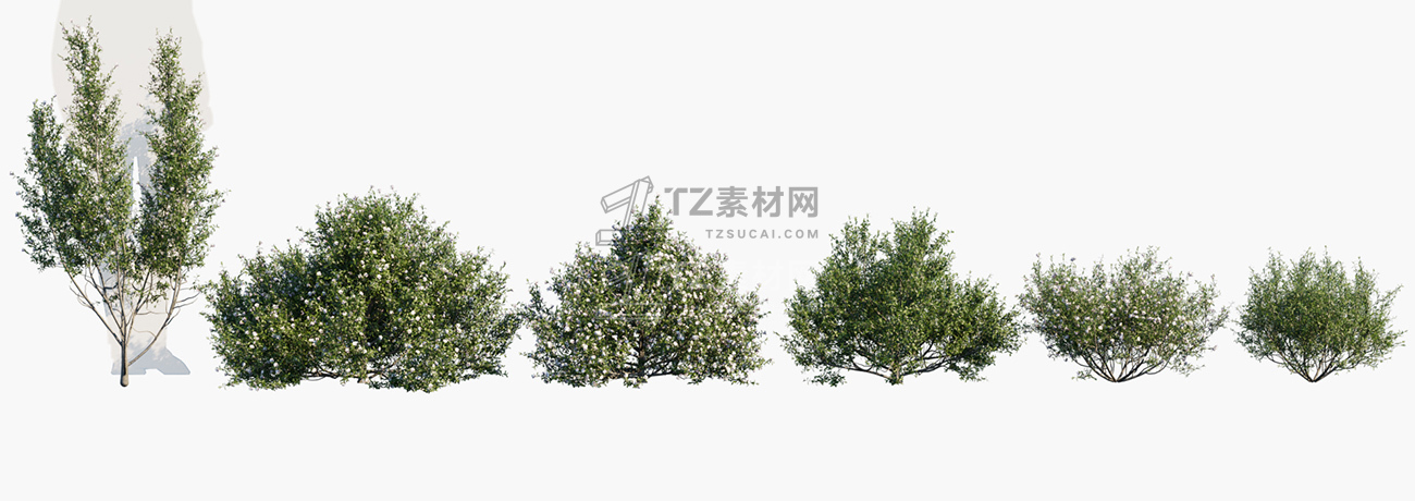 包含15种共104个常用于澳大利亚家庭景观美化的灌木和树木植物3D模型,3DS MAX格式,包含贴图材质