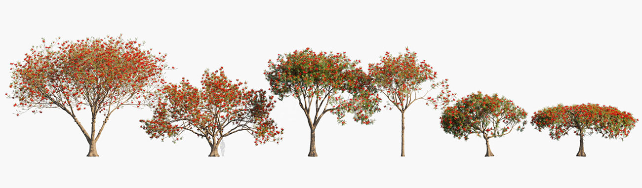 包含16种共90个常见的大洋洲树木主要在澳大利亚和新西兰树木植物3D模型,3DS MAX格式,所有模型均采用尽可能高的细节制作,准确表示用于Corona和VRay 渲染器,包含贴图材质