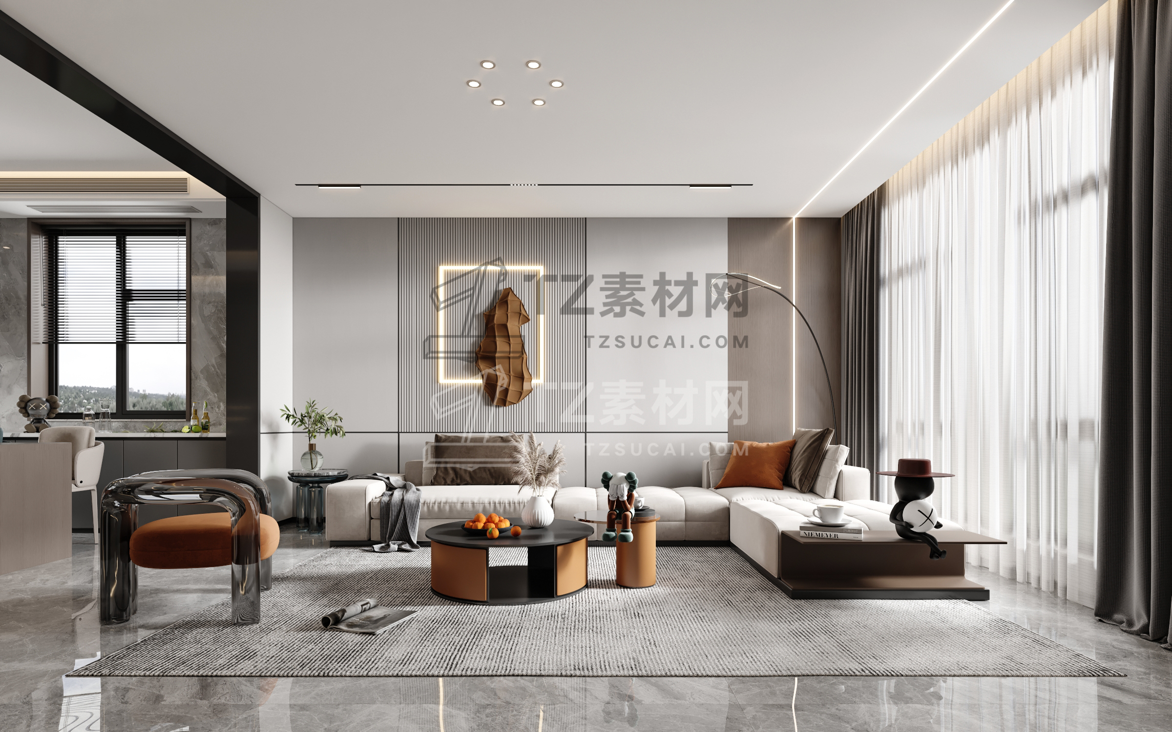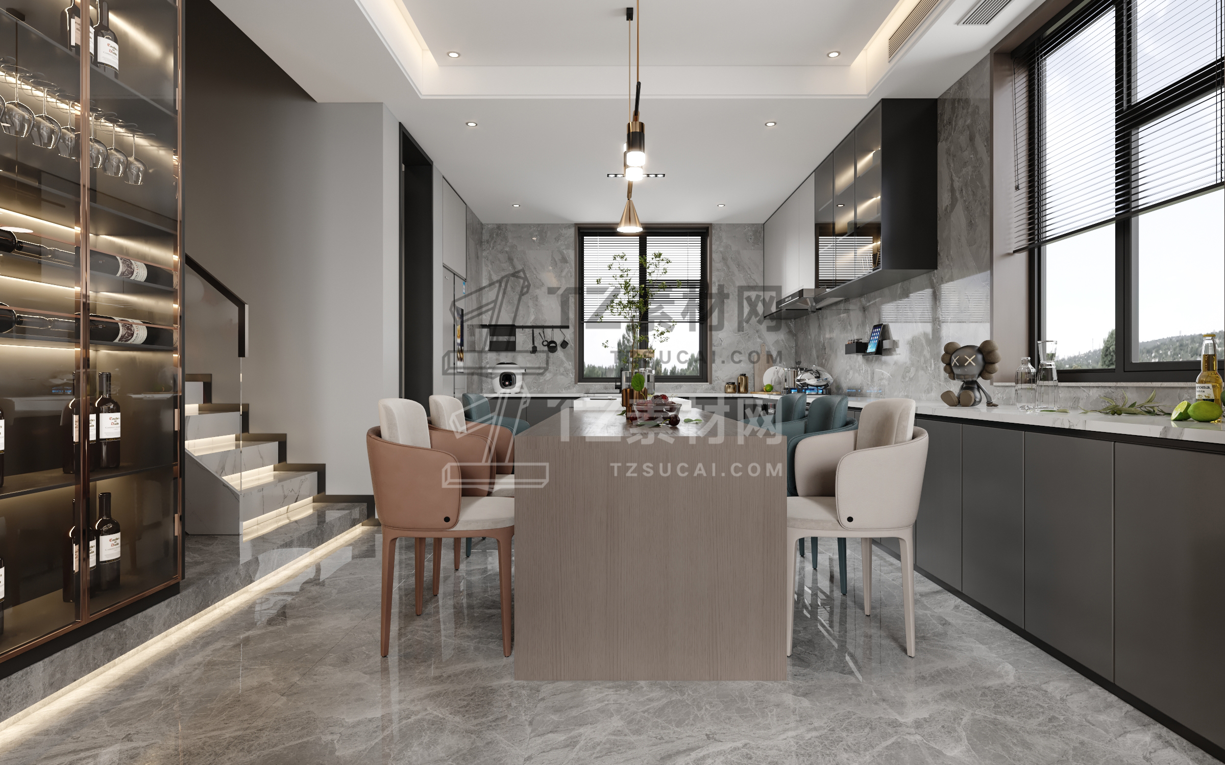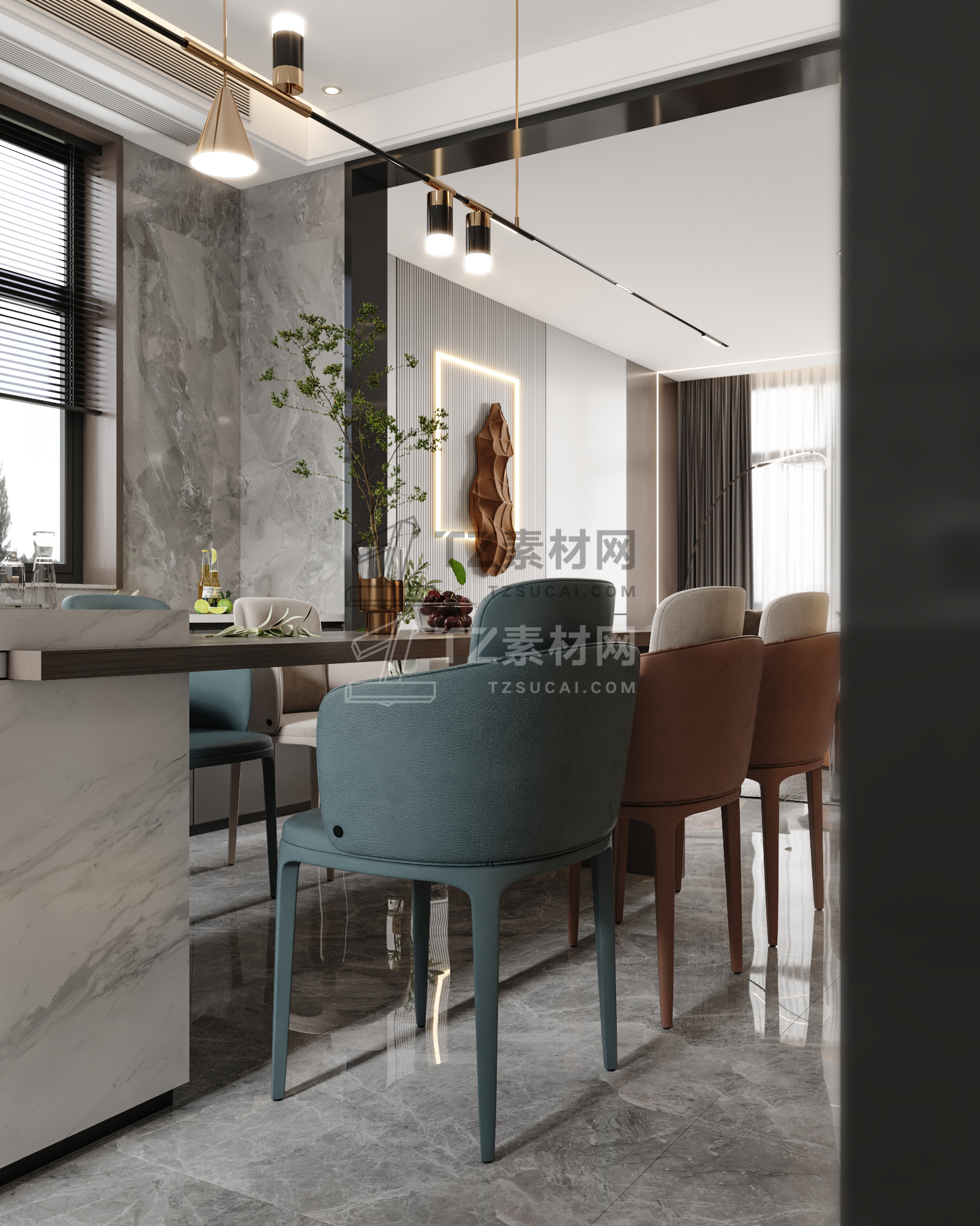 现代客厅餐厅模型+3dmax2014+VR渲染器