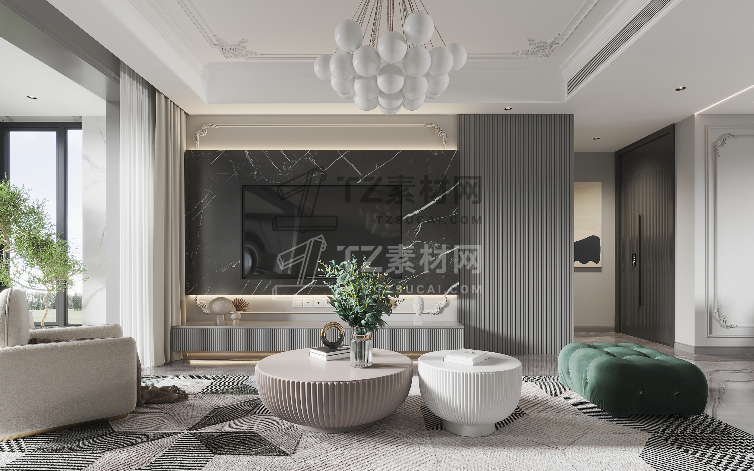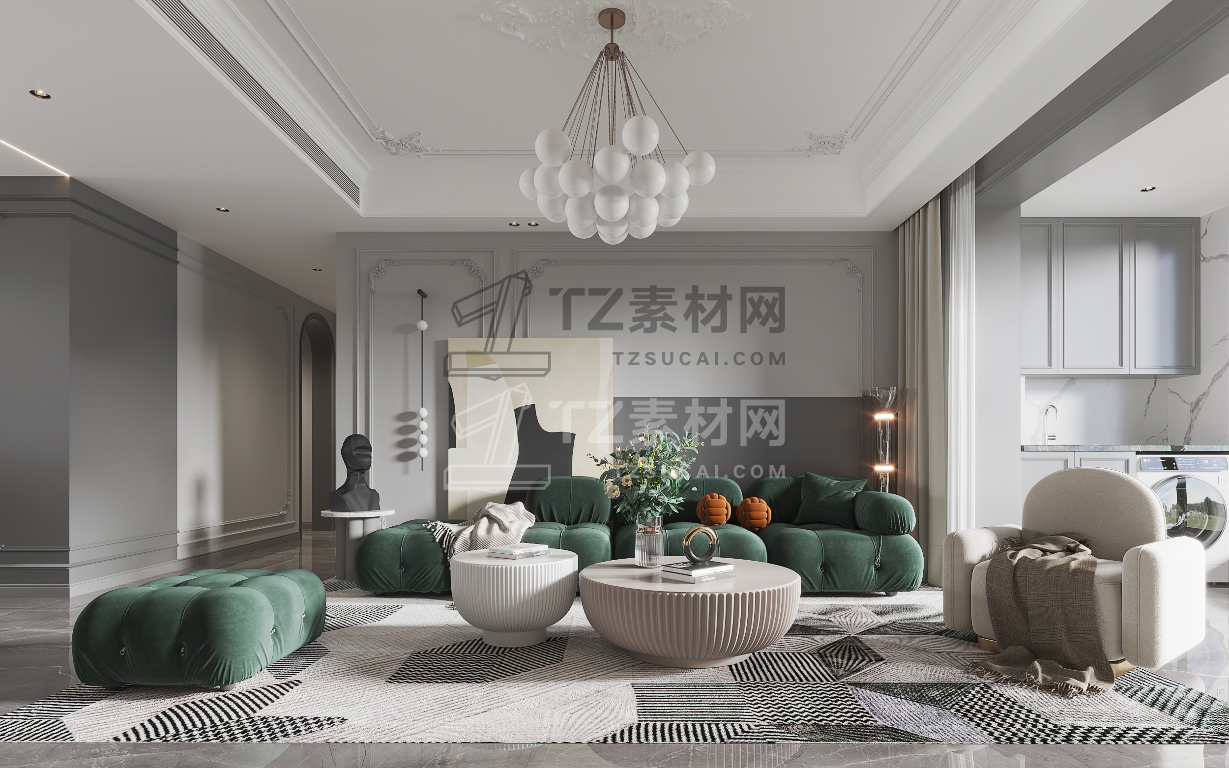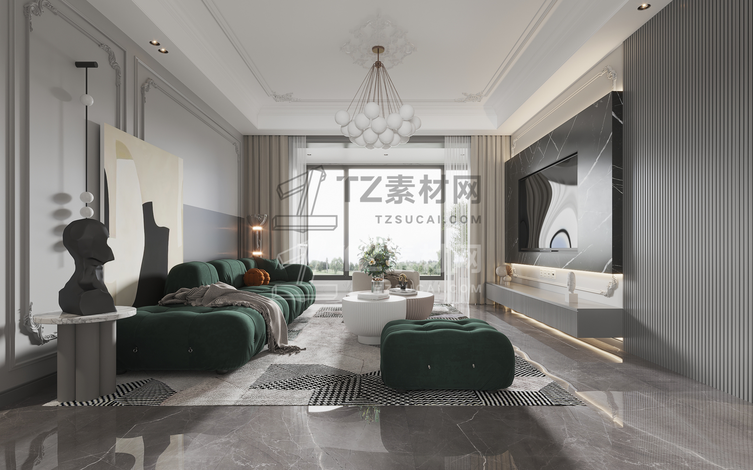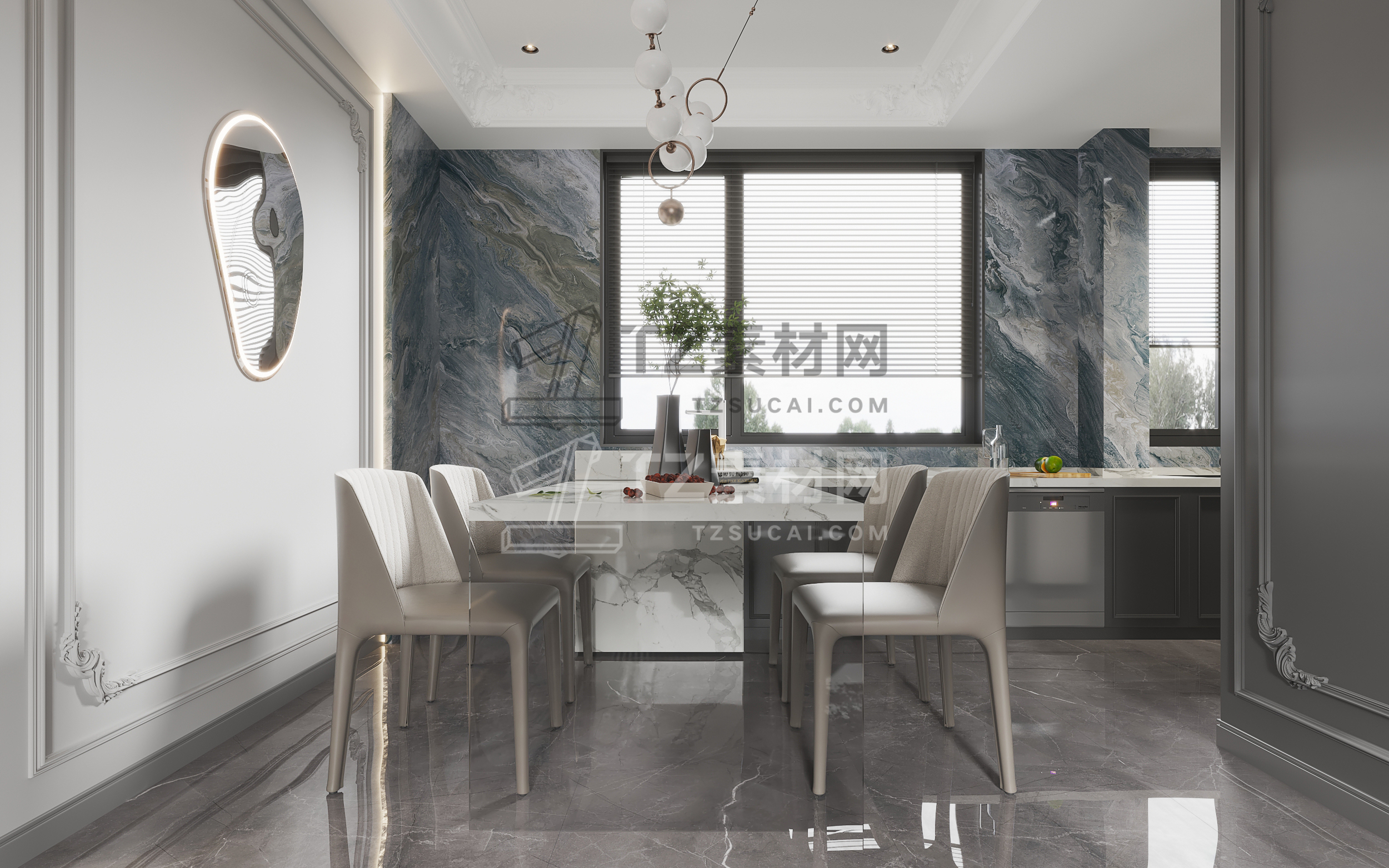 法式客厅餐厅模型+3dmax2015+VR渲染器