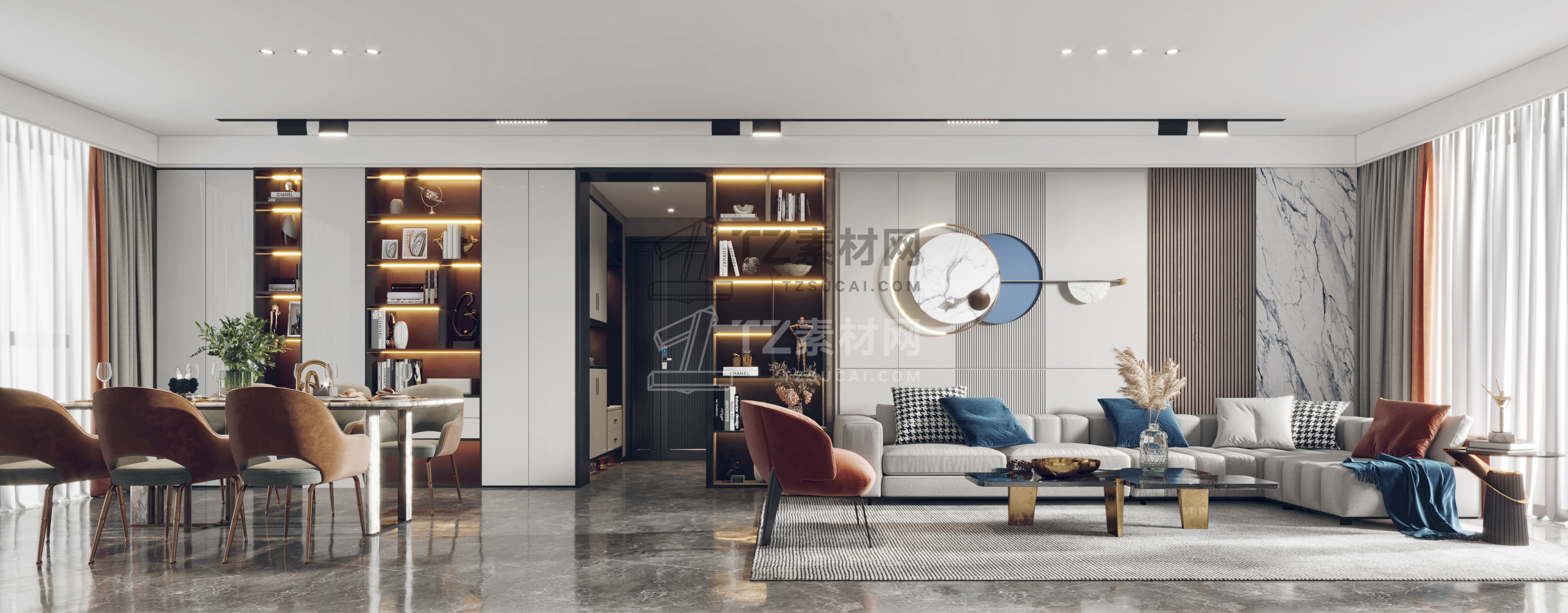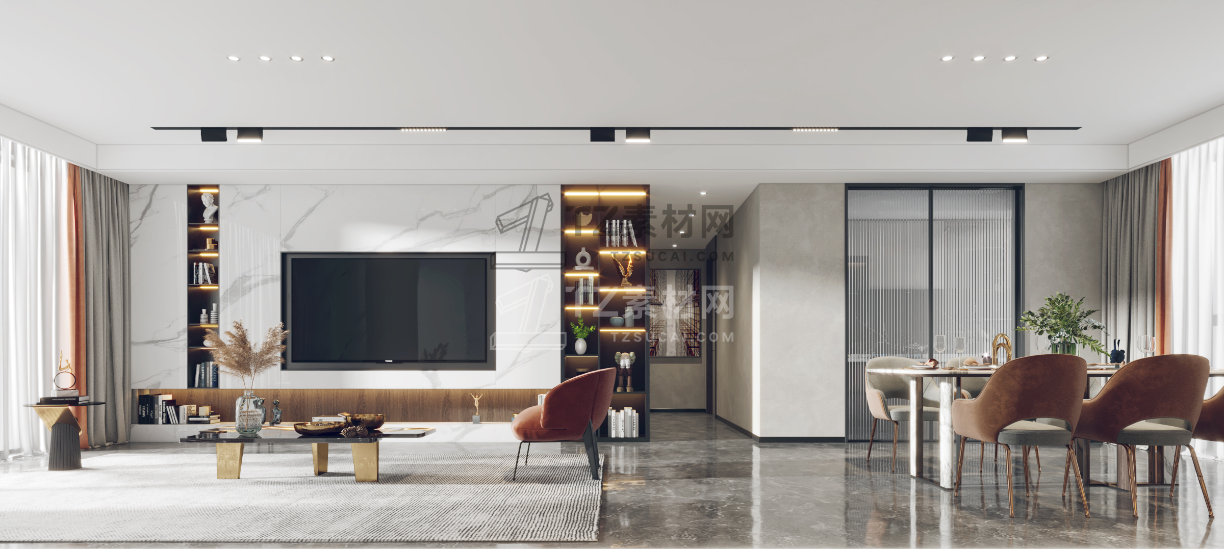 现代客厅餐厅模型+3dmax2014+VR渲染器