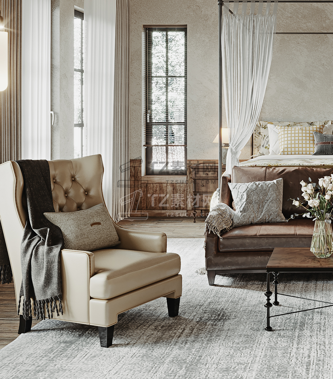 侘寂风卧室模型+3dmax2015+CR渲染器