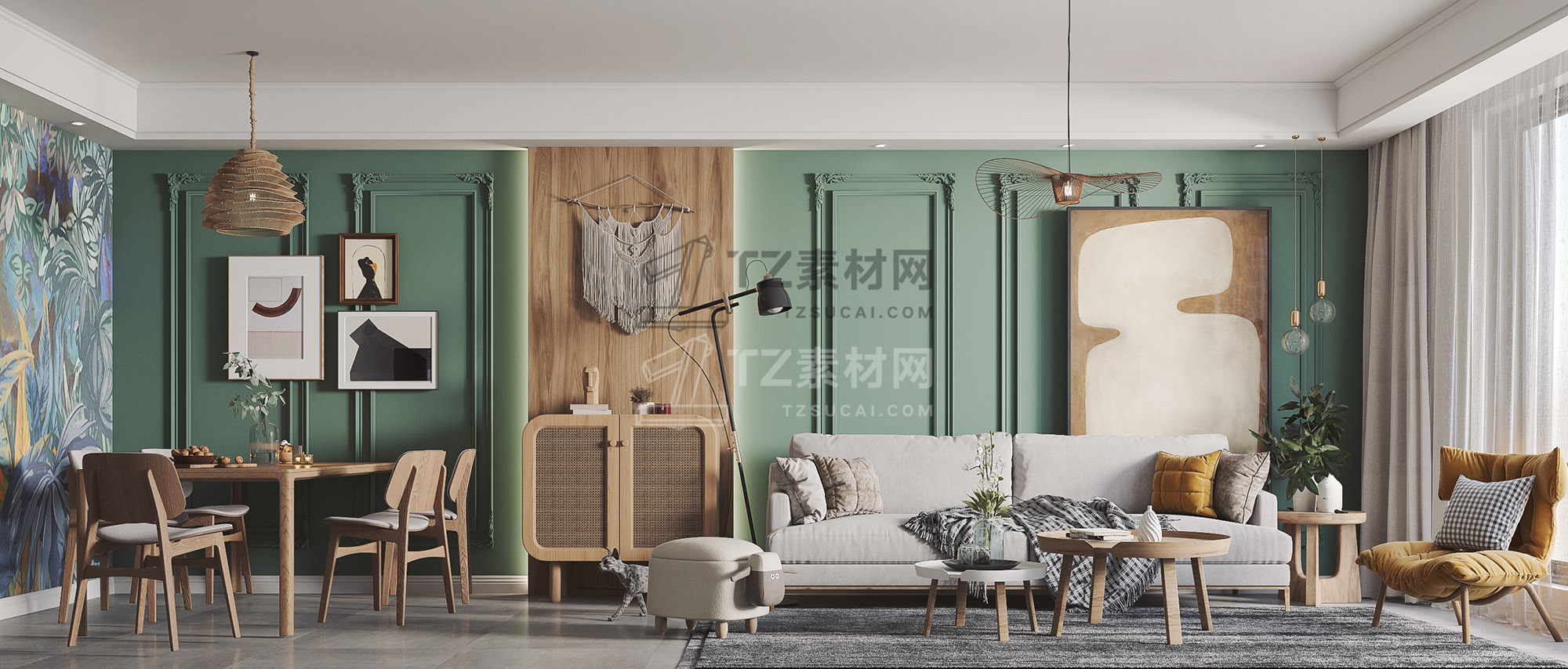 北欧客厅餐厅模型+3dmax2016+VR渲染器