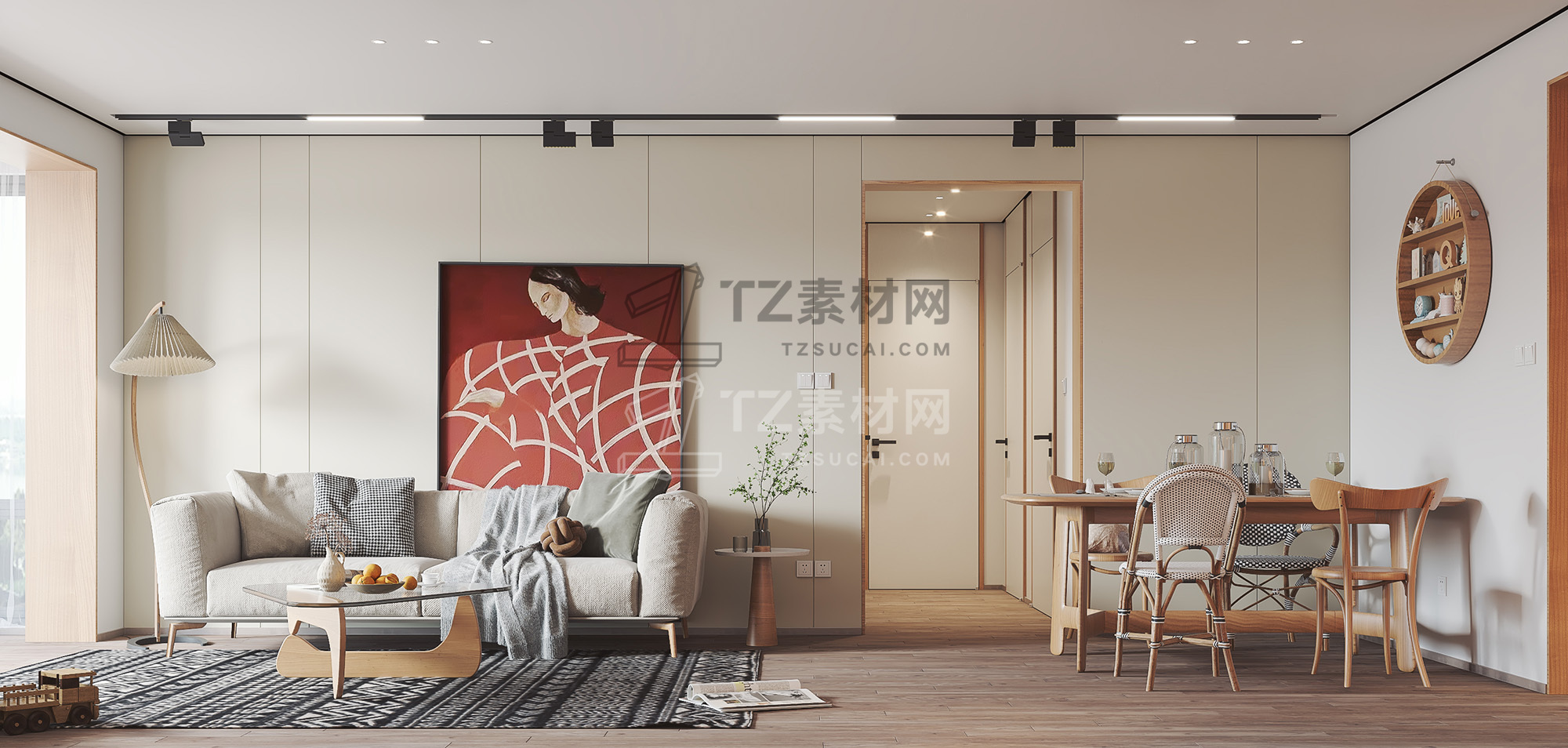 北欧客厅餐厅模型+3dmax2016+VR渲染器