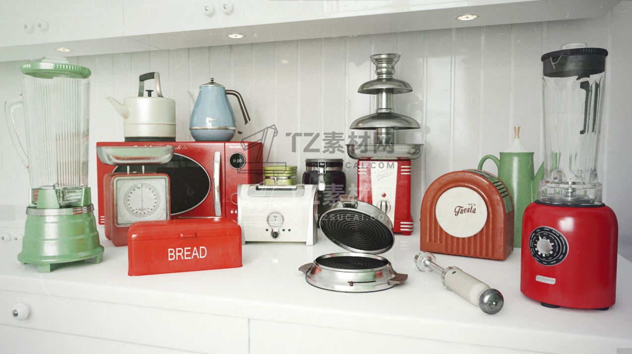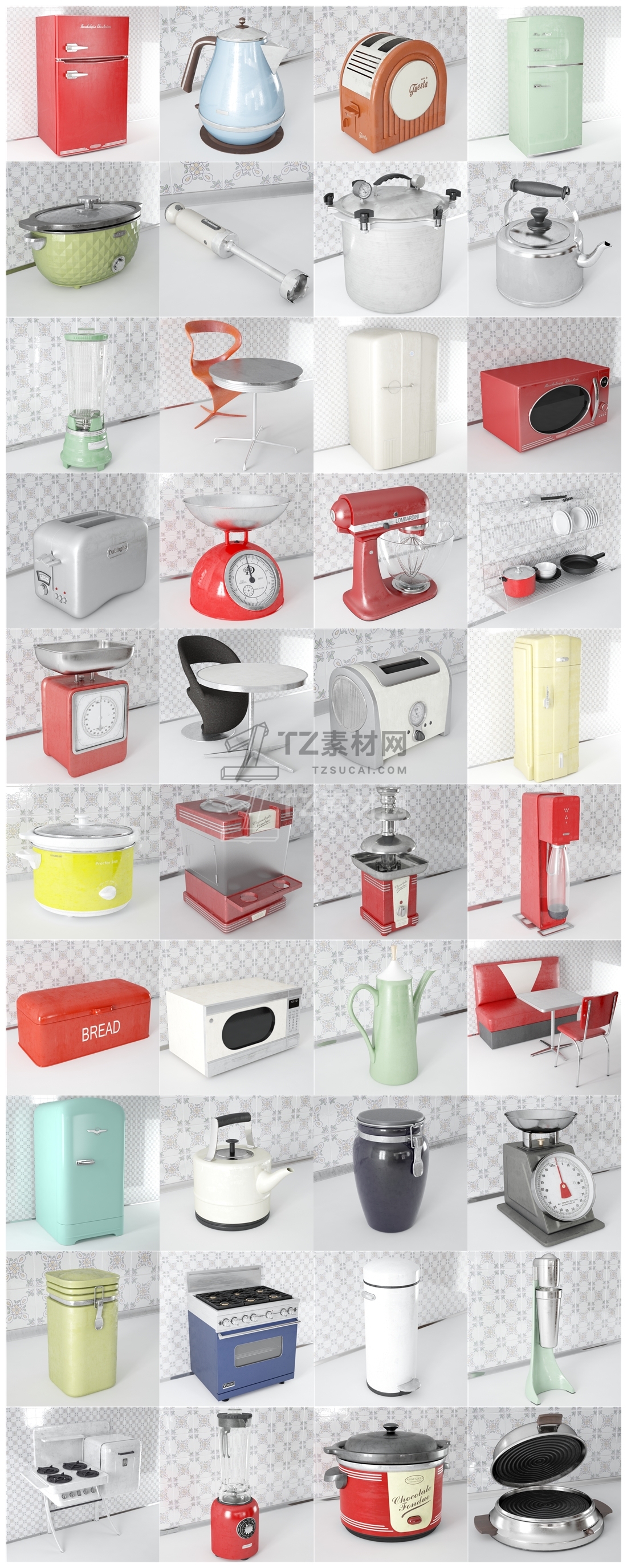 Archmodels vol. 143包含44个高精度厨房工具相关3D模型,比如破壁机、搅拌机、微波炉、秤、水壶、面包机等,3DS MAX格式,Vray渲染器,包含贴图,是单独的模型,不是完整的场景