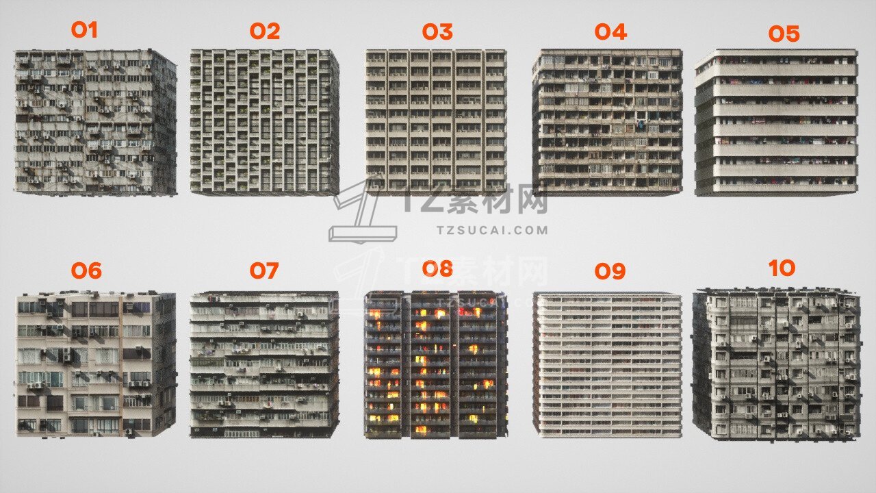包含10组贴图素材,主要是各种楼房的PBR真实贴图,JPG格式