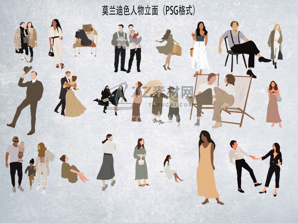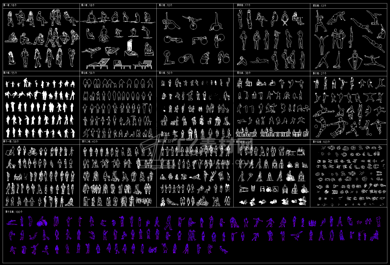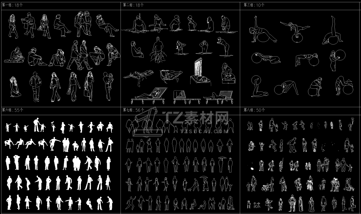 多组CAD人物立面模块+多种风格彩色立面人物素材