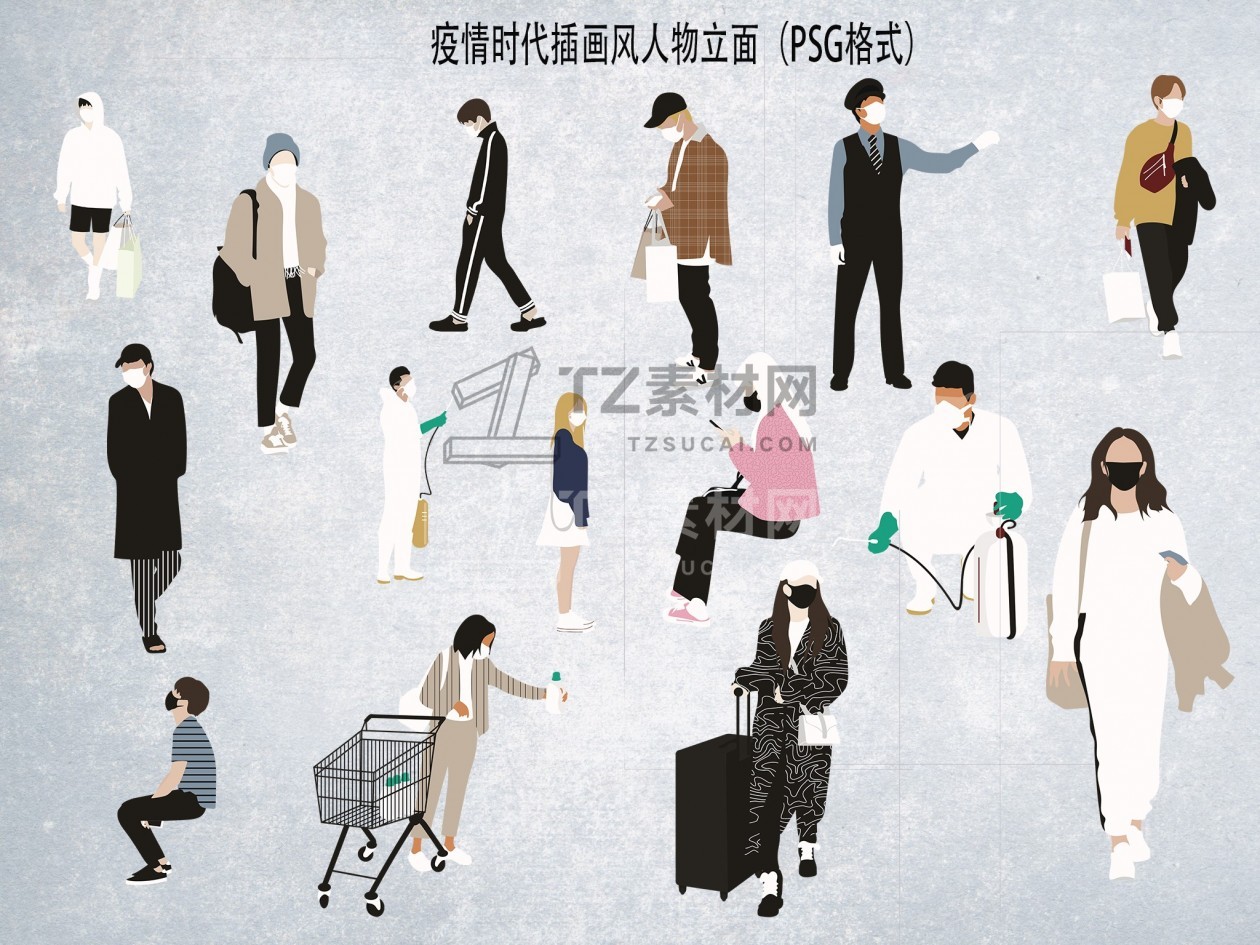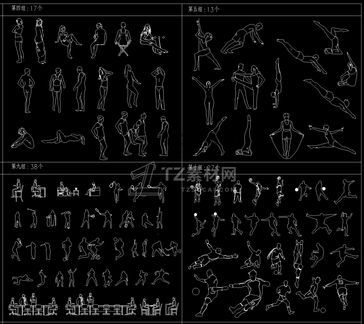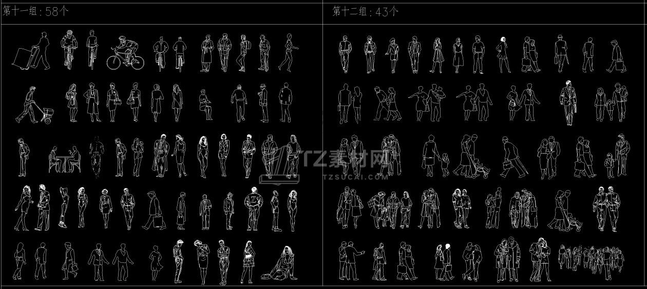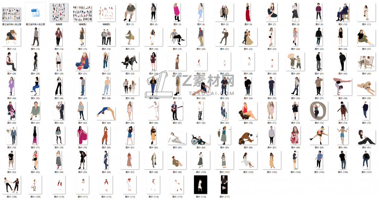 多组CAD人物立面模块+多种风格彩色立面人物素材