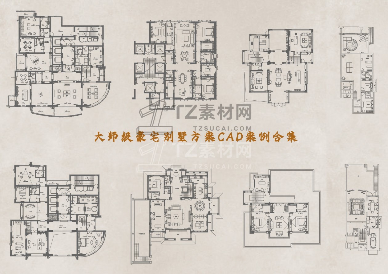 大师级百套豪宅别墅方案CAD案例合集1-4(400套)