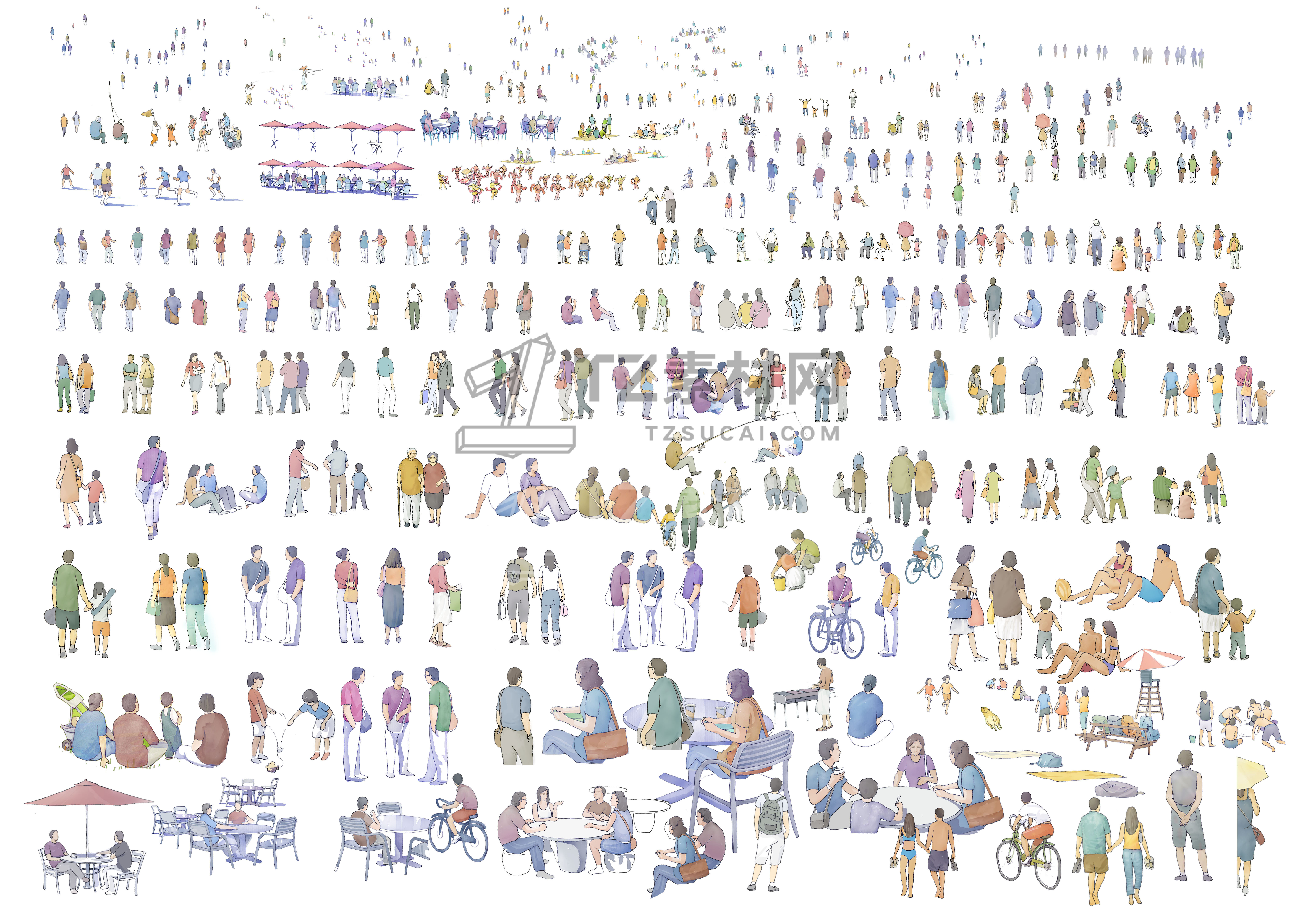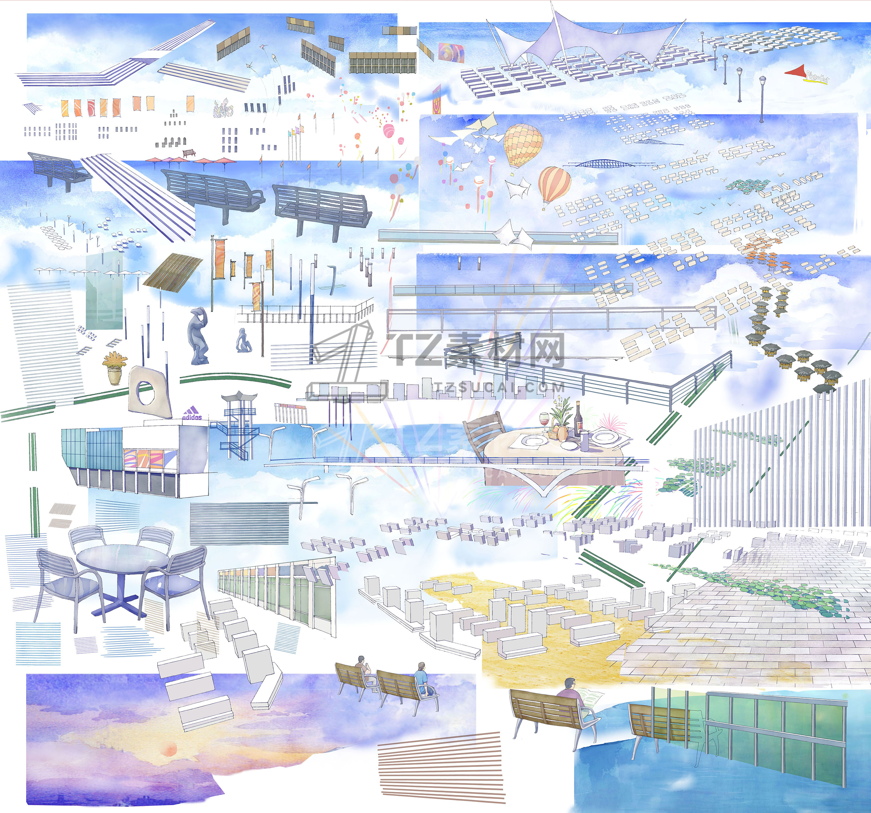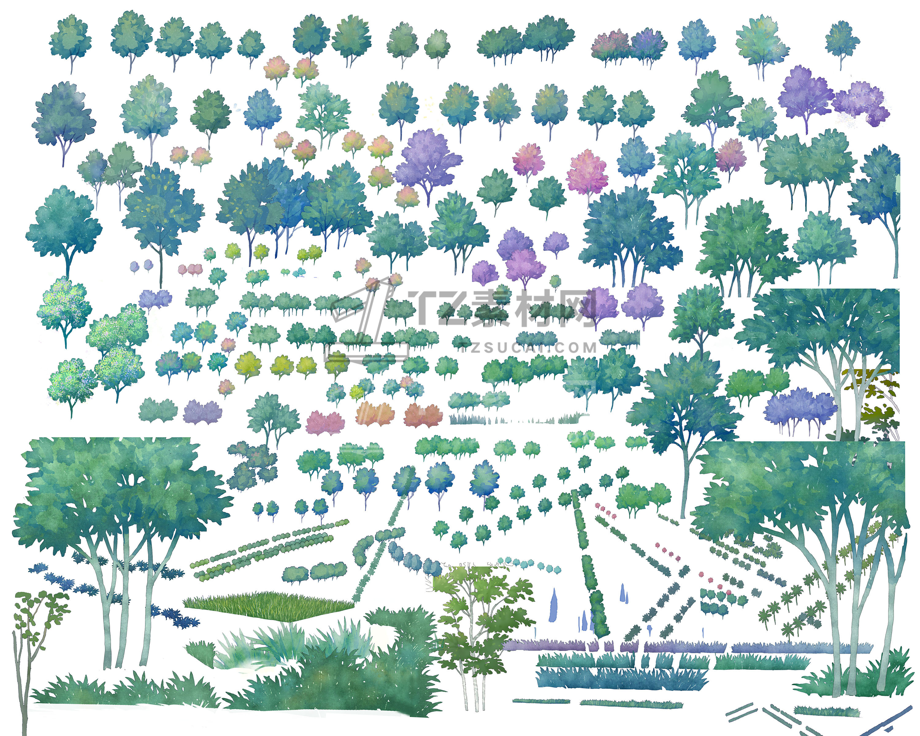 室内设计AECOM水彩风PS素材合集+40只立面植物ps笔刷