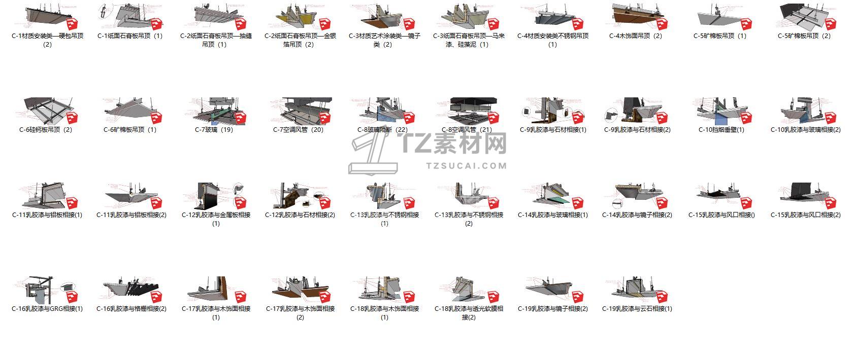 精选墙、顶、地CAD三大节点合辑丨含施工说明+SU模型模块