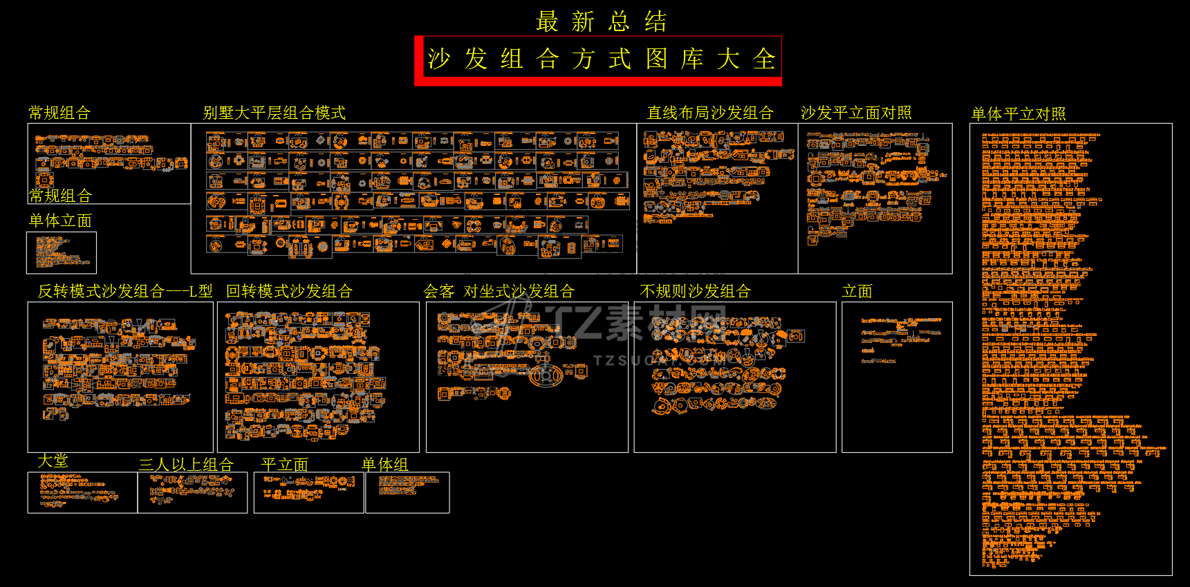 最新沙发组合方式大全,辅助设计平面及施工图平面深化,上千图块汇总,汇总不易,希望珍惜。