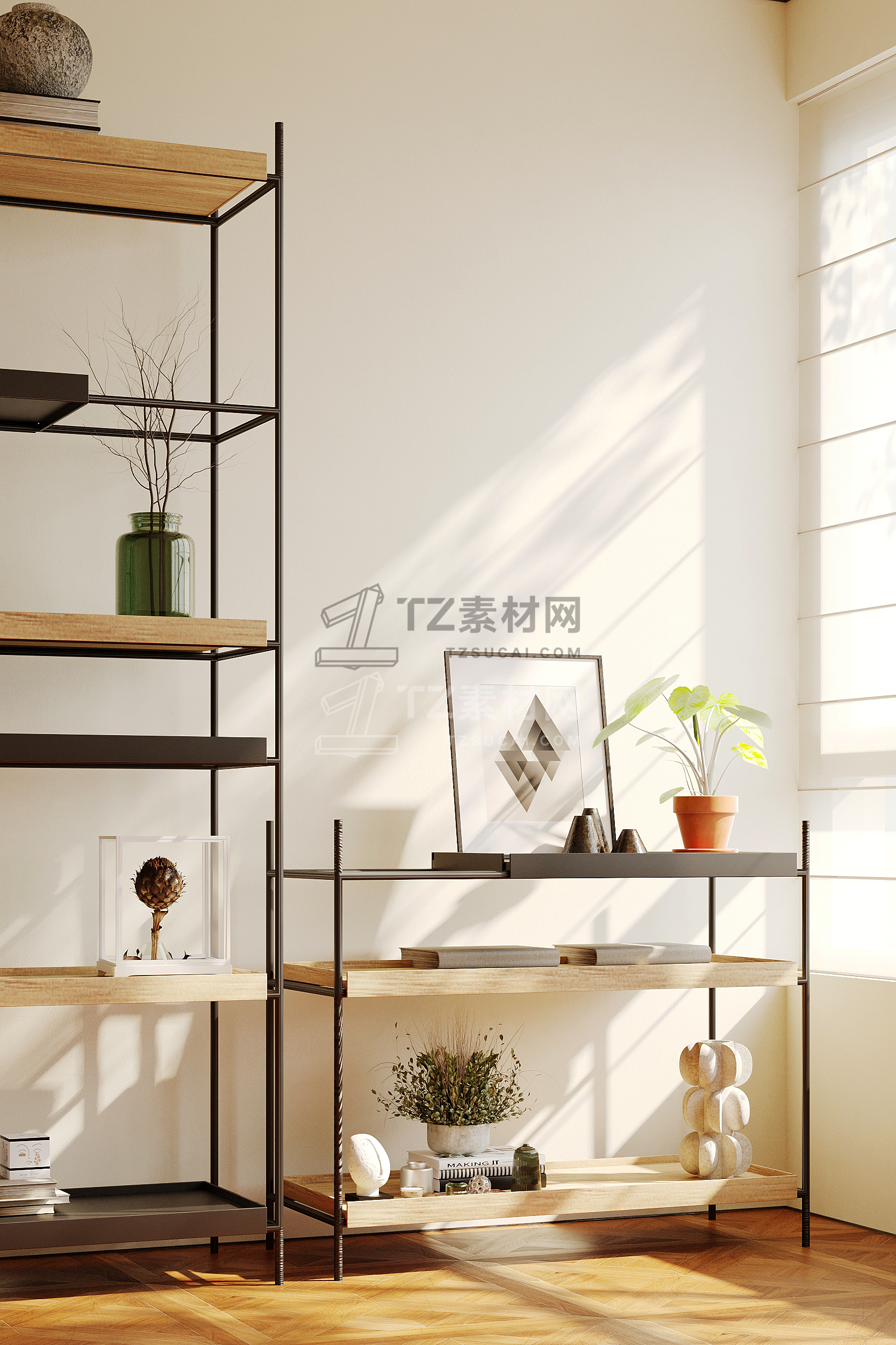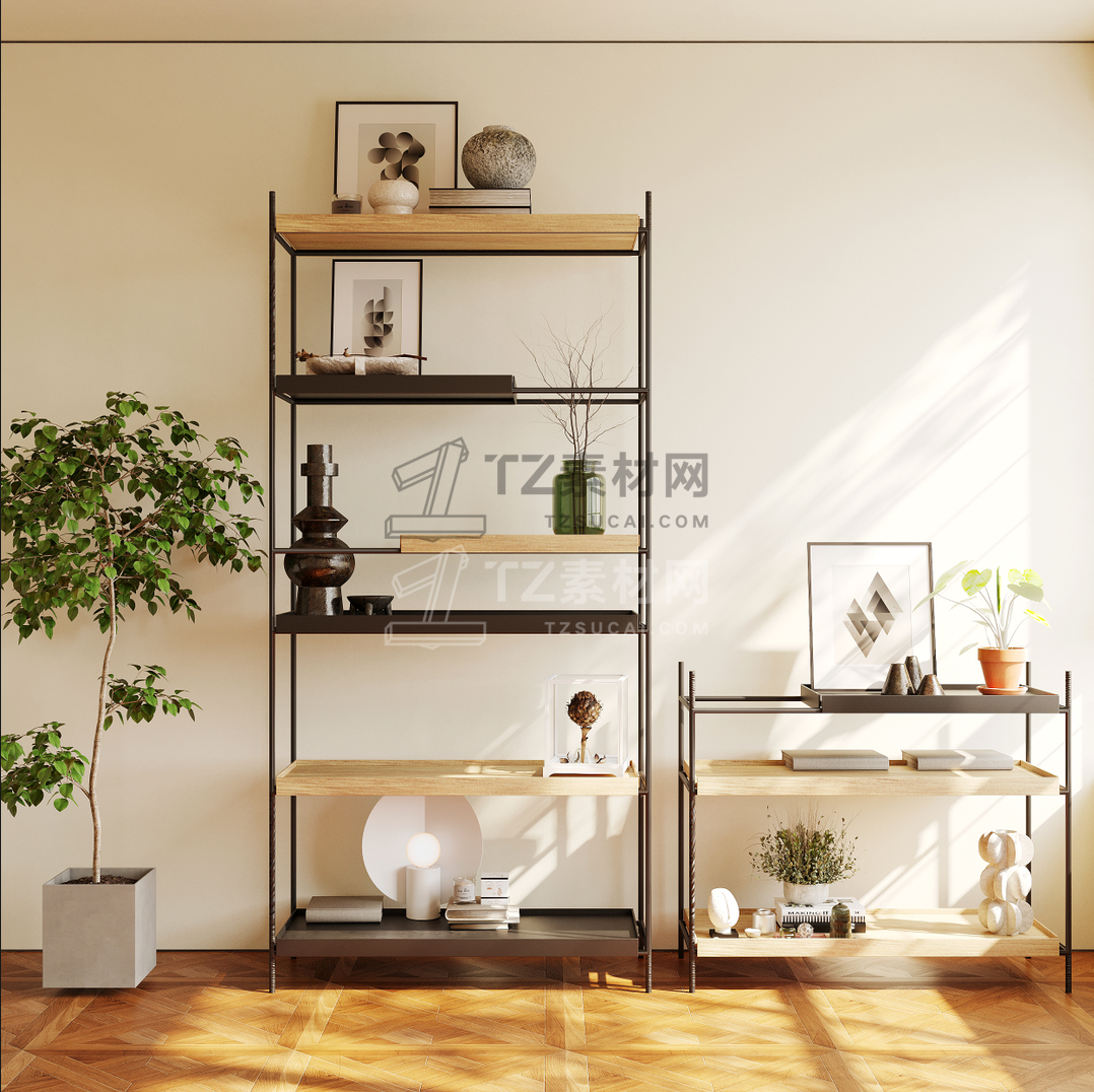 现代极简置物架,书架,装饰架,铁架,装饰画,绿植