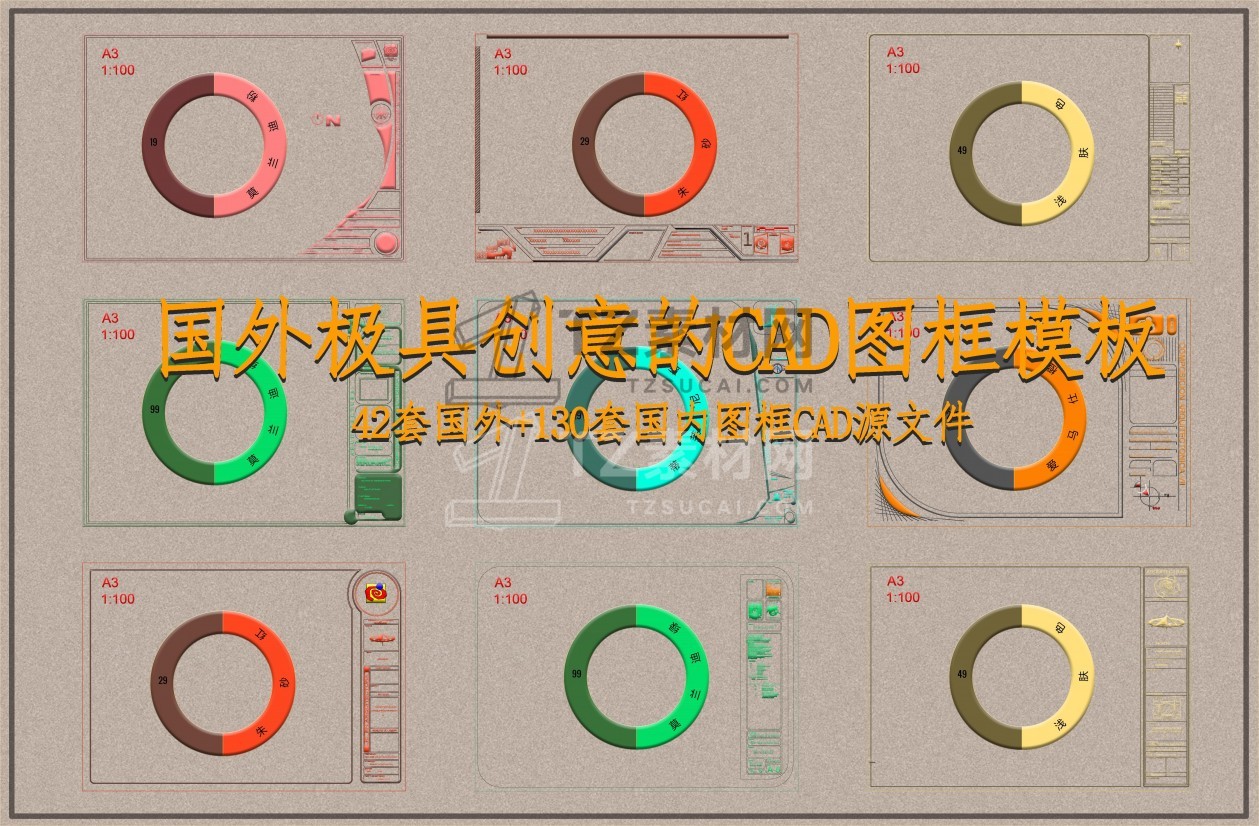 国外图框模板-A3图框2007版+国内130余款常用CAD图框模板+CAD配色色卡
