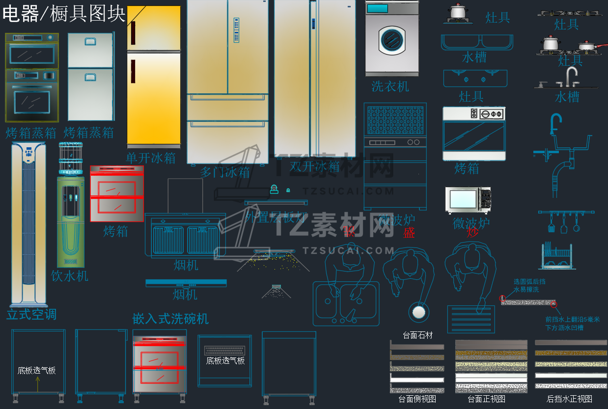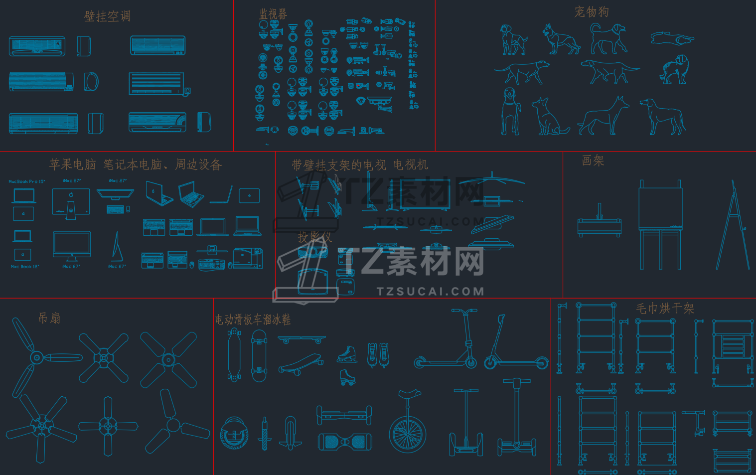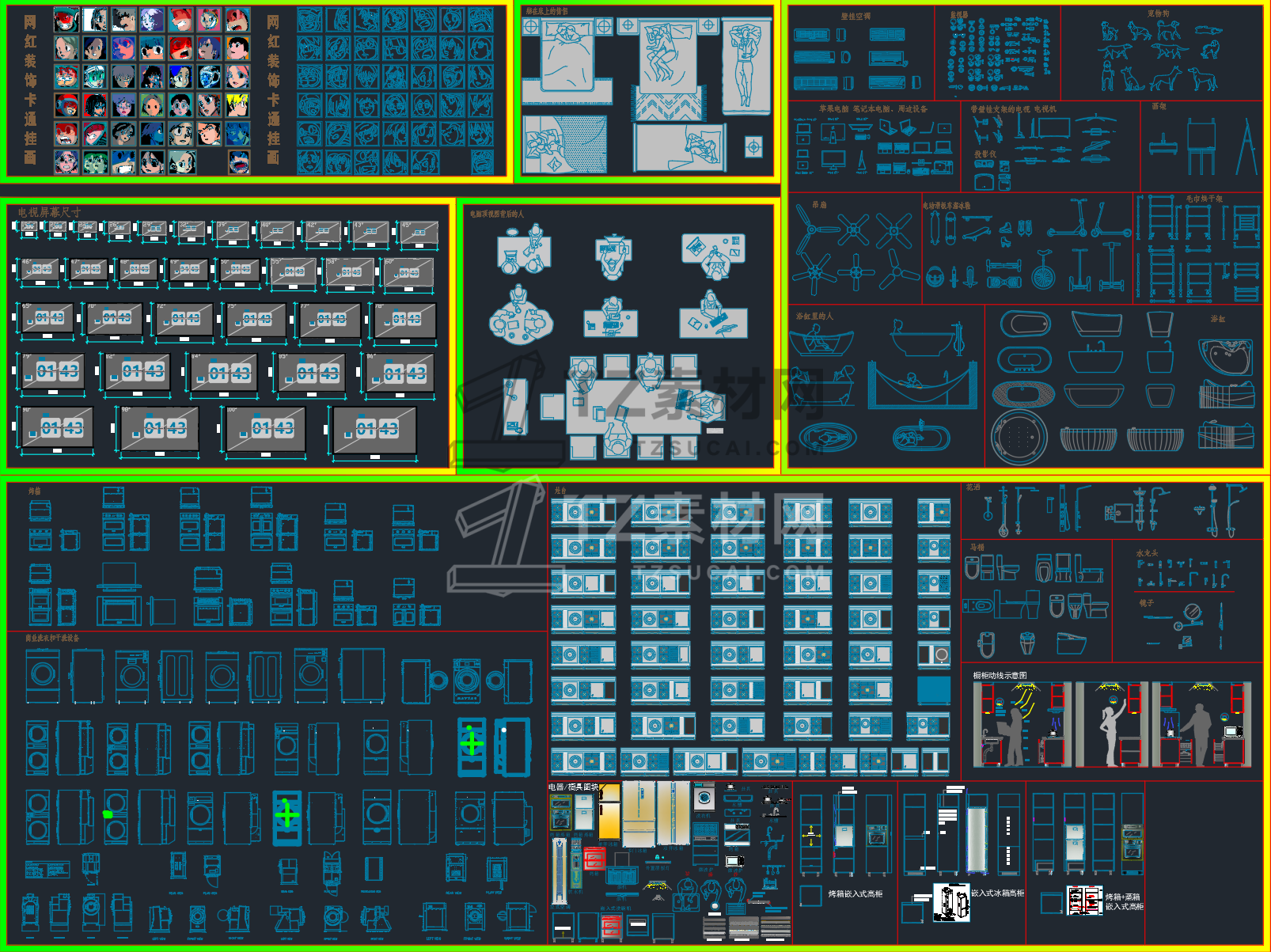 含现代比较流行的网红挂画和常用的洁具、电器、厨具等图块,内容如下: