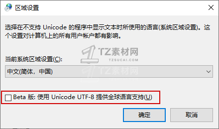 ▲勾选"Beta版:使用Unicode UTF-8提供全球语言支持"