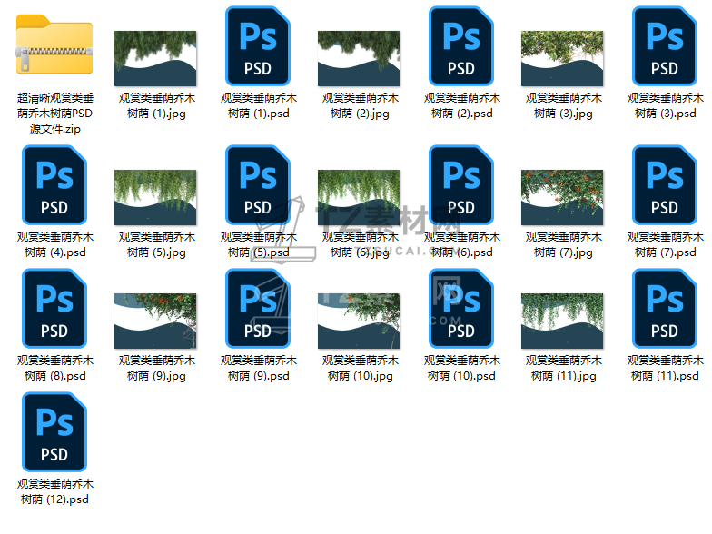 超清晰观赏类垂荫乔木树荫PSD源文件12个