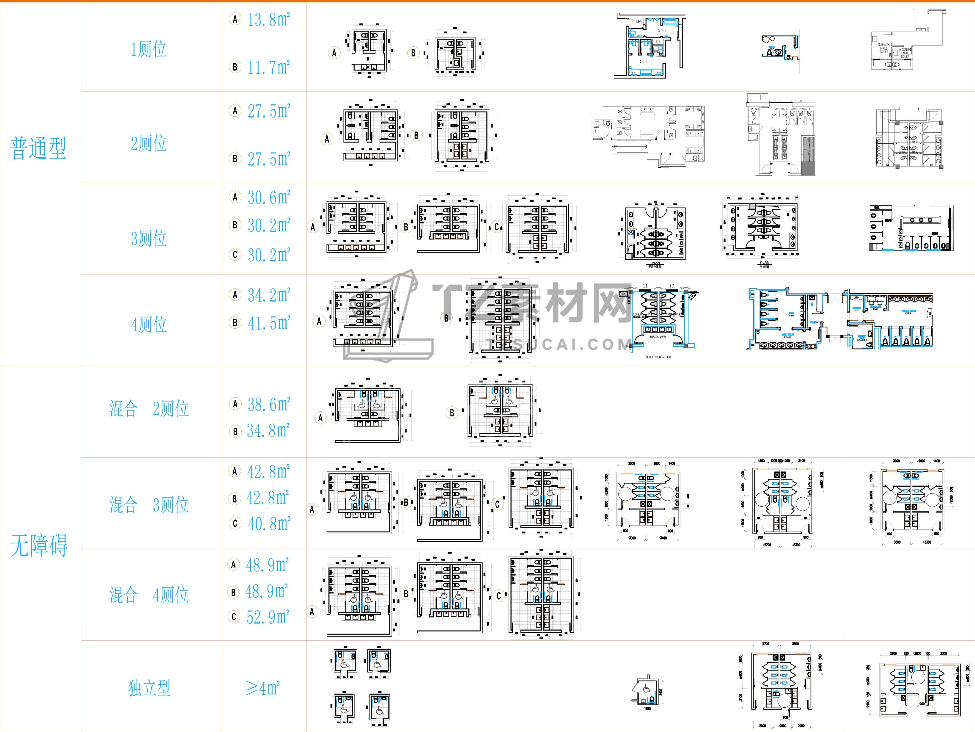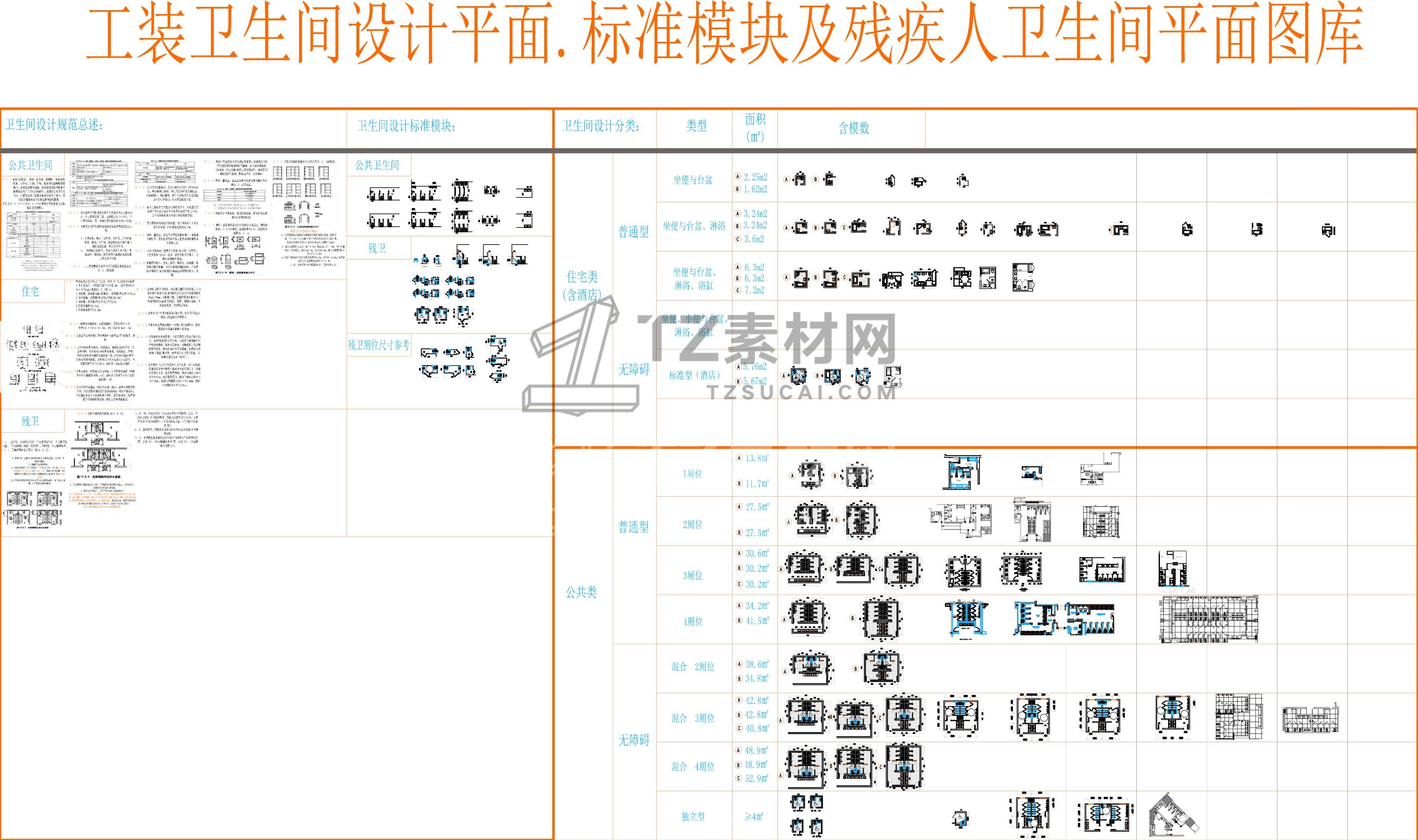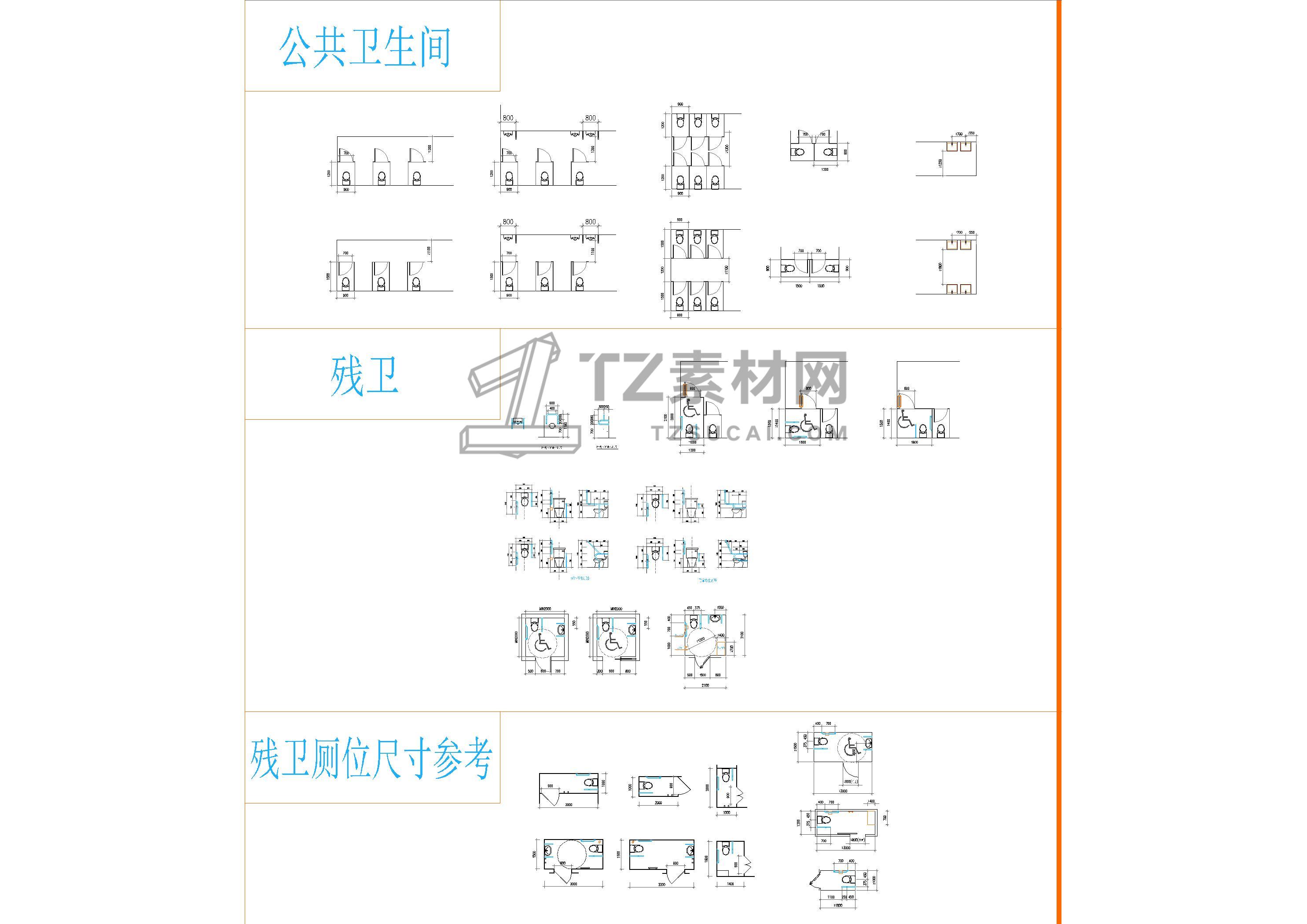 家居工装卫生间设计平面标准模块及残疾人卫生间平面图库