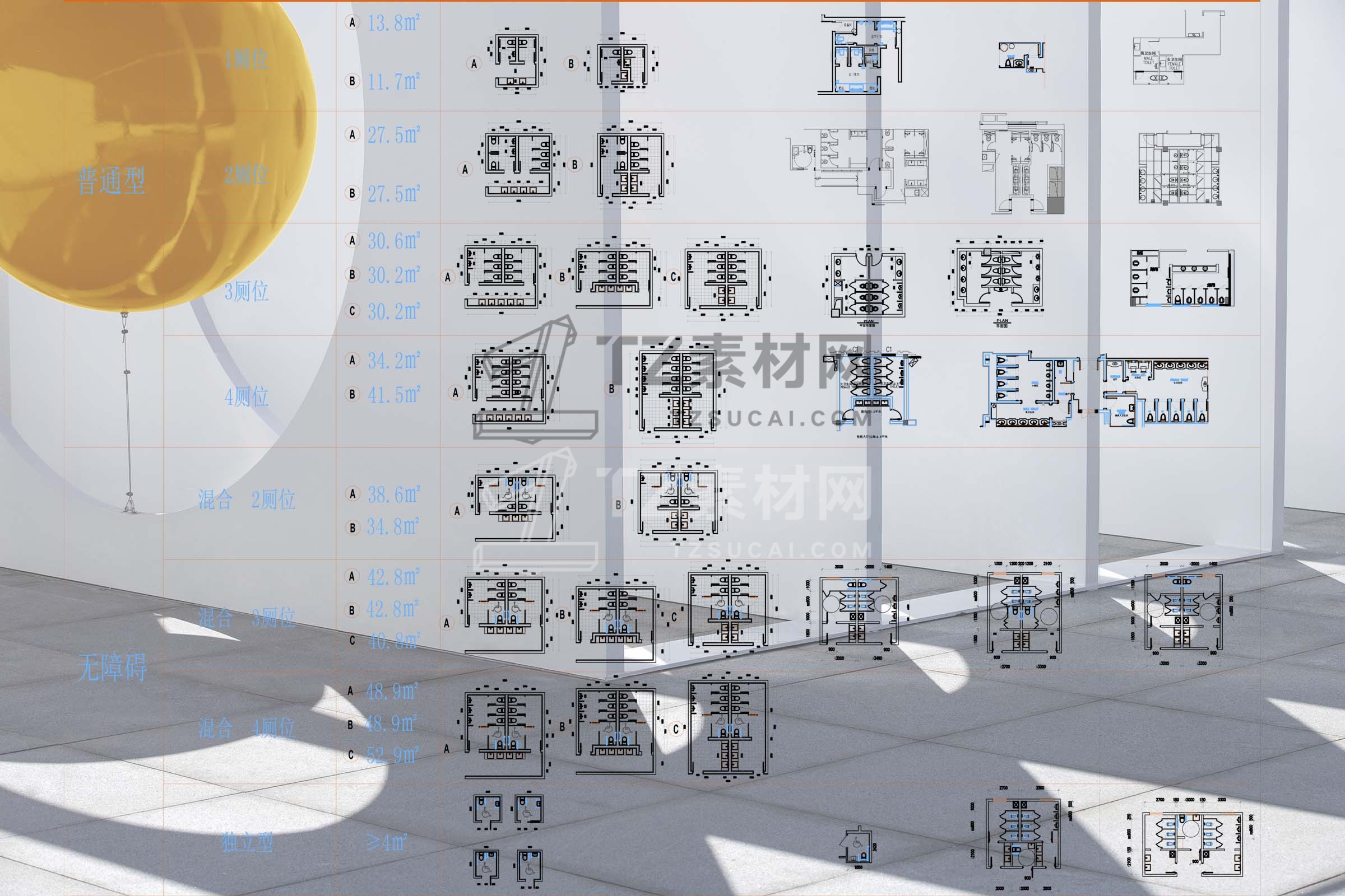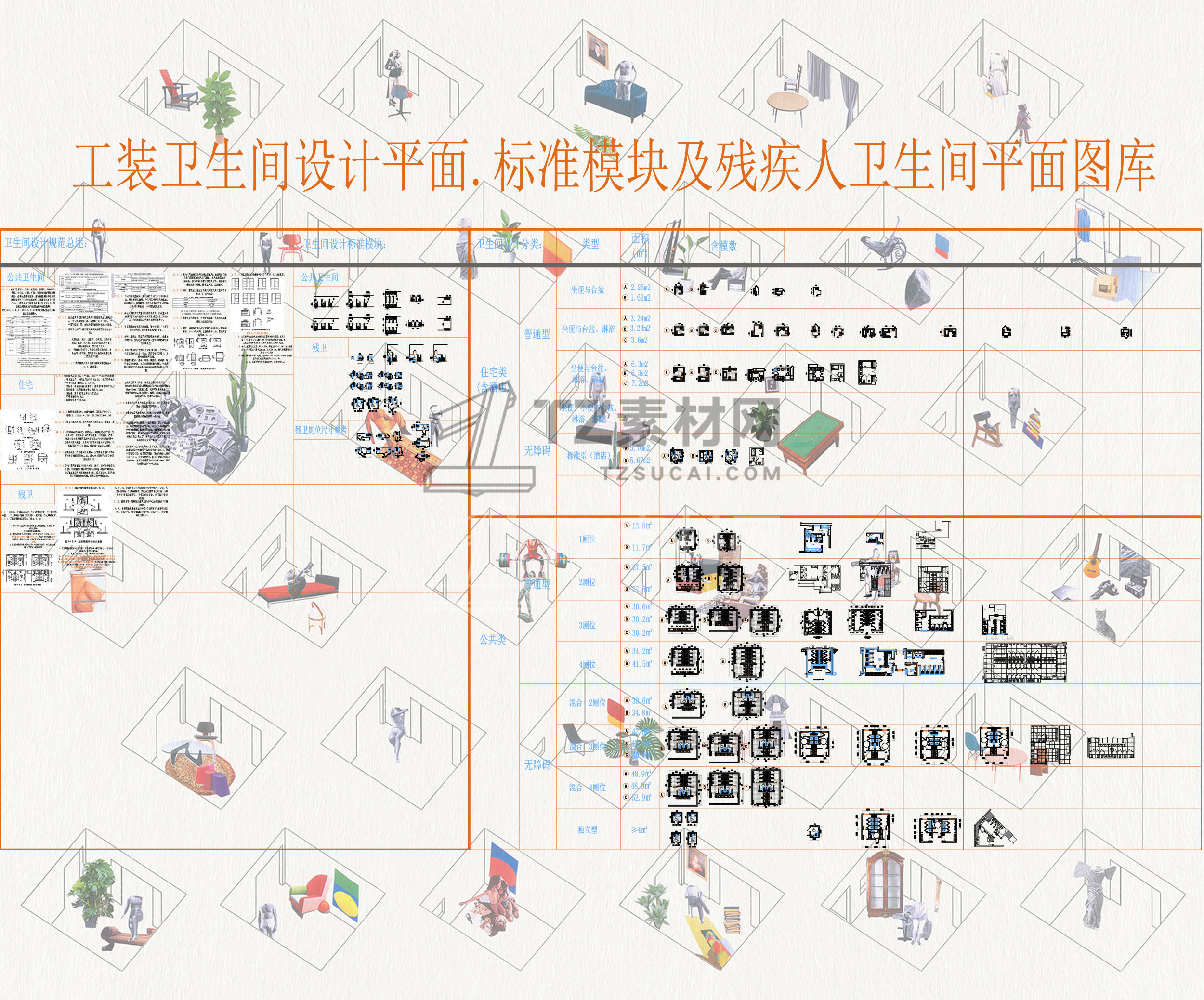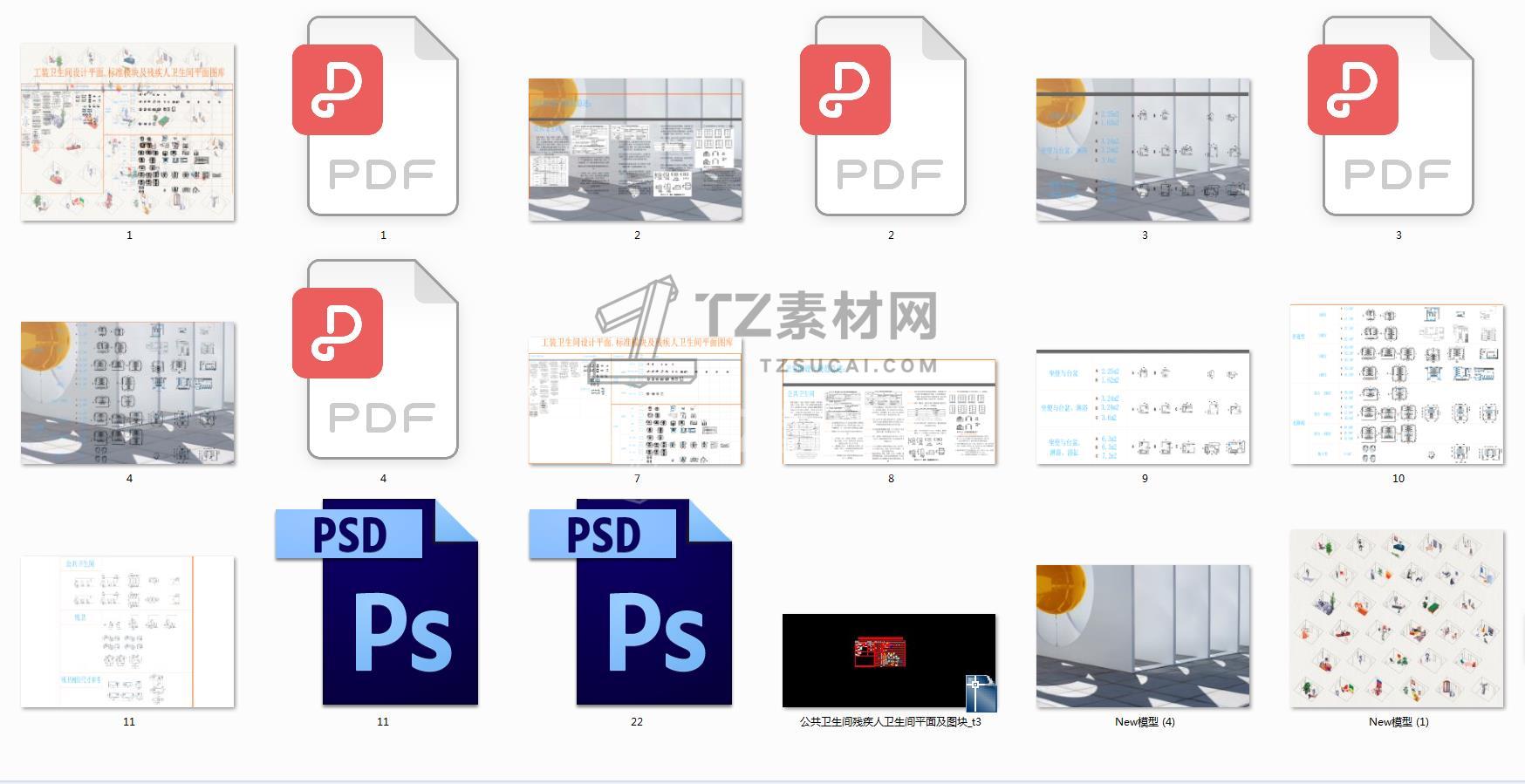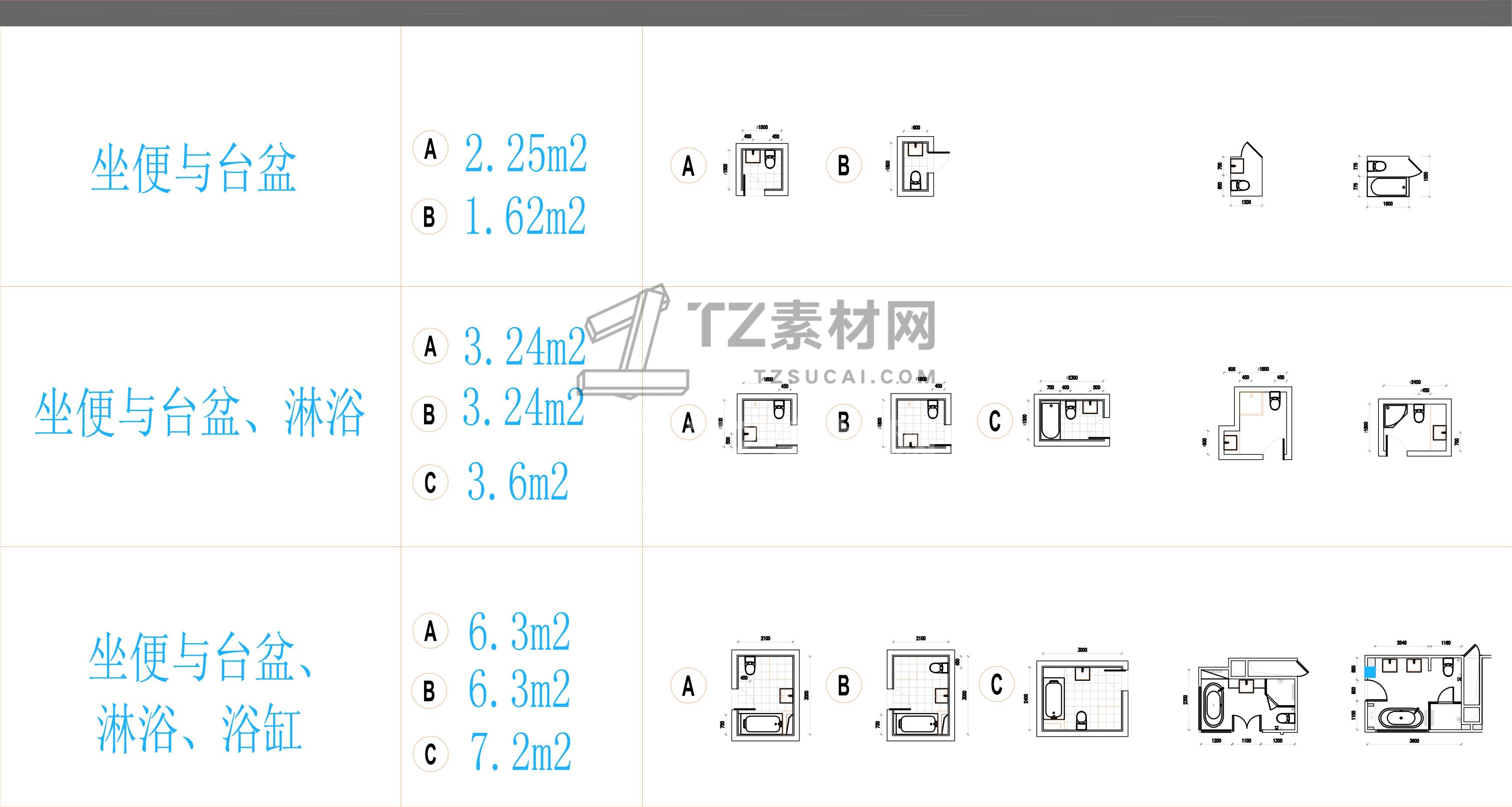 家居工装卫生间设计平面标准模块及残疾人卫生间平面图库