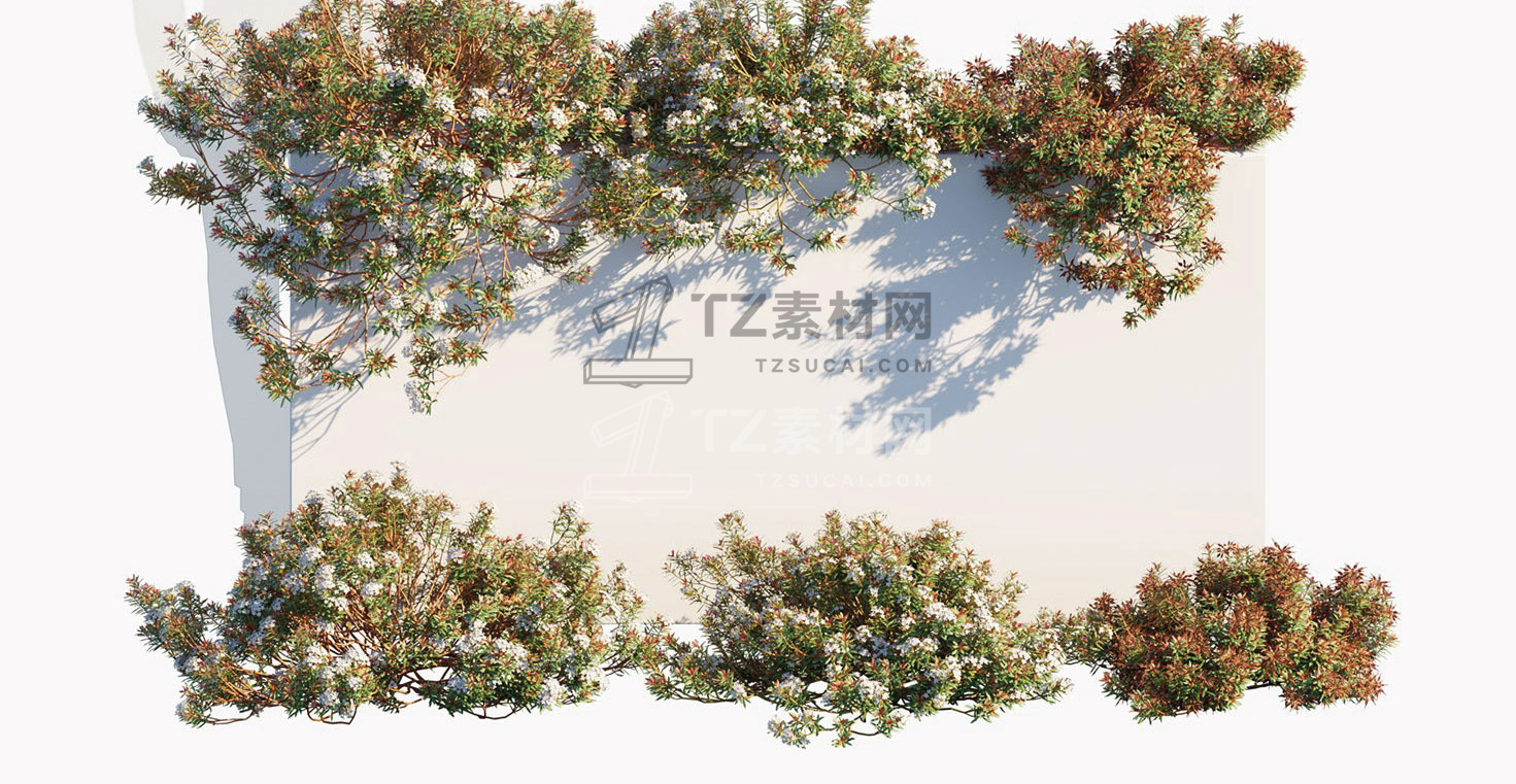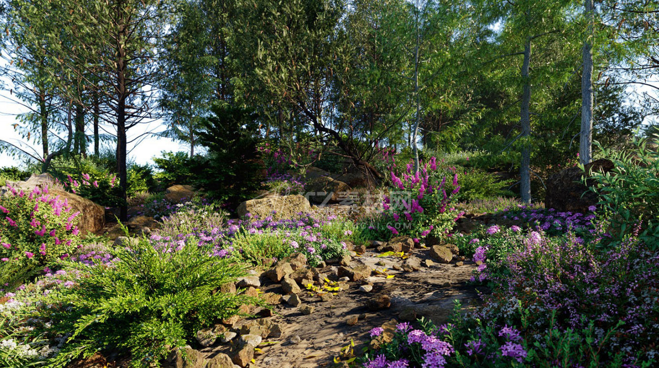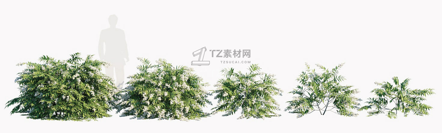 包含15种户外树木、灌木、花朵植物3D模型,3DS MAX格式,包含贴图材质
