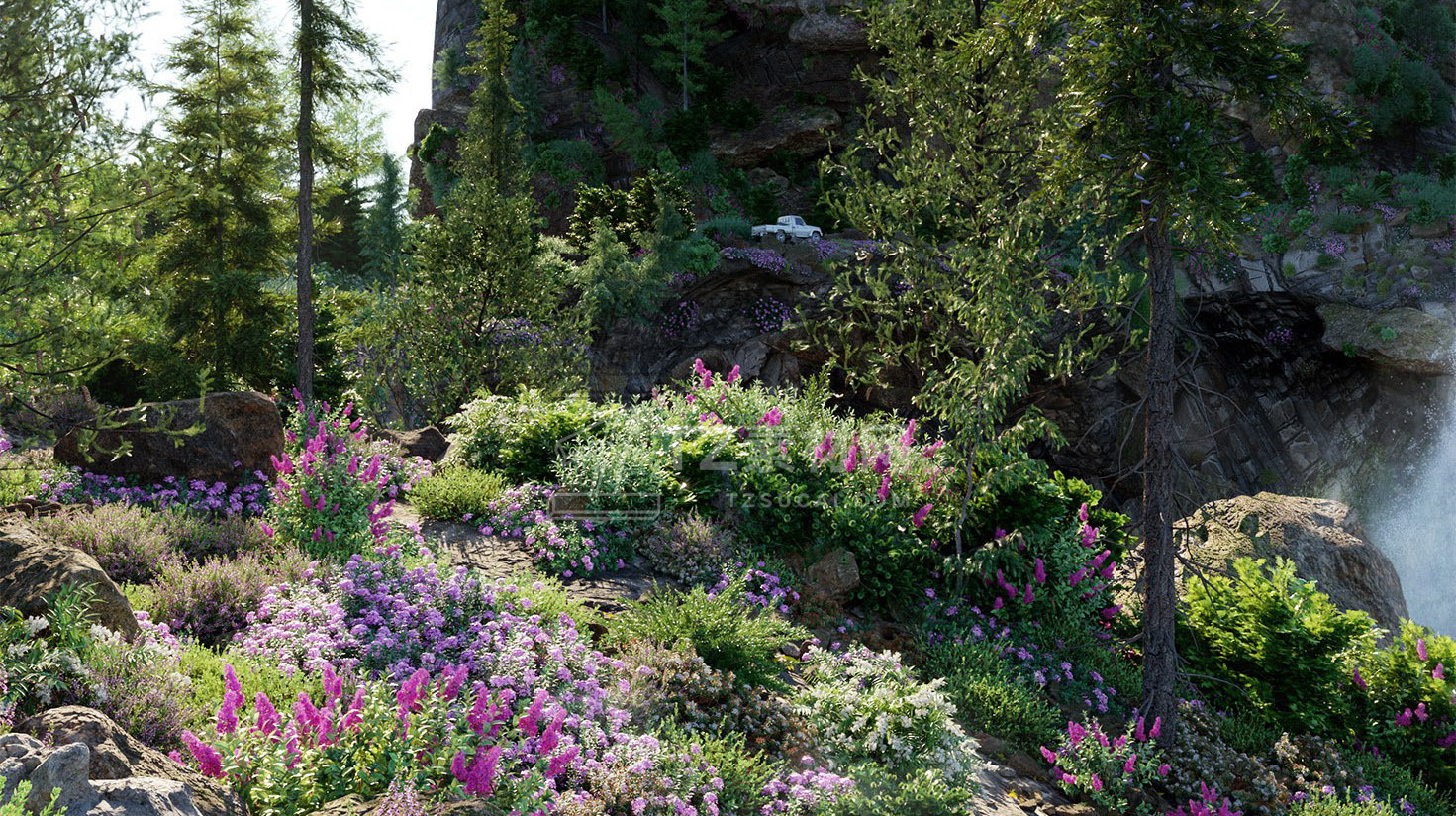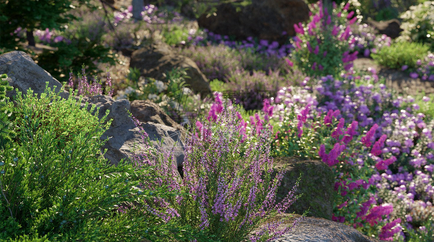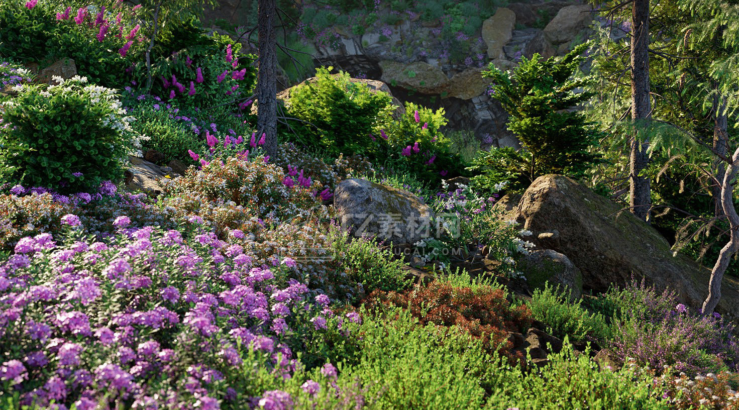 包含15种户外树木、灌木、花朵植物3D模型,3DS MAX格式,包含贴图材质