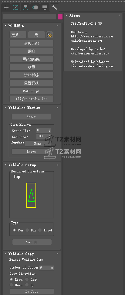 CityTraffic是一个3ds Max插件,有助于创建的道路和越野道路上的汽车流。道路专用编辑器和自动汽车设置显着加快交通运动的模拟。每种车的配置种类繁多,无论是悬挂支架或驾驶风格的调整,能够创建逼真的模拟。动力学计算使得运动更加逼真,人工智能系统帮助汽车独立运作。