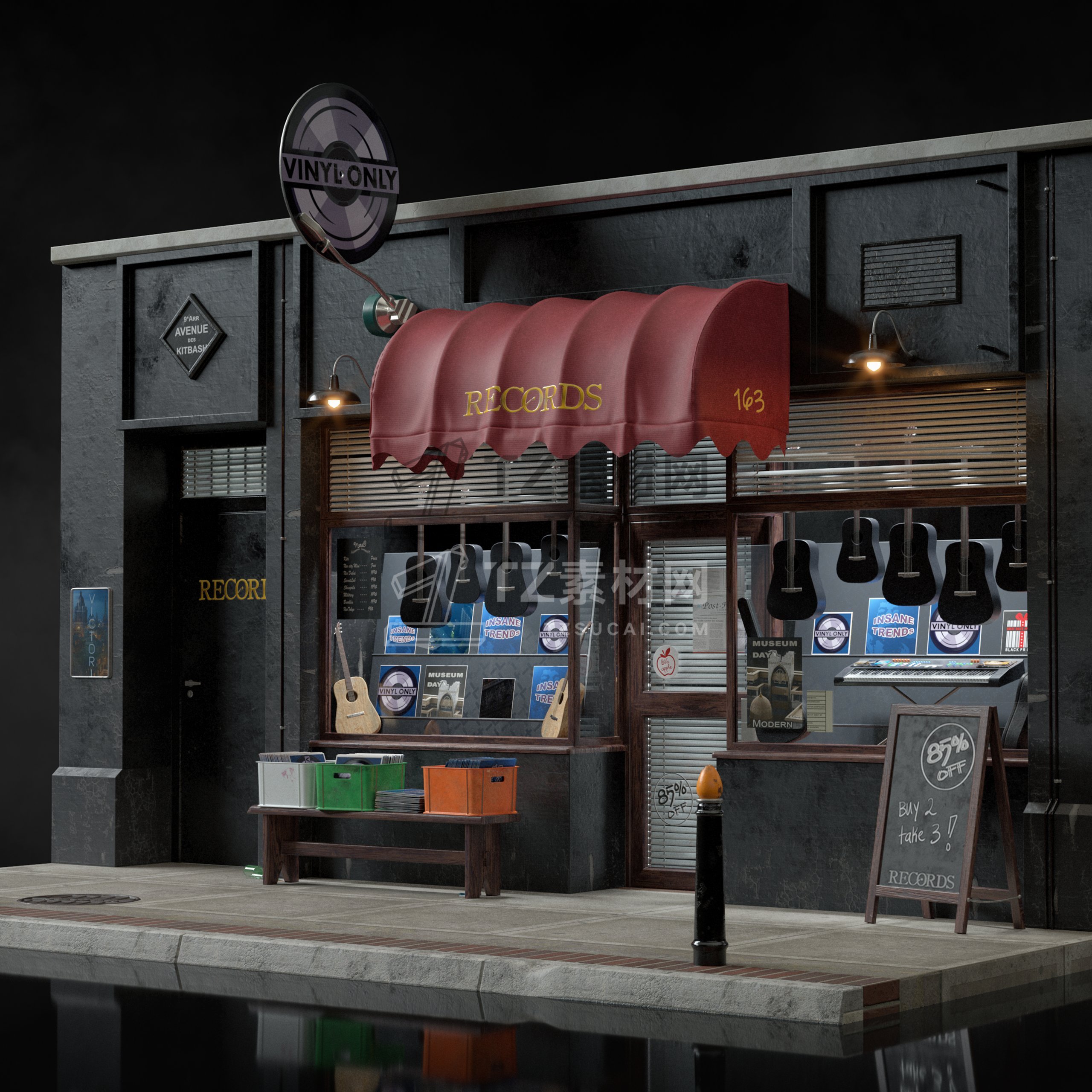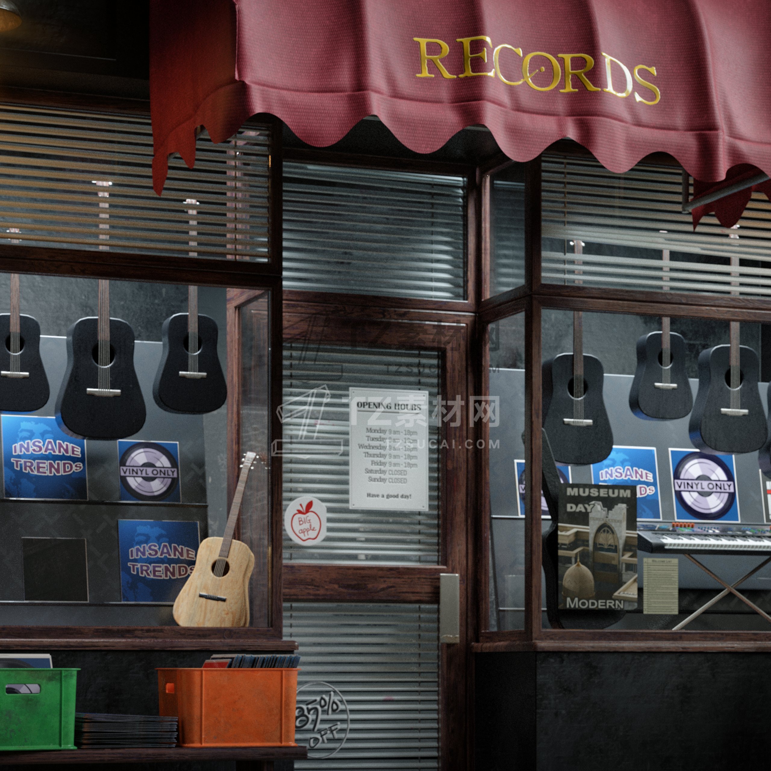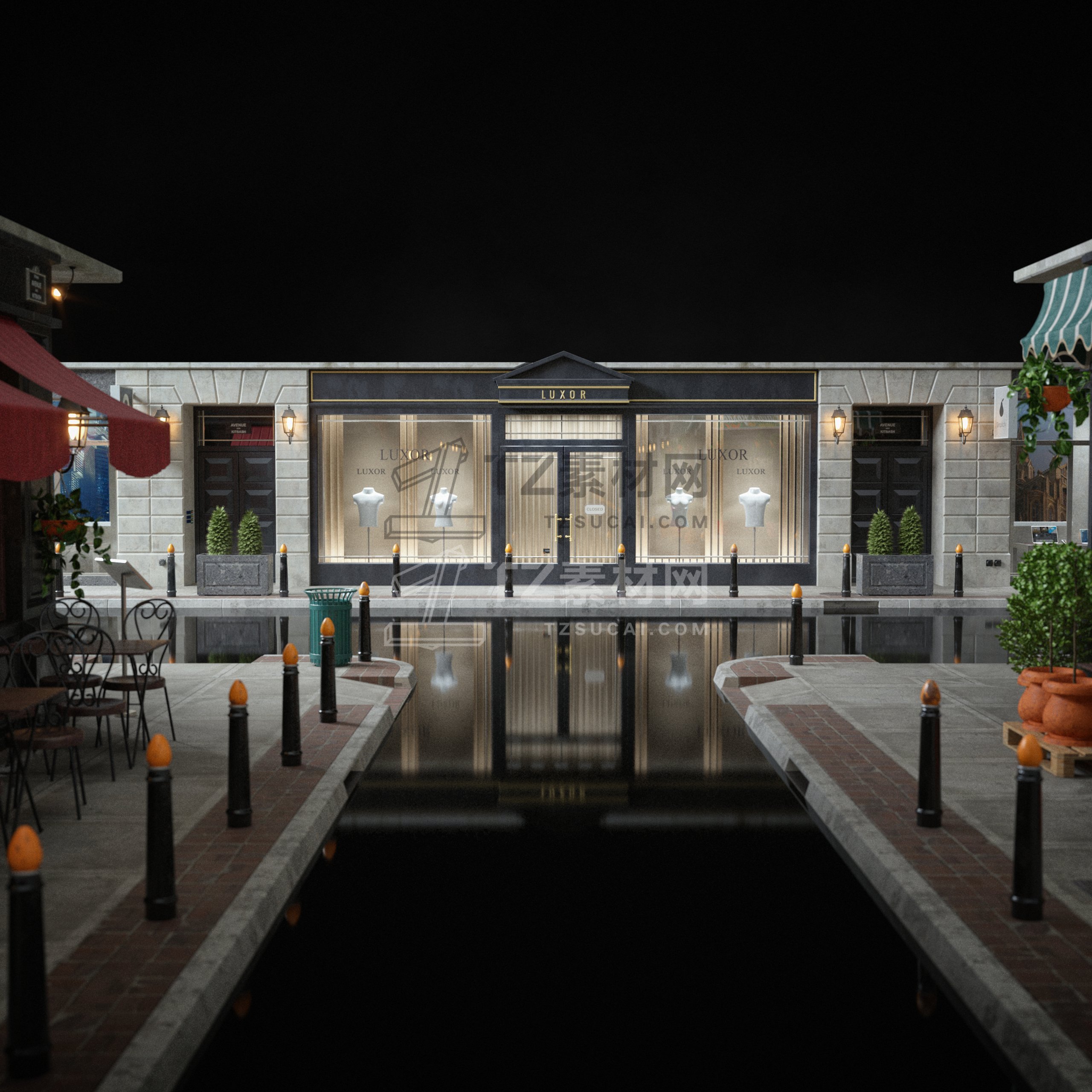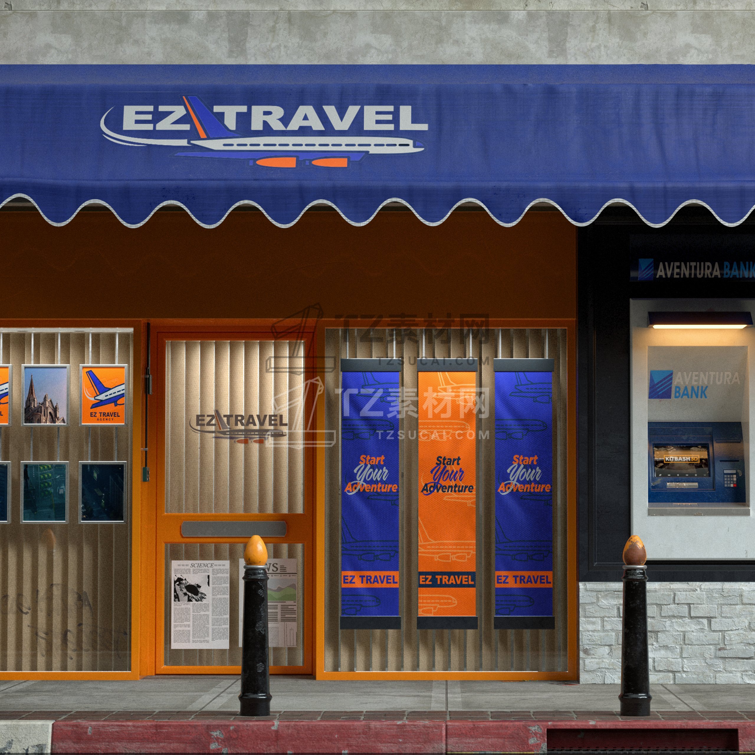 大量的餐厅、陈列室、银行、杂货店、精品店、剧院、博物馆等,为您的 3D 城市和城镇增添一些个性。这些街道立面的范围可以从高端大理石入口到带有涂鸦的木板窗户,它们都可以根据您的喜好使用不同的遮阳篷、标牌、装饰植物和其他常见的店面道具进行定制。