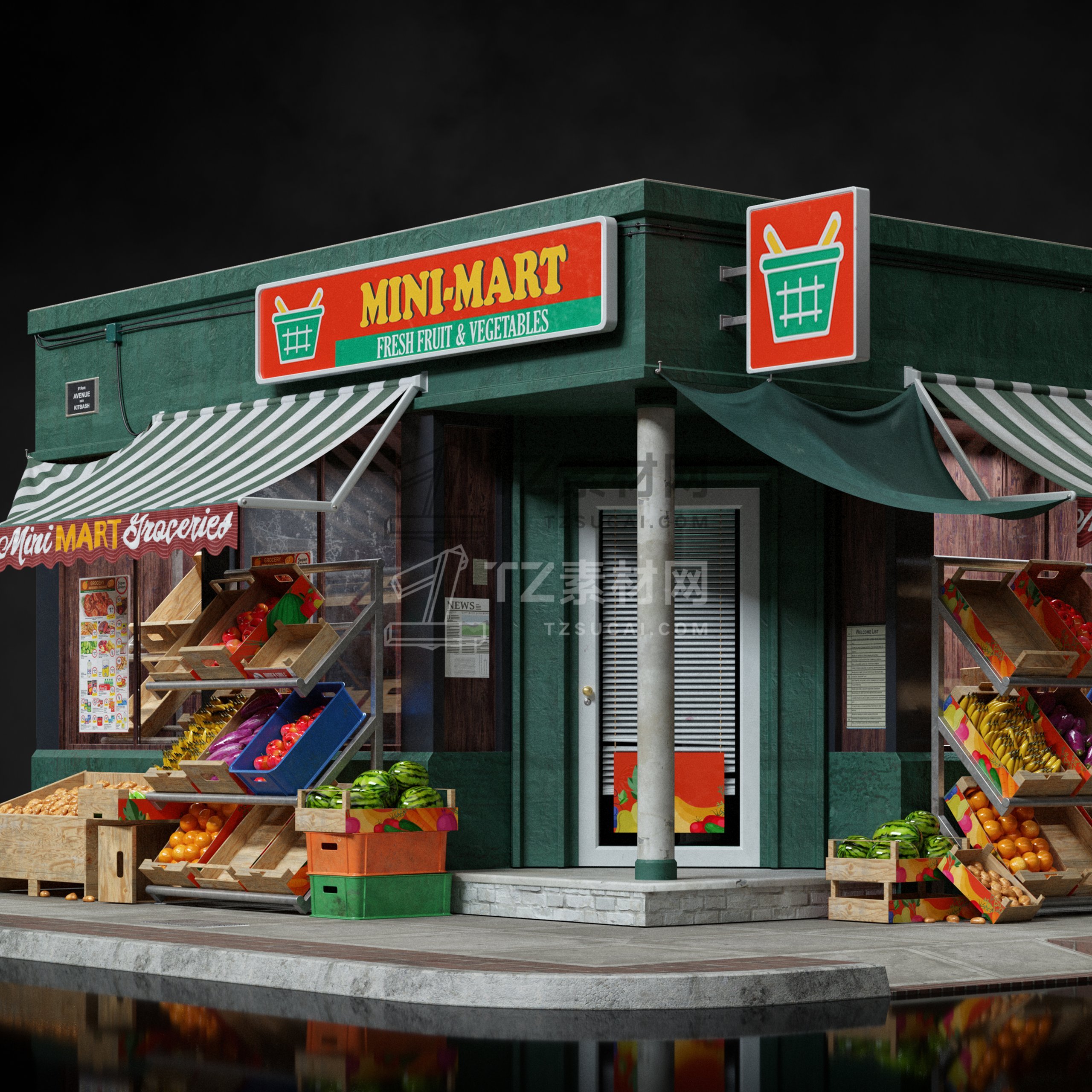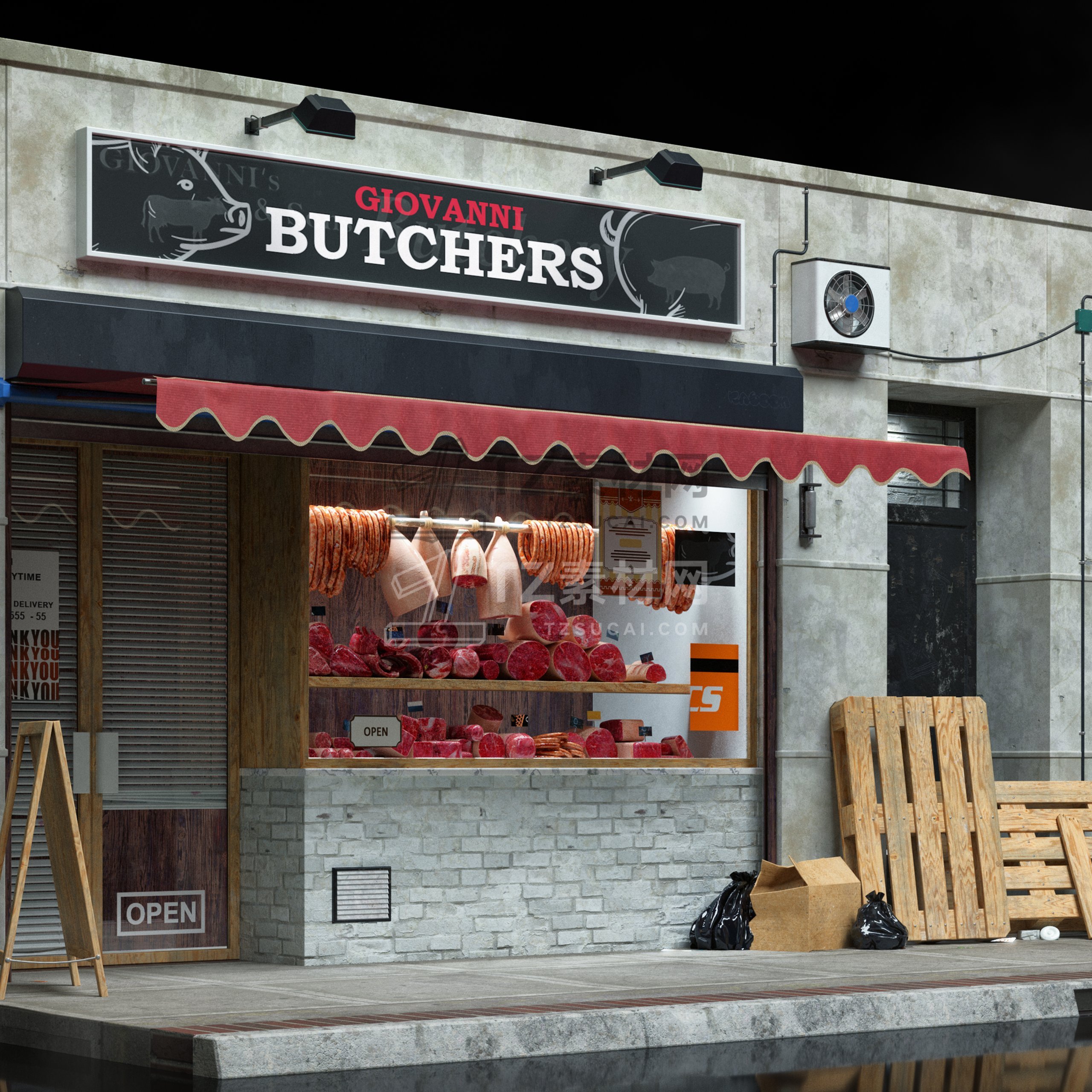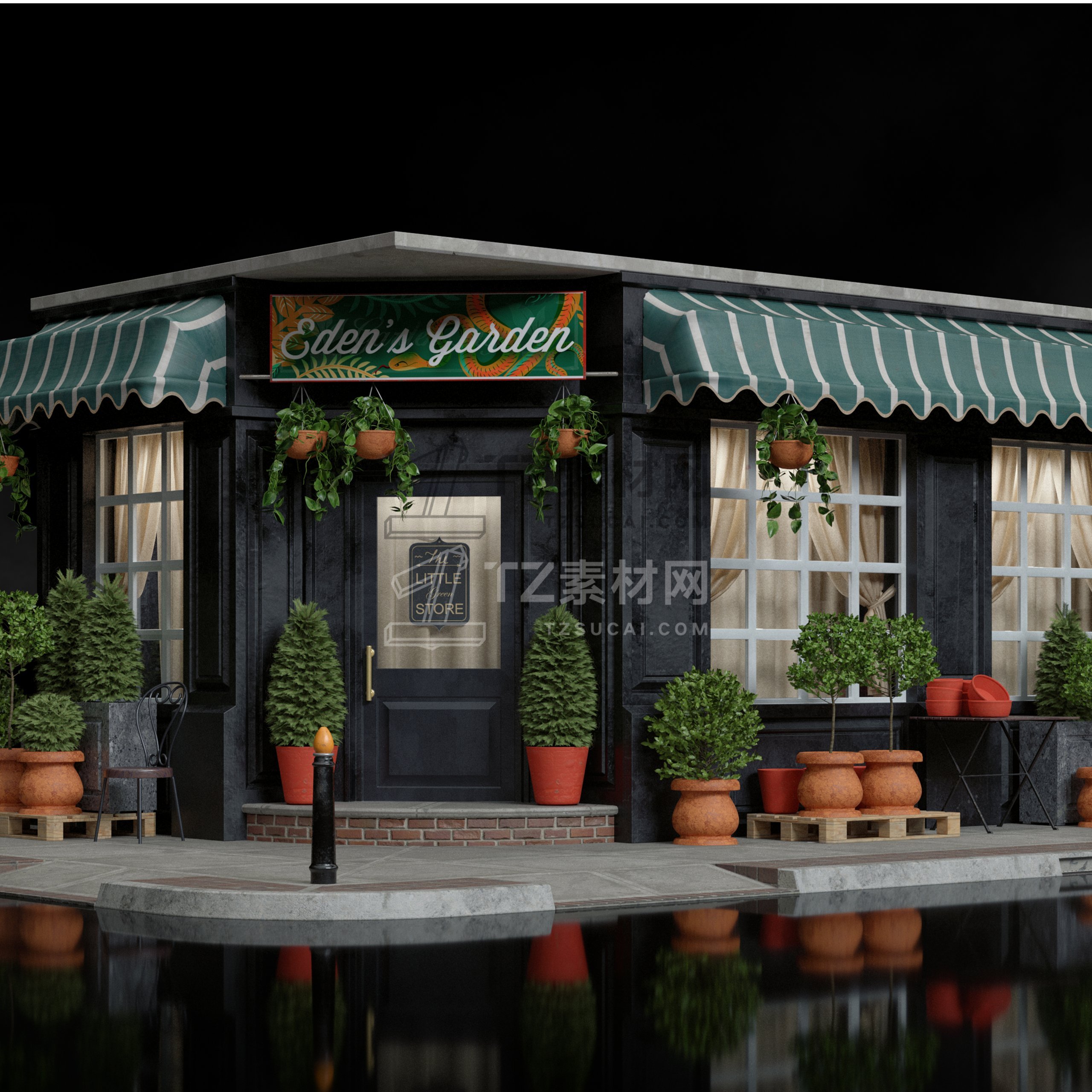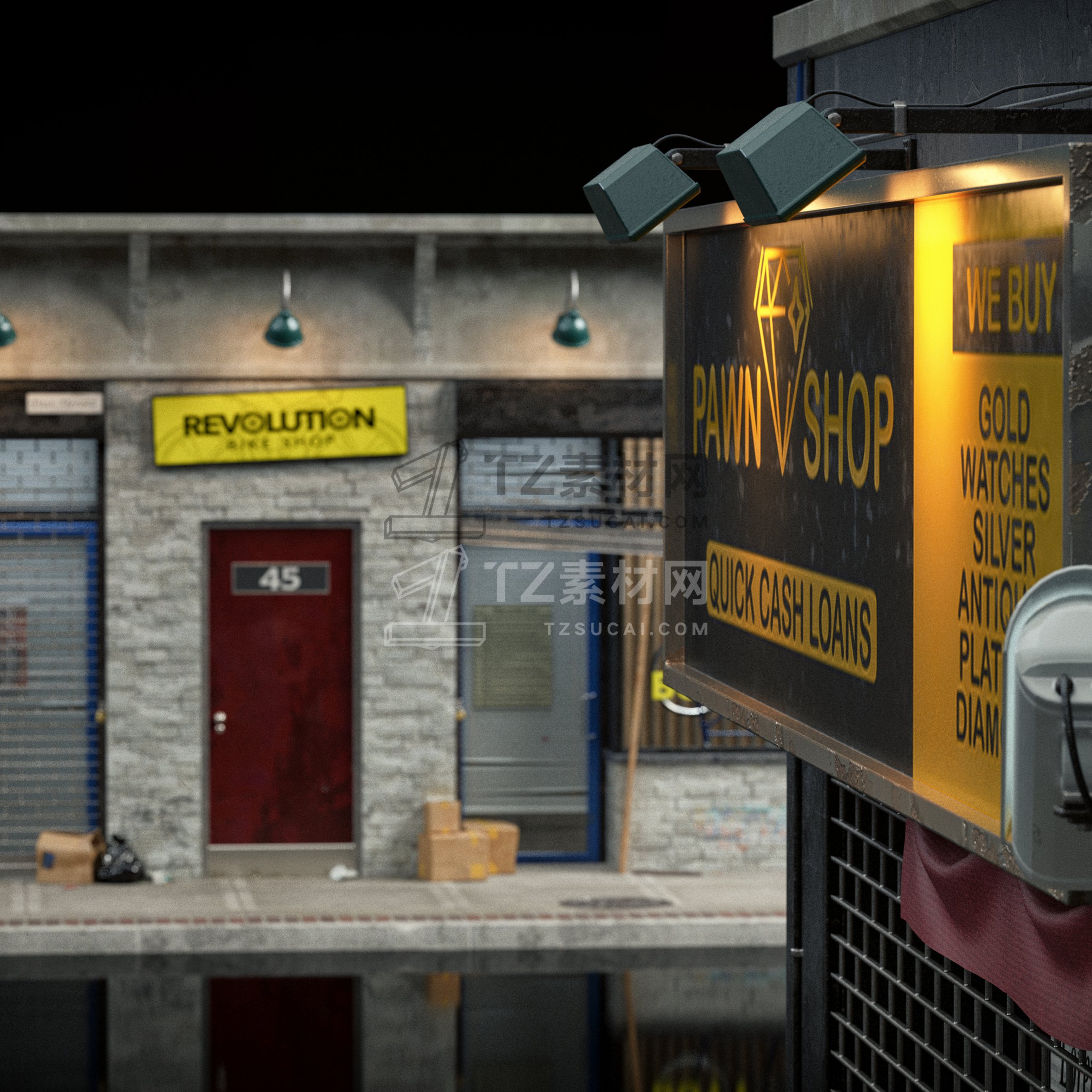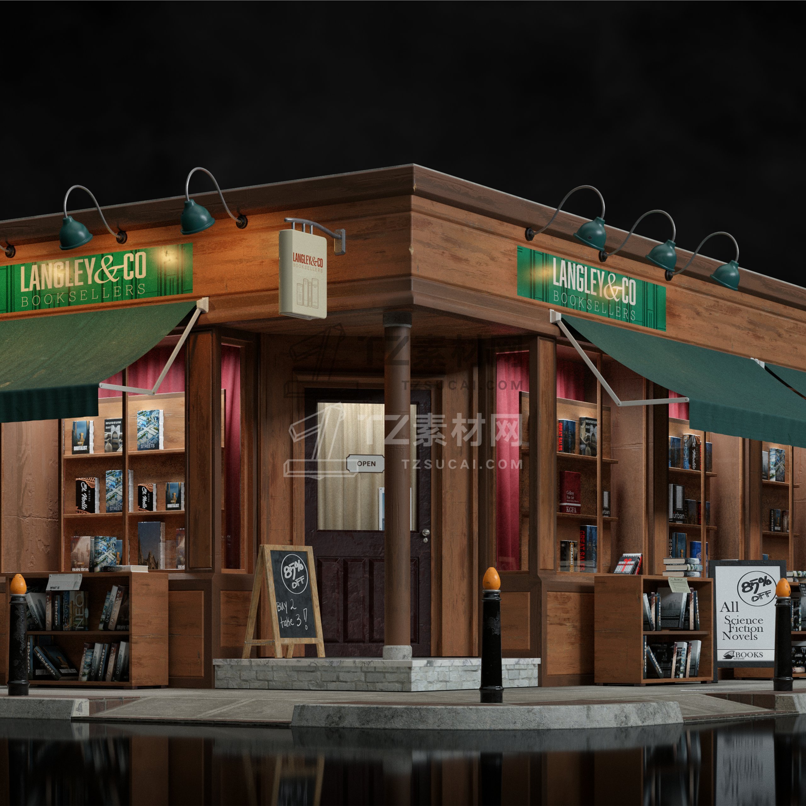 大量的餐厅、陈列室、银行、杂货店、精品店、剧院、博物馆等,为您的 3D 城市和城镇增添一些个性。这些街道立面的范围可以从高端大理石入口到带有涂鸦的木板窗户,它们都可以根据您的喜好使用不同的遮阳篷、标牌、装饰植物和其他常见的店面道具进行定制。