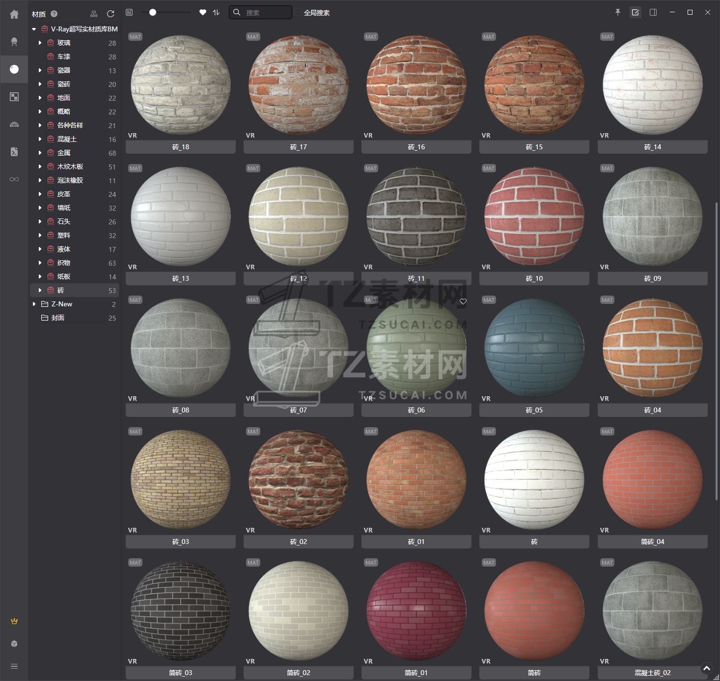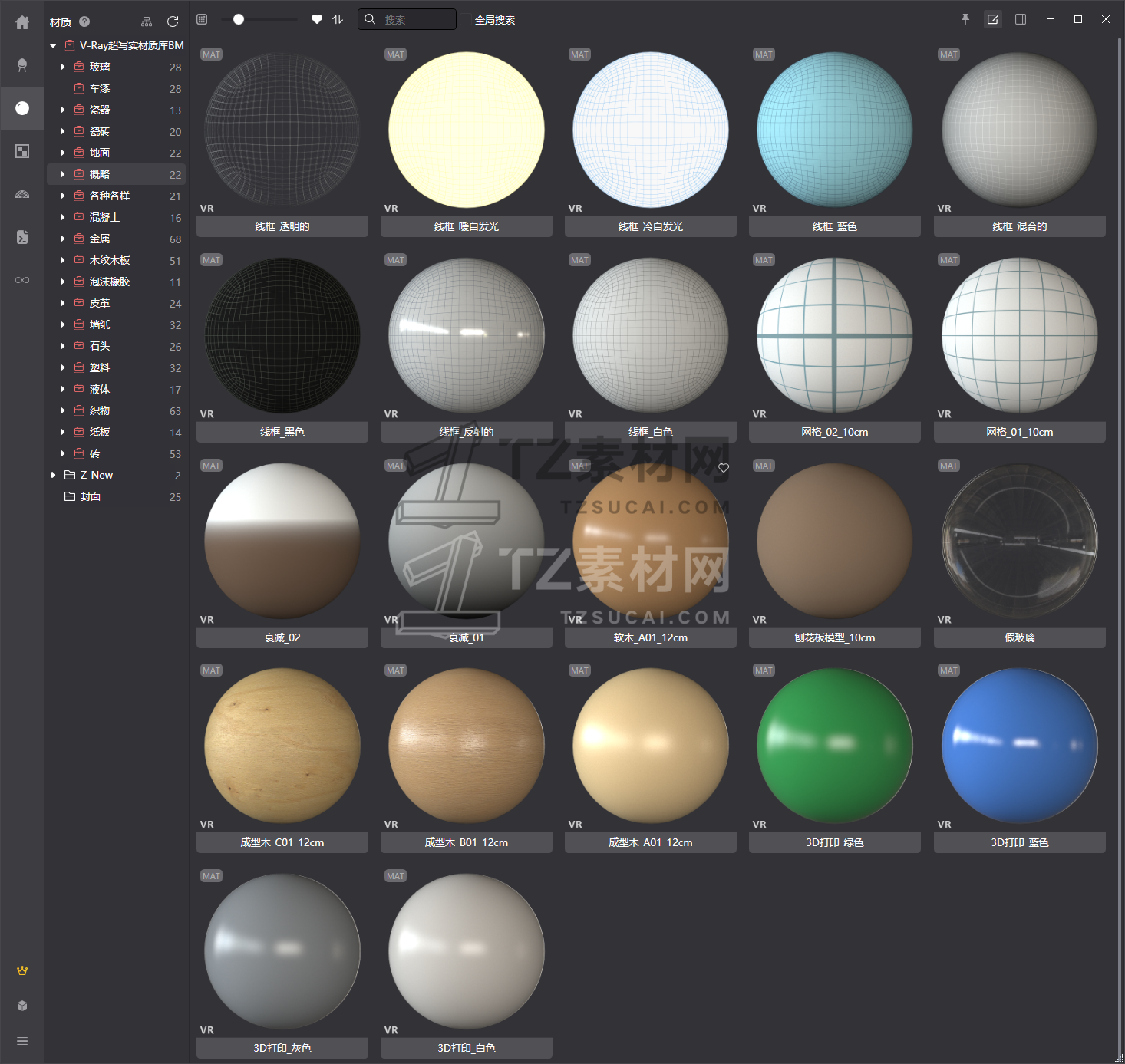 VR官方材质库整理版本为max2022以上,vray6以上,预览图均为1024*1024以上的高清图片,导入BM和PM 或渲染梦工厂本地素材管理器后,拖拽进max即可使用