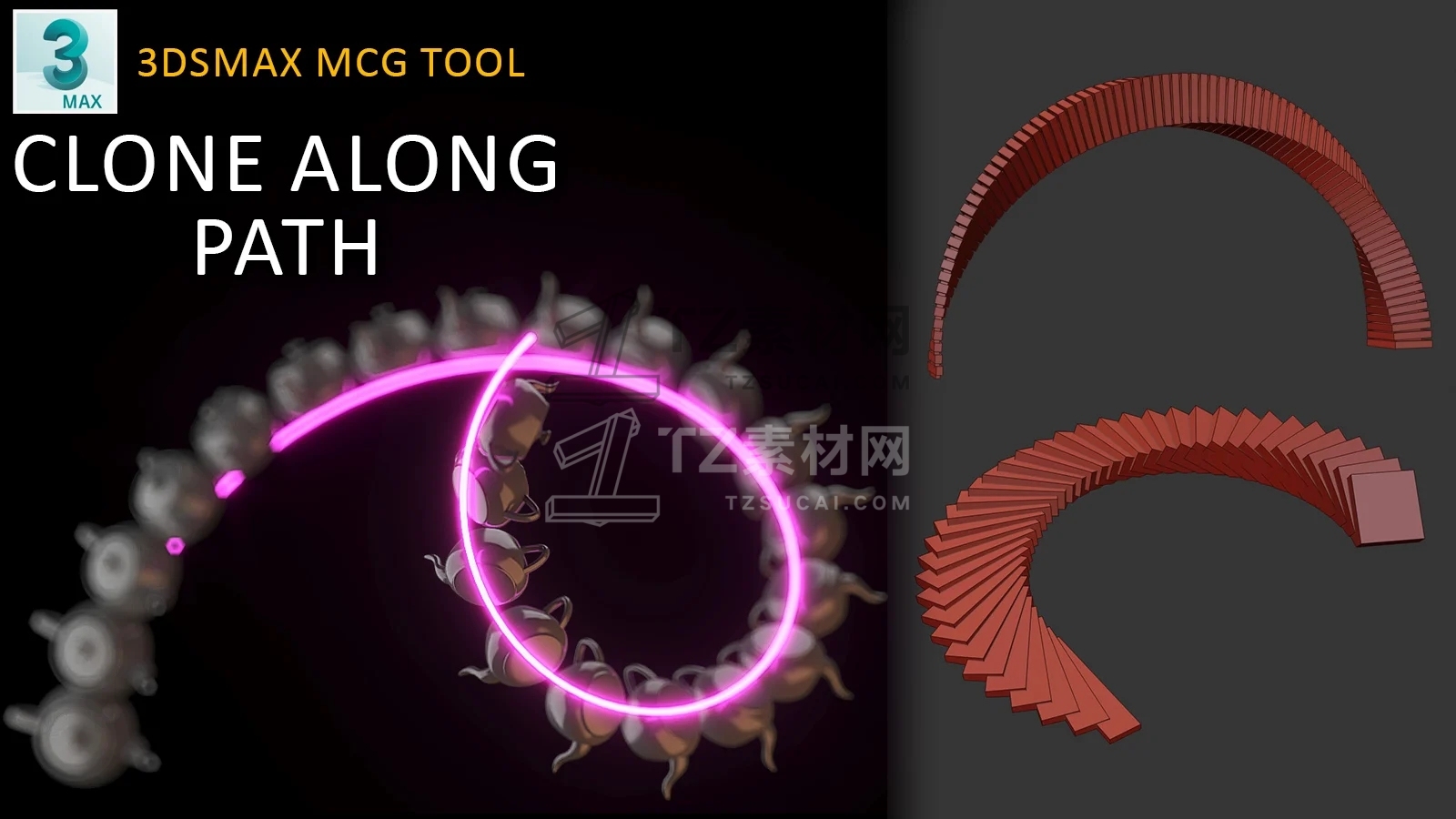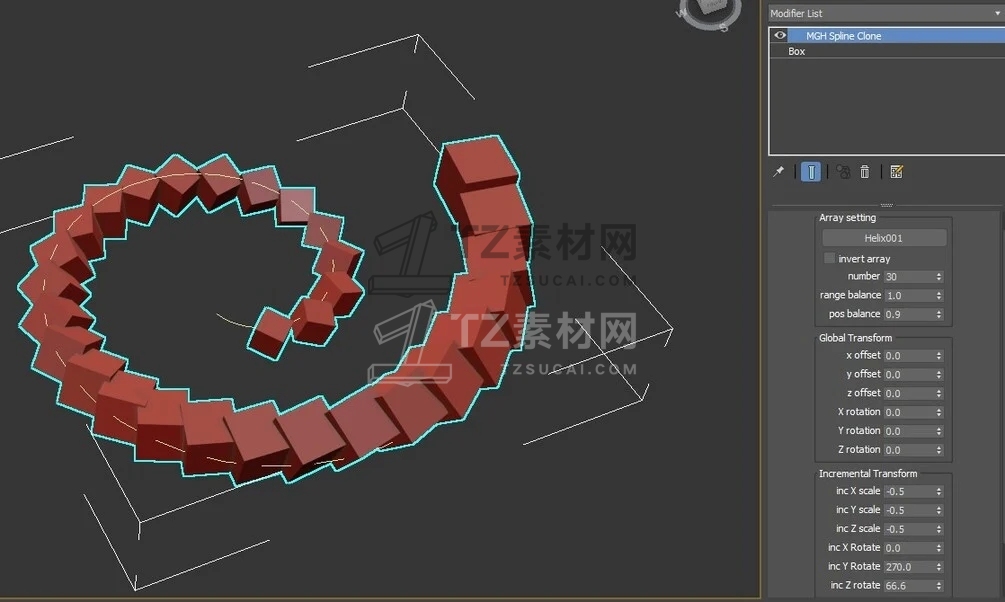 样条克隆是一个免费工具,可以沿着拾取的样条克隆修改器堆栈顶部的几何体