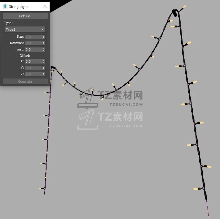 5. 偏移配置:通过轻松调整 x、y 和 z 轴上线条的偏移来定制灯串的位置,使您能够在场景中实现完美的放置。