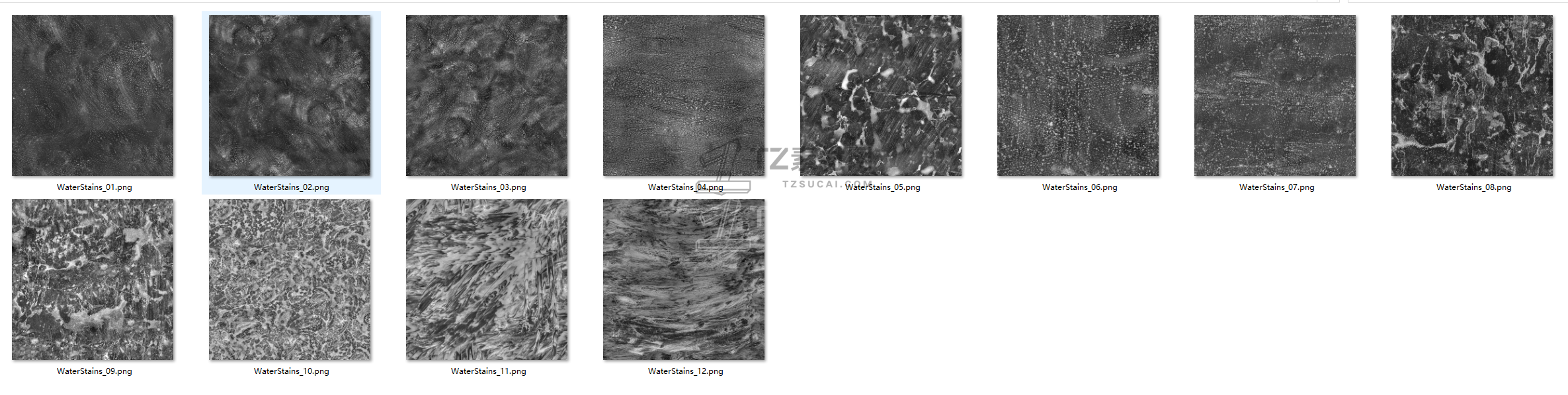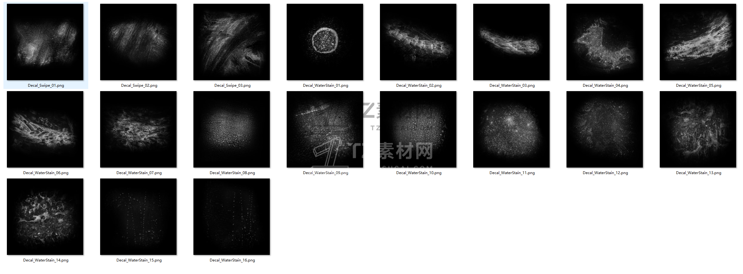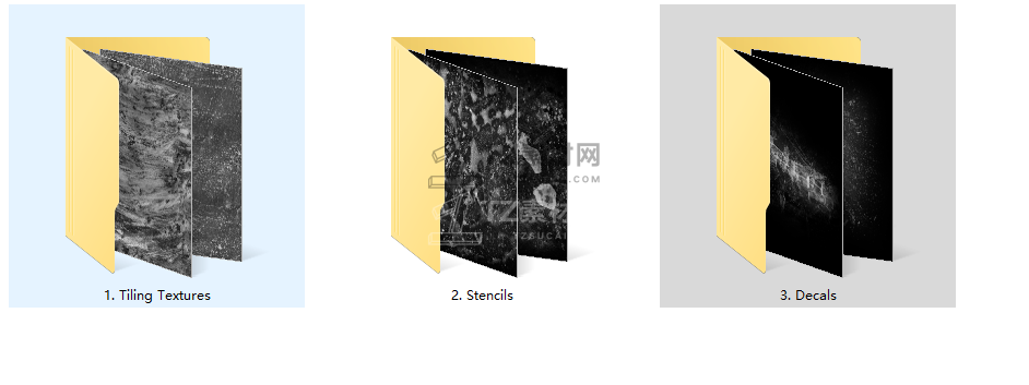 包含55组污迹水渍效果图片素材,4K和2K分辨率,任何三维软件均可