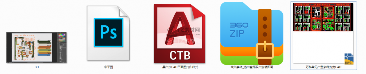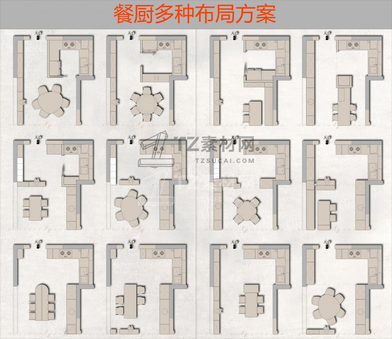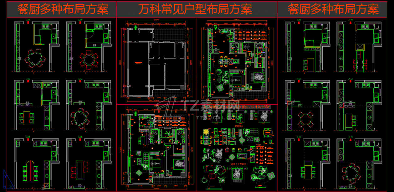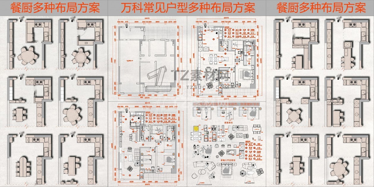 本套资料为万科中间常见户型,其中方案做了两版,餐厨方案布局12种,