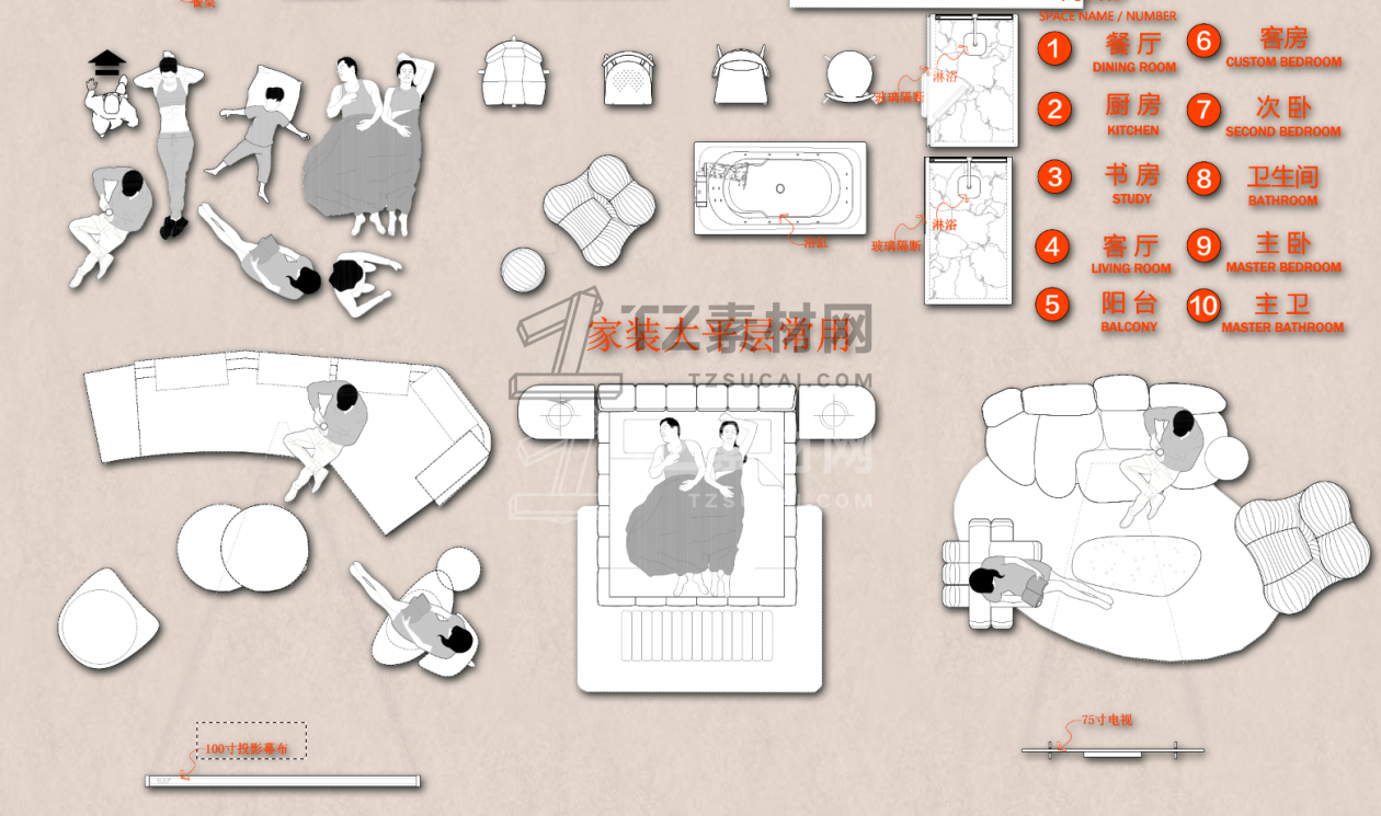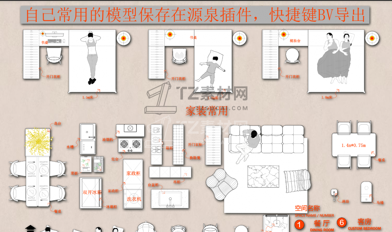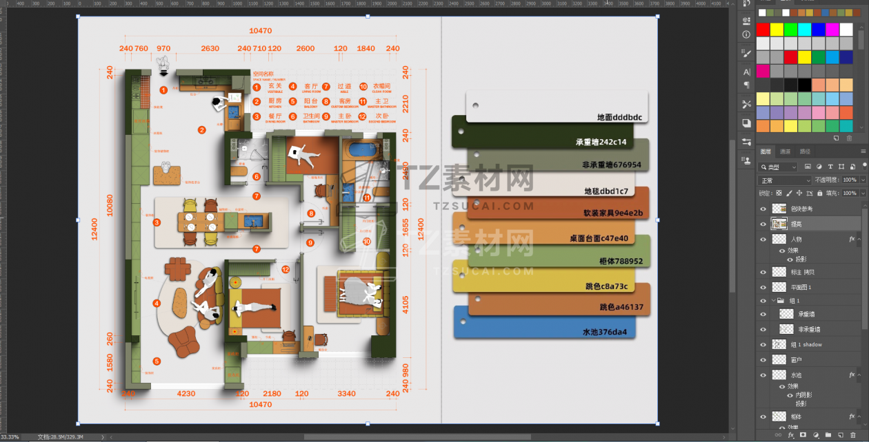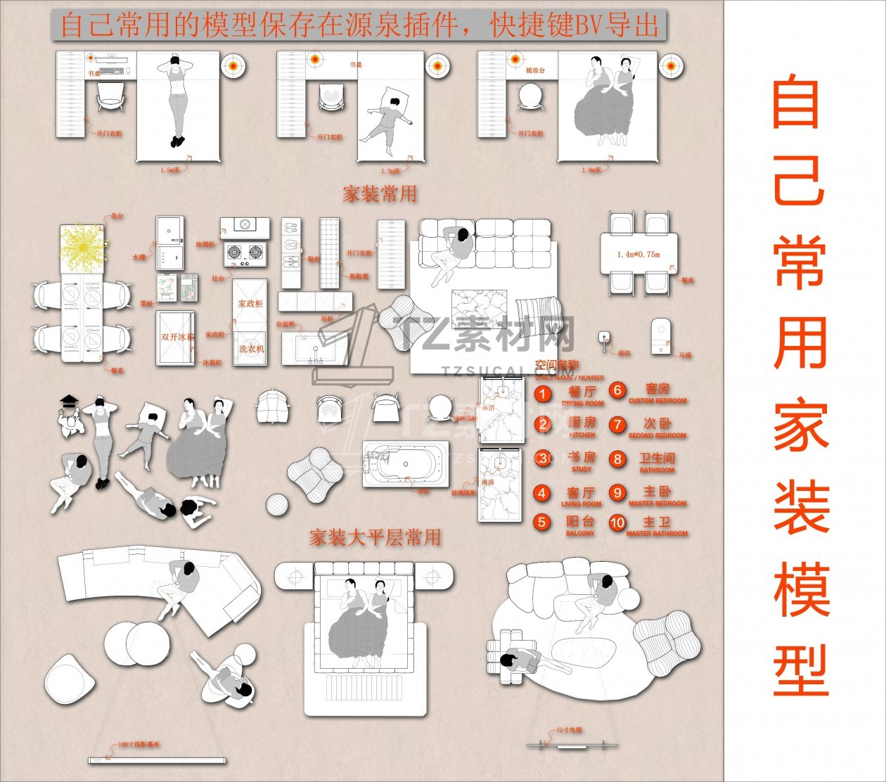 整理了一套自己家装常用的模型,一套PS彩平图含源文件。