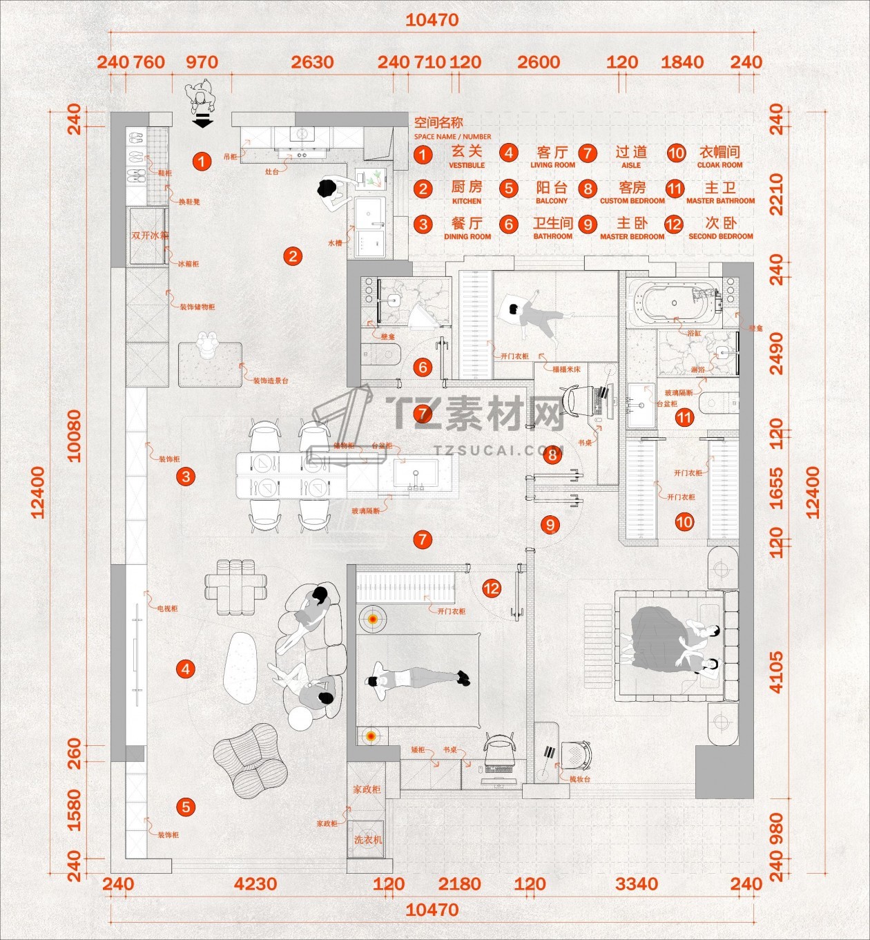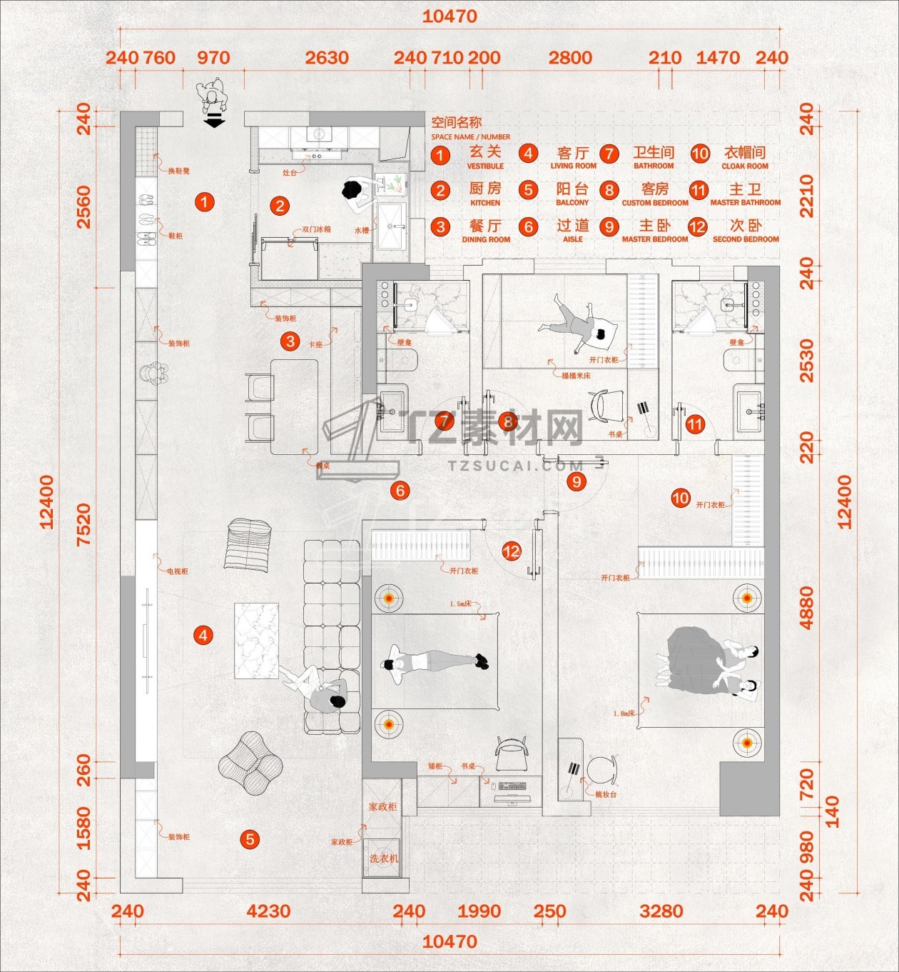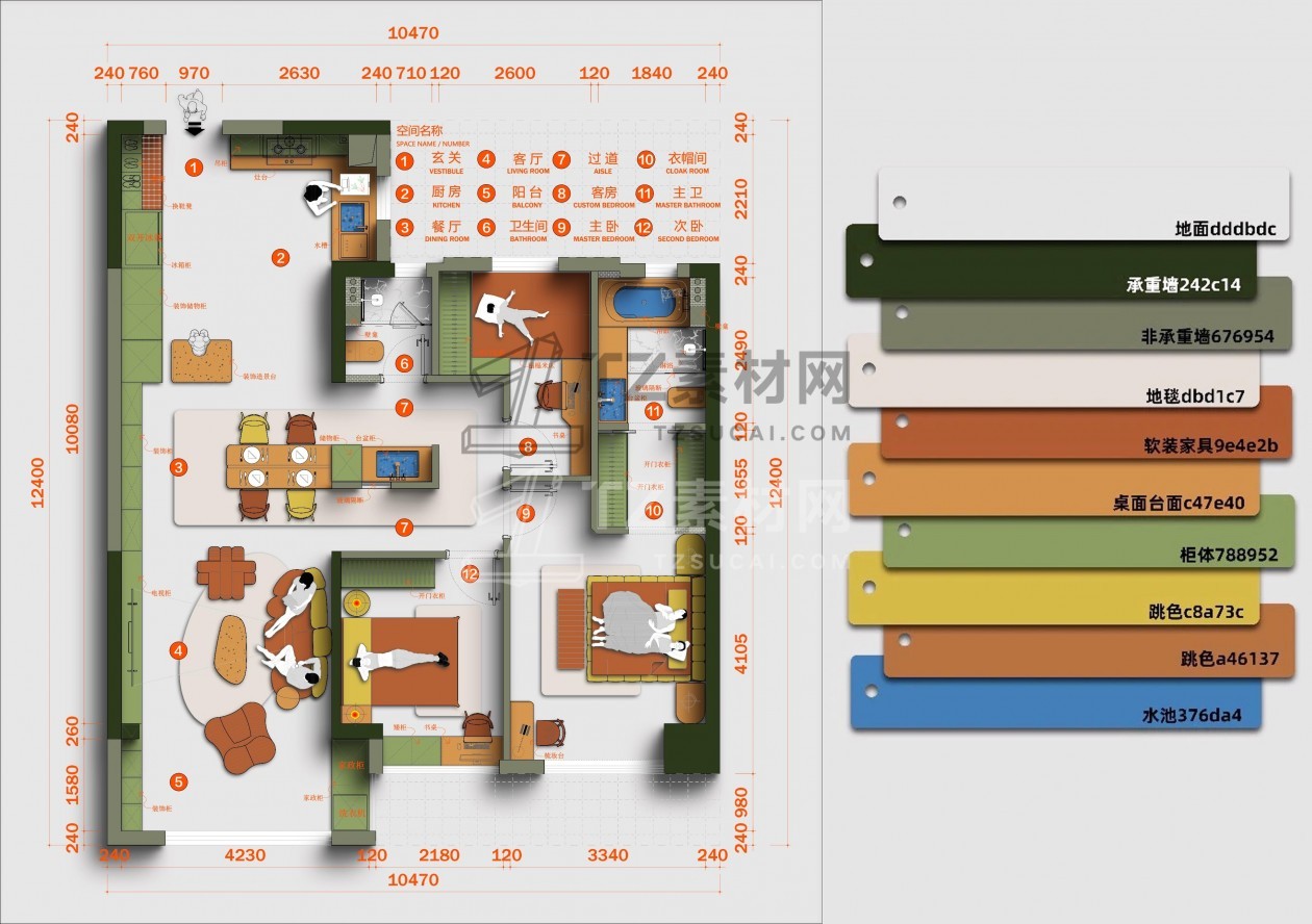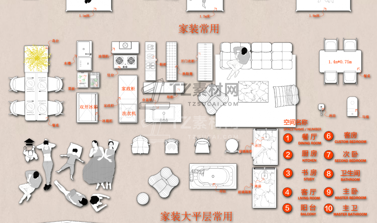整理了一套自己家装常用的模型,一套PS彩平图含源文件。