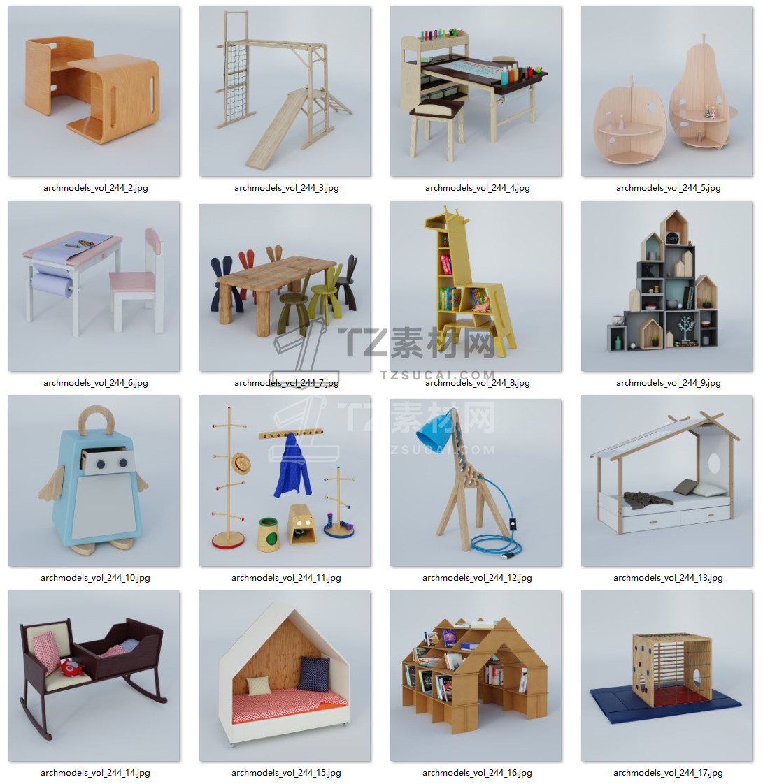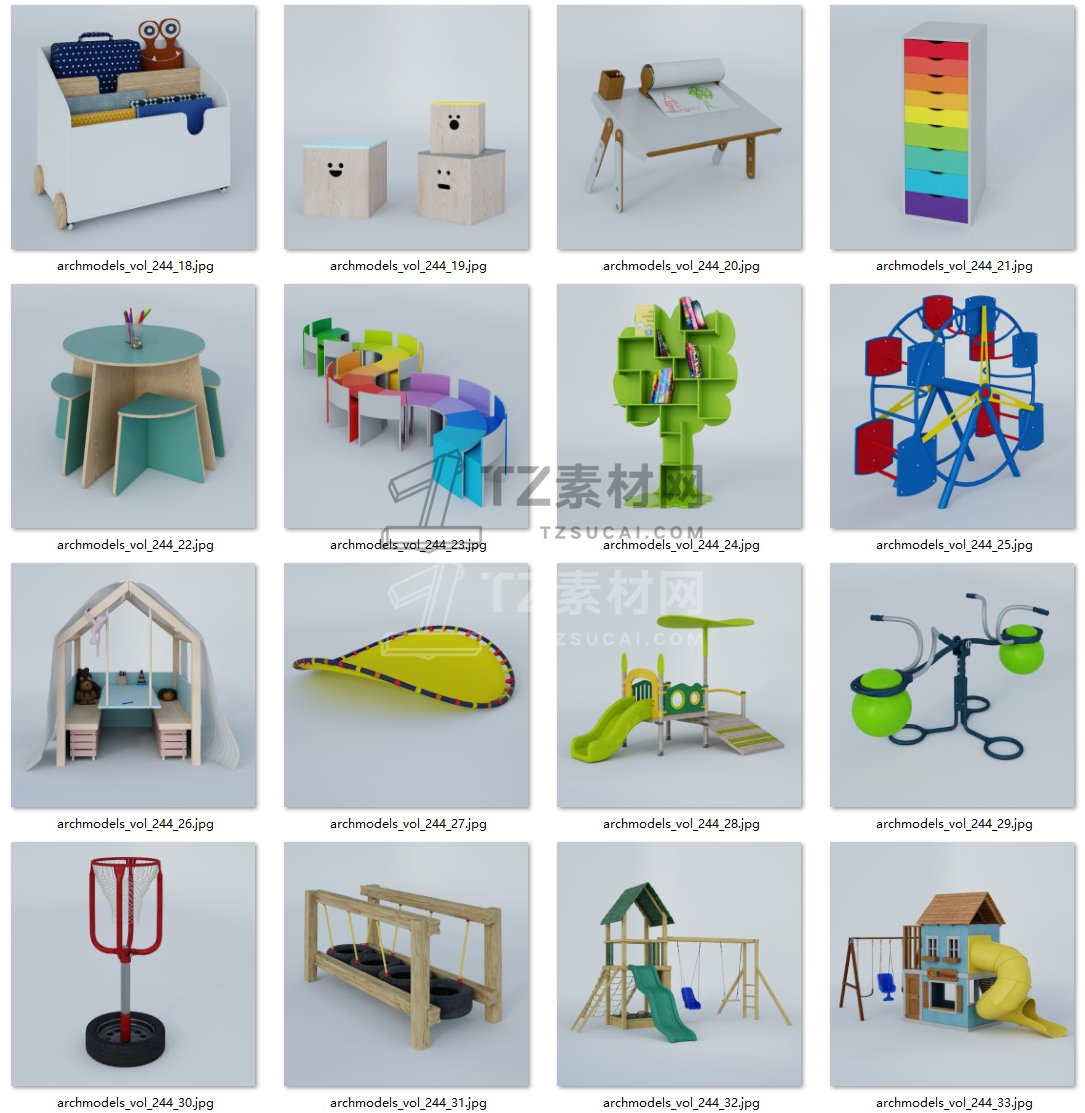 格式:max Textures included Archmodels vol . 244包含44个专业的高质量3d建筑可视化模型。该系列配有详细的儿童房和游乐场设备——桌子、玩具、书架、床和外部游乐场元素。所有对象都可以在可视化中使用。