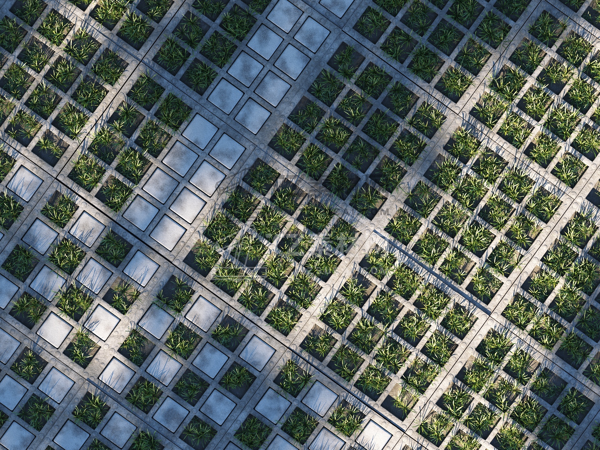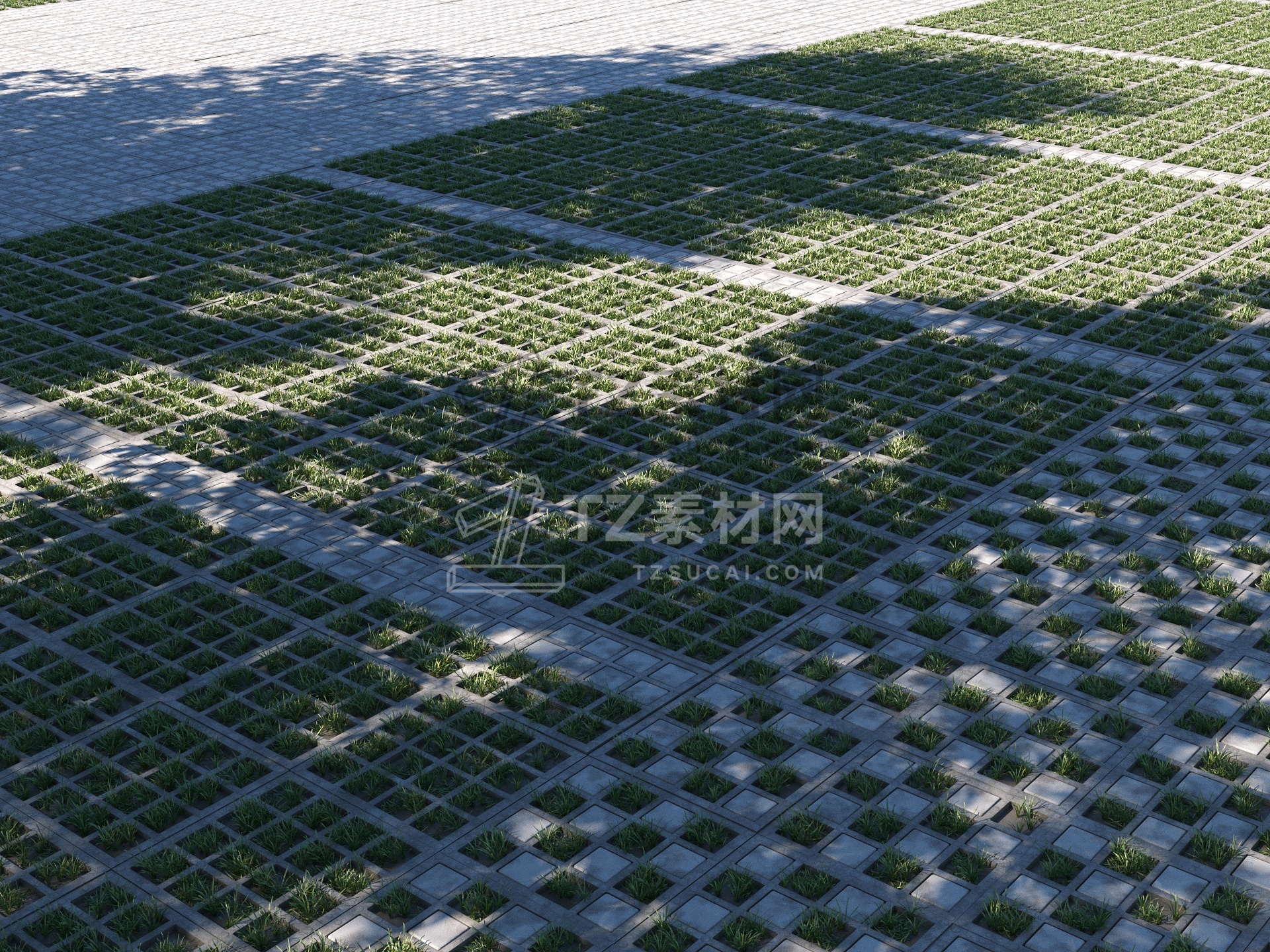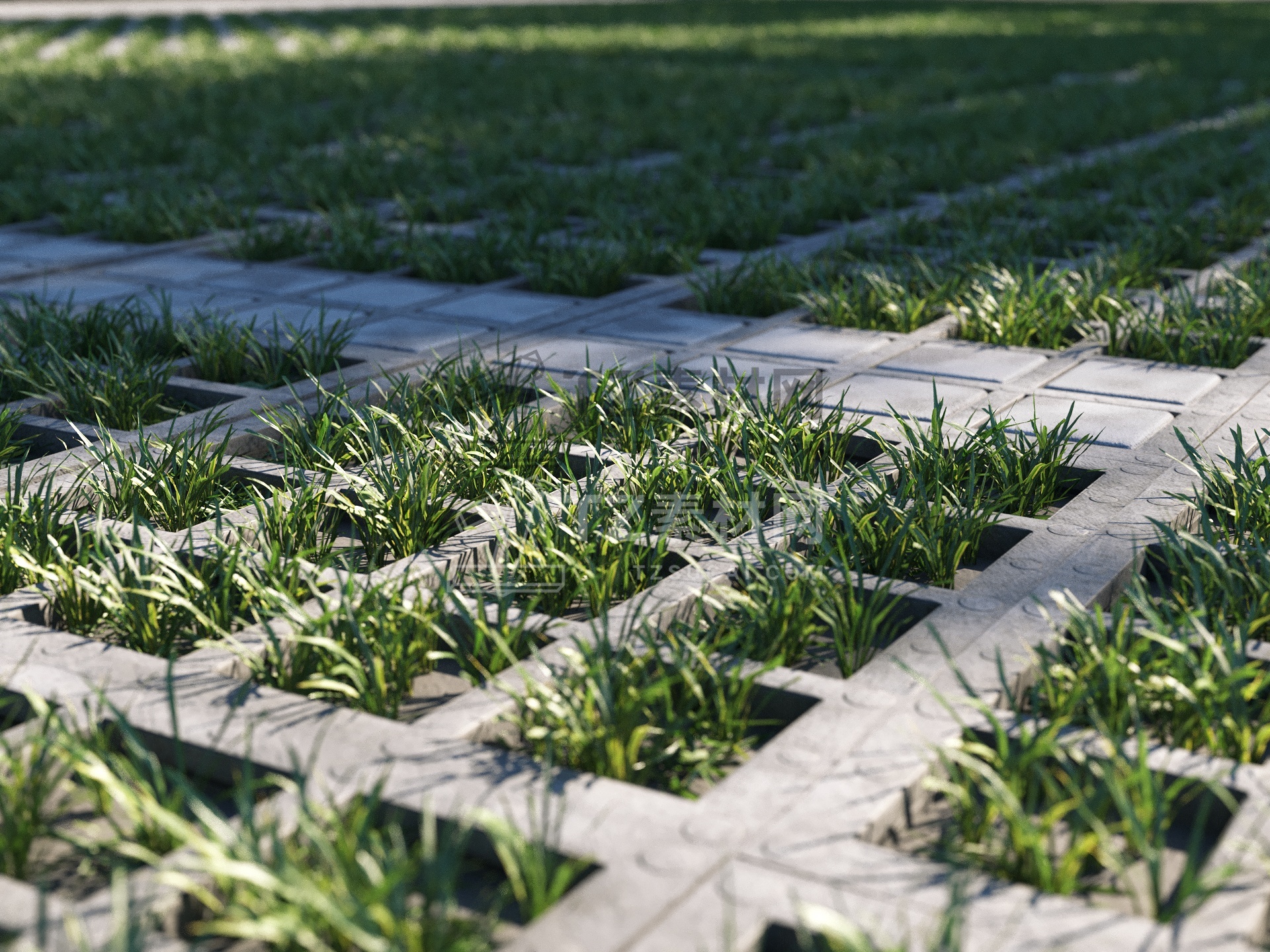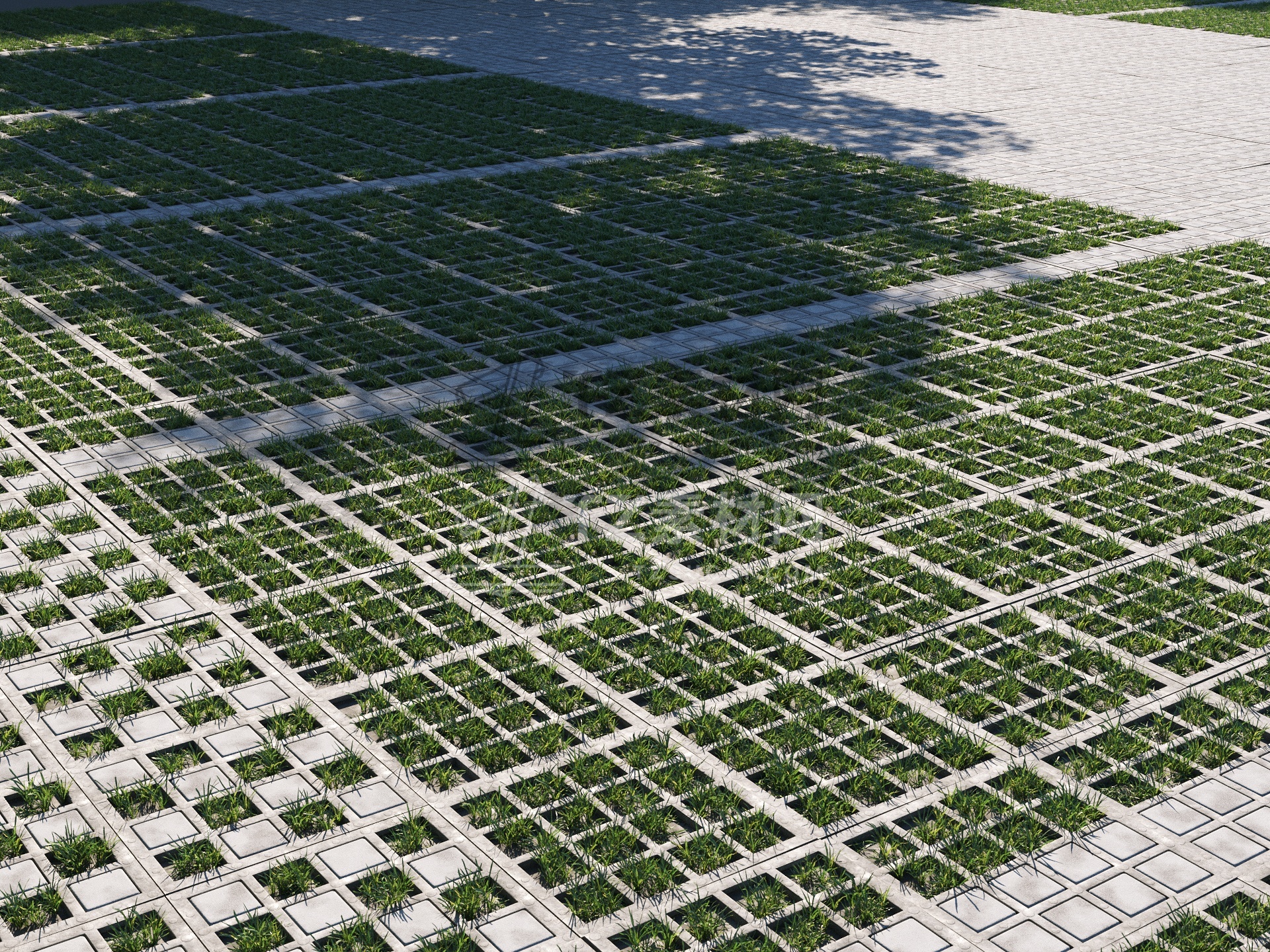 停车场里方块效果草地模型,3DS MAX格式,需要Forest Pack Pro 5.4.0插件或更高版本,支持Corona和Vray渲染器,包含贴图材质