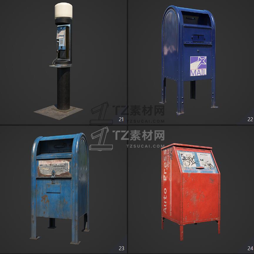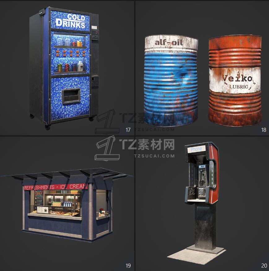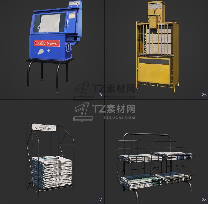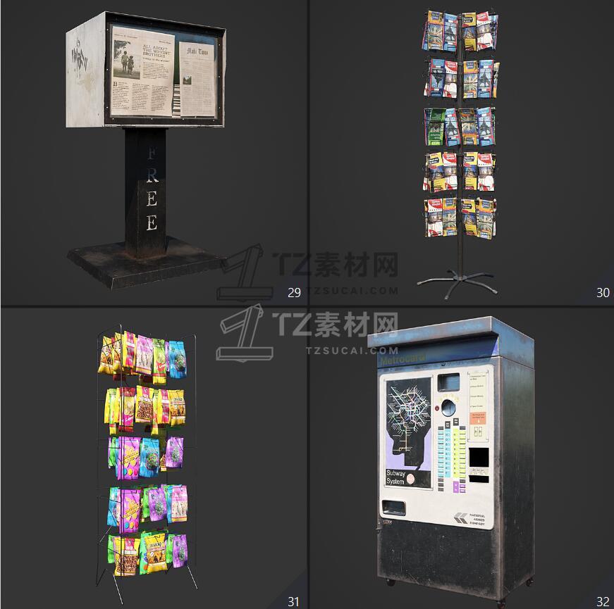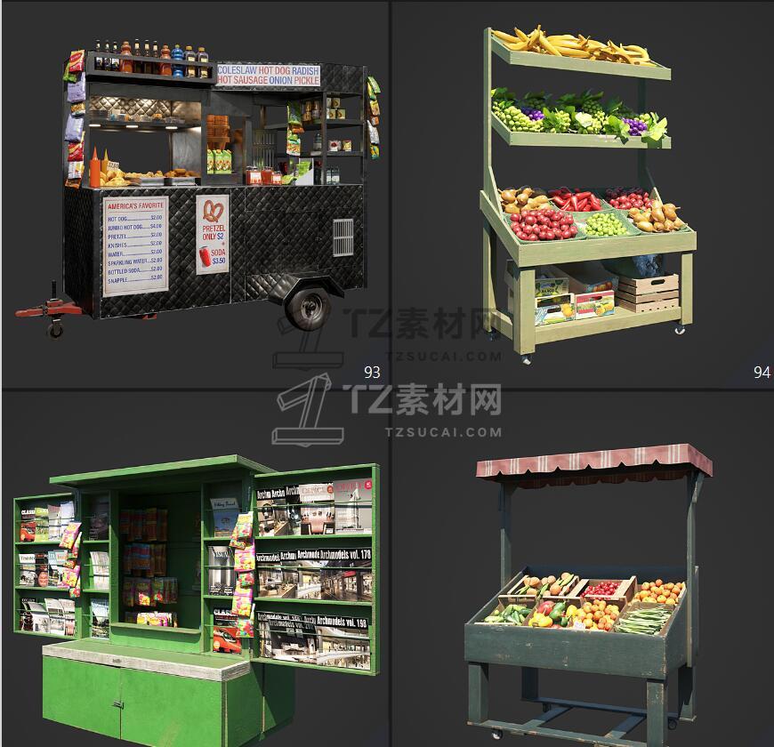 Archmodels vol. 246包含96个街道室外商店招牌公共设施等3D模型,比如商店广告牌、垃圾箱、报亭、广告柱、栏杆和建筑元素、公共交通站等,3DS MAX格式,Vray和Corona渲染器,包含贴图材质