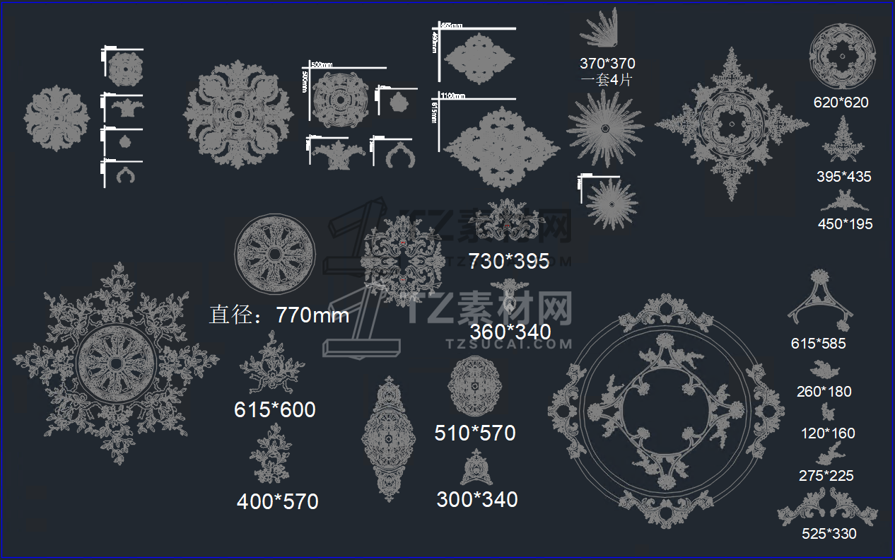 法式顶面灯盘CAD模块