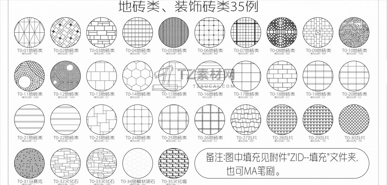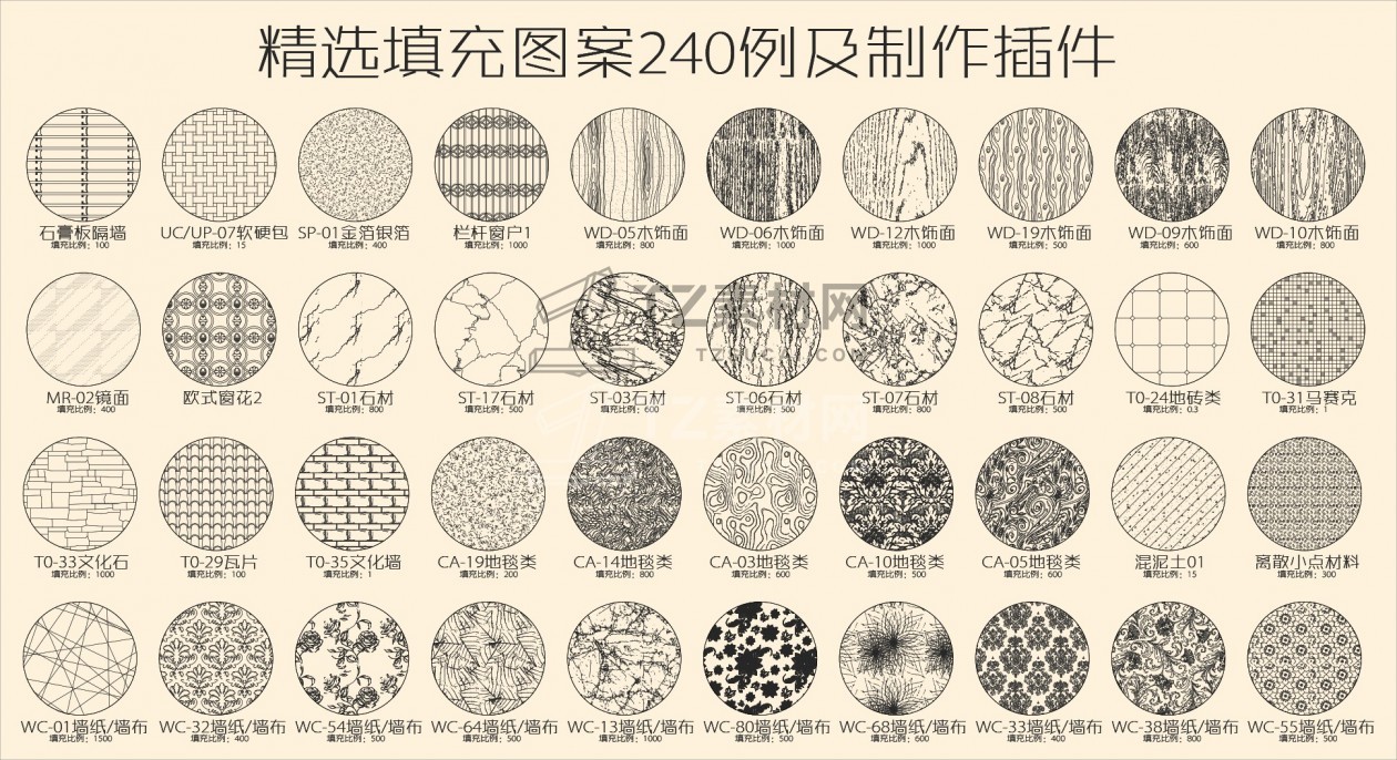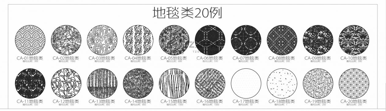 2.CAD填充图案,已做归类处理,增加大小比例可根据当前进行大小调整。
