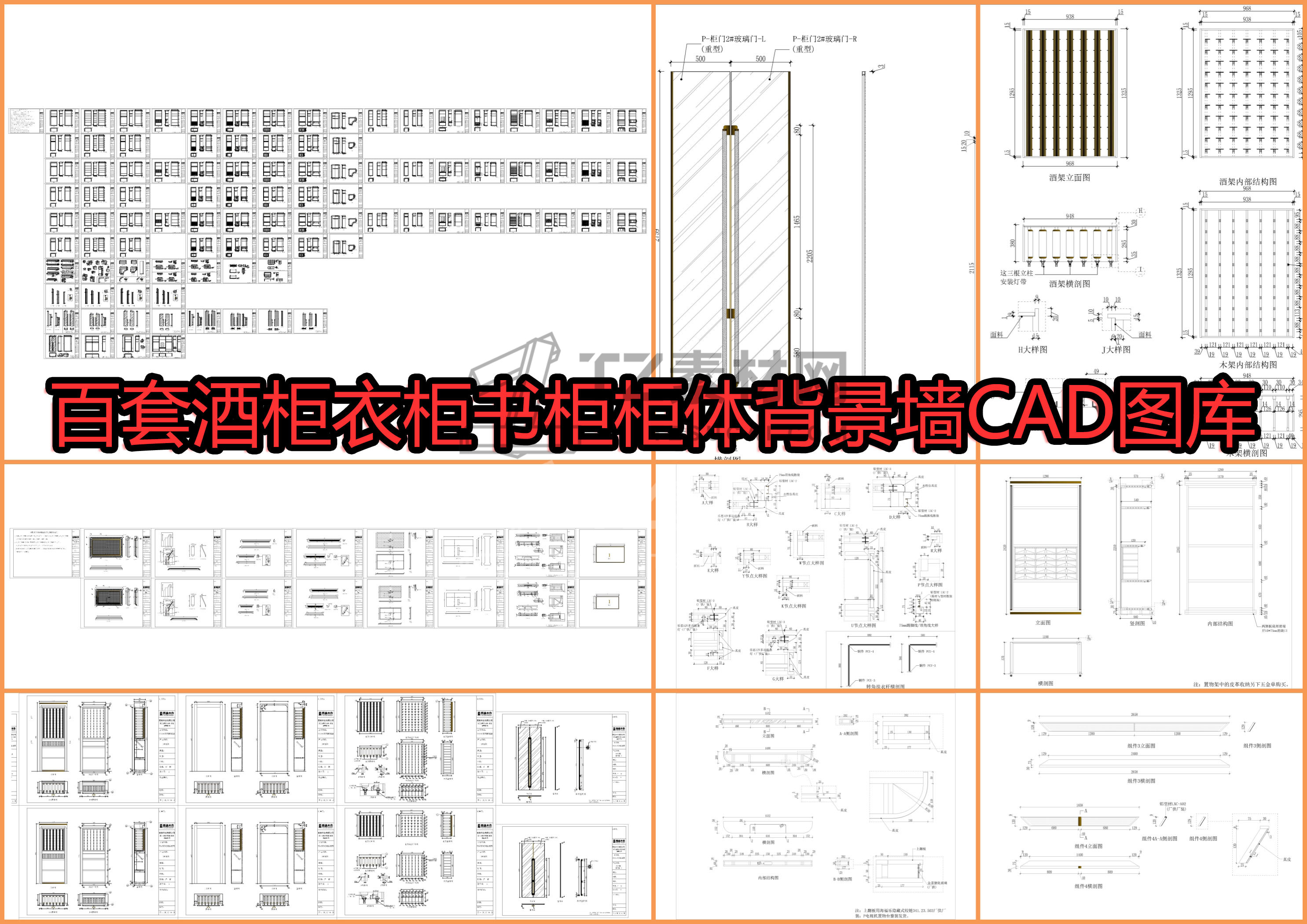 百套酒柜衣柜书柜柜体背景墙CAD图库