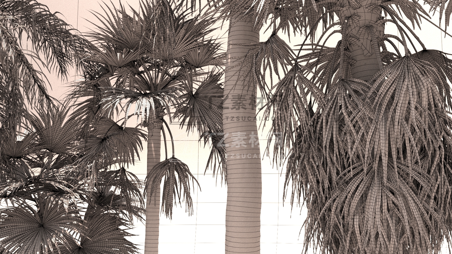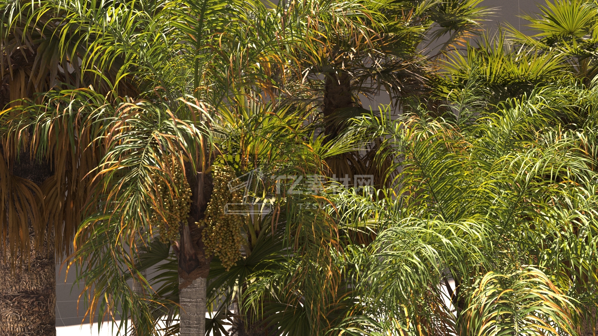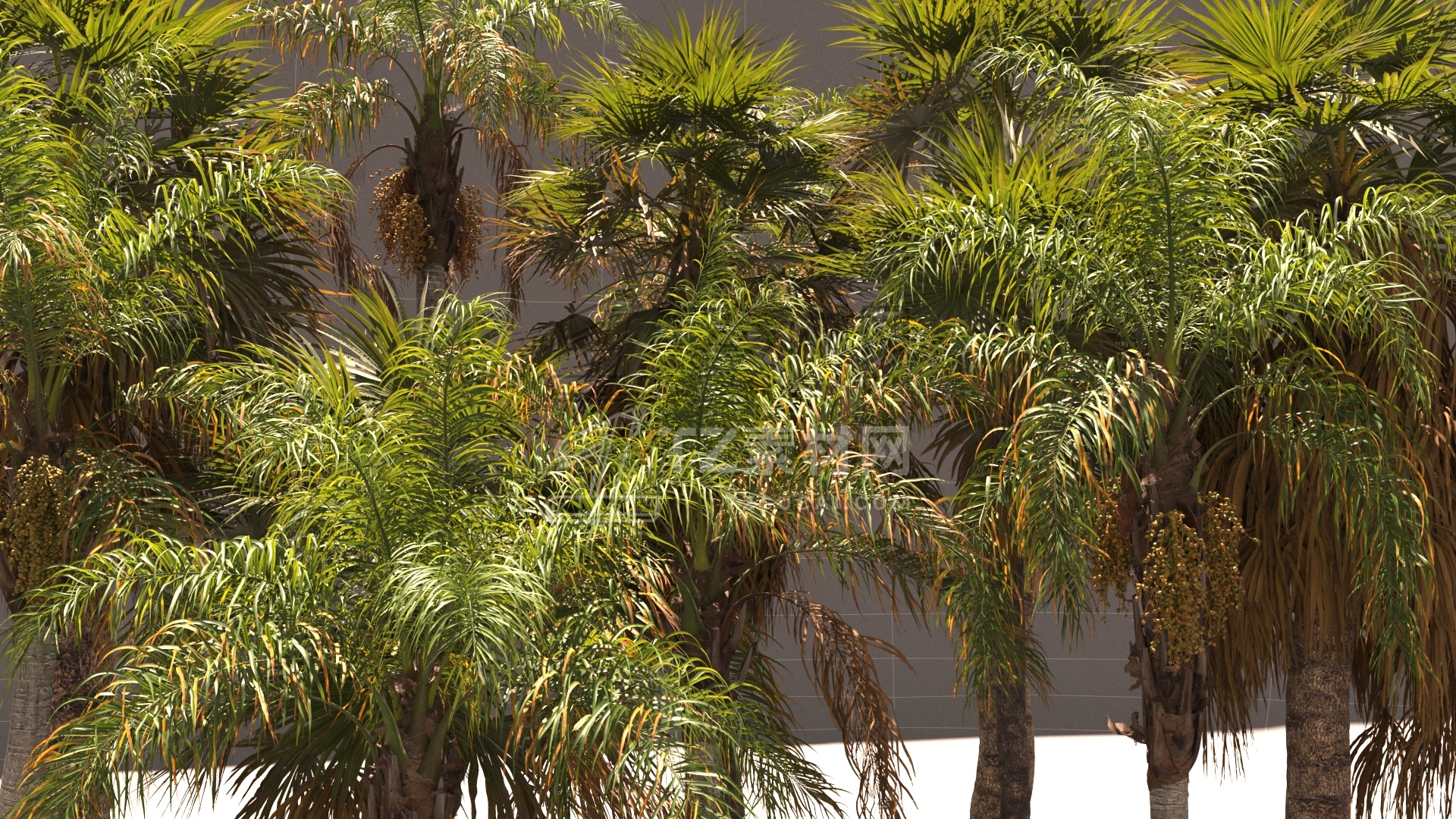 包含12组棕榈树植物3D模型,3D MAX格式,包含贴图材质Max 2021 v-ray