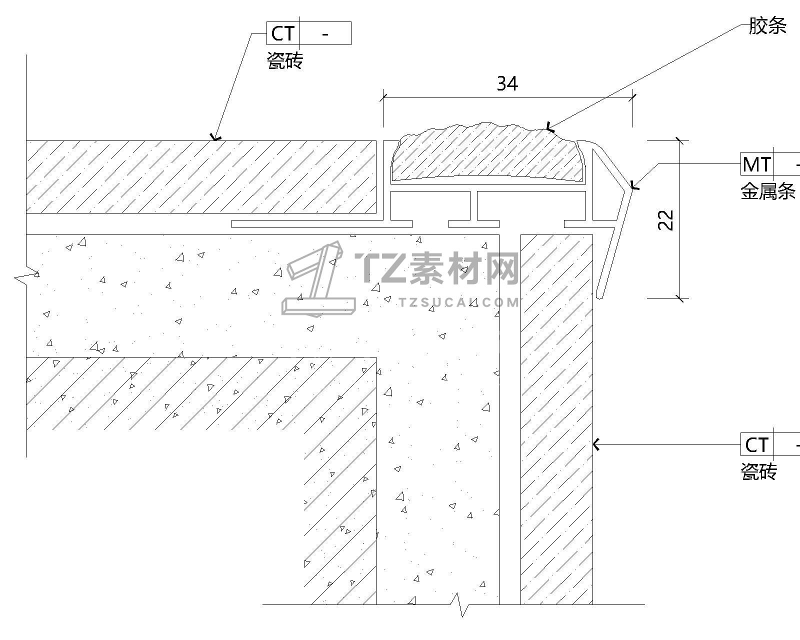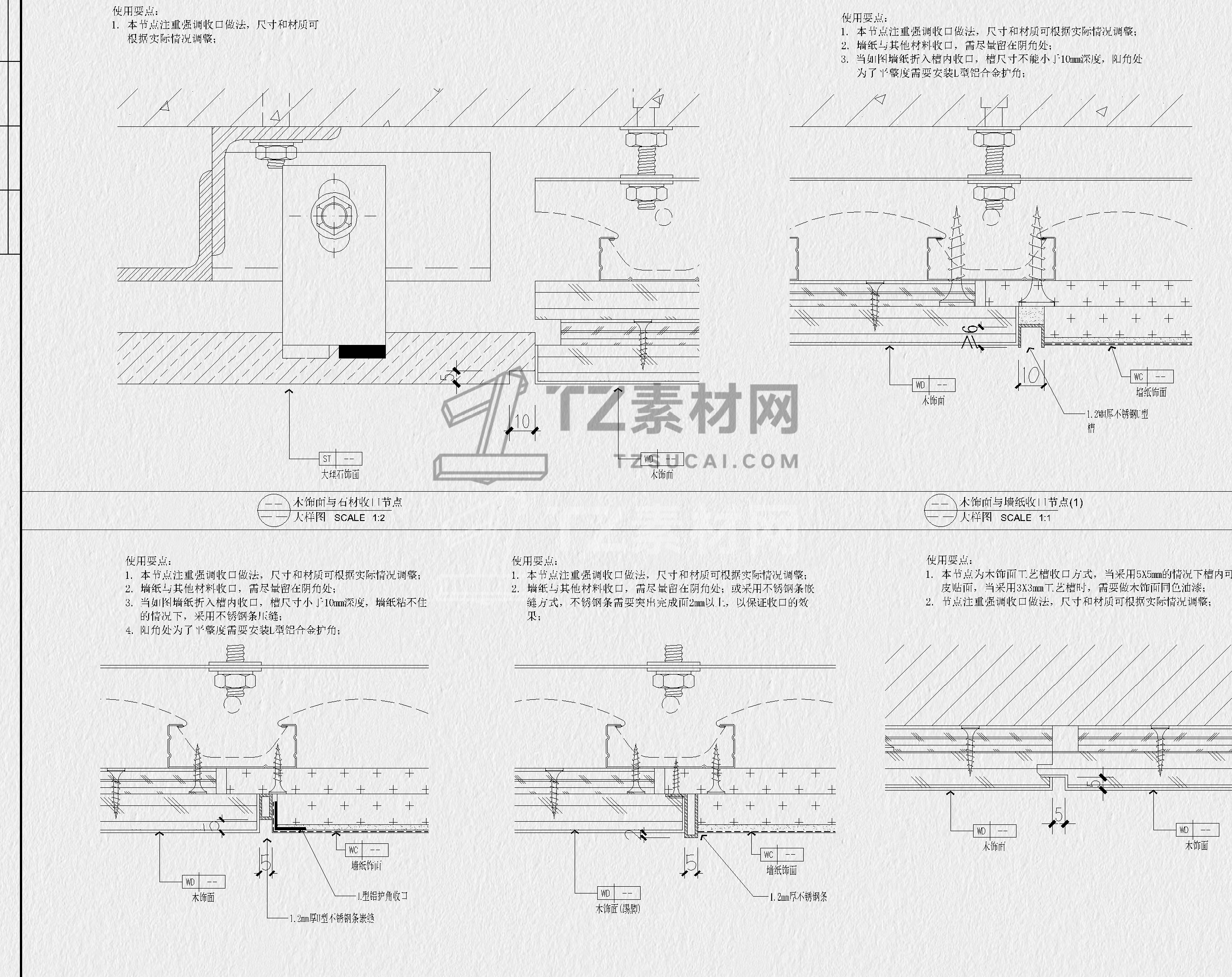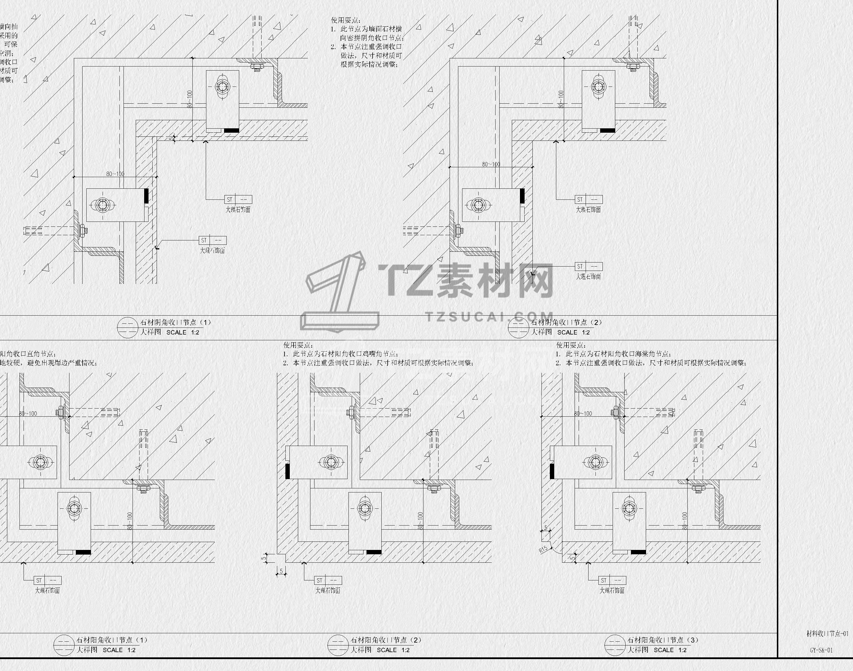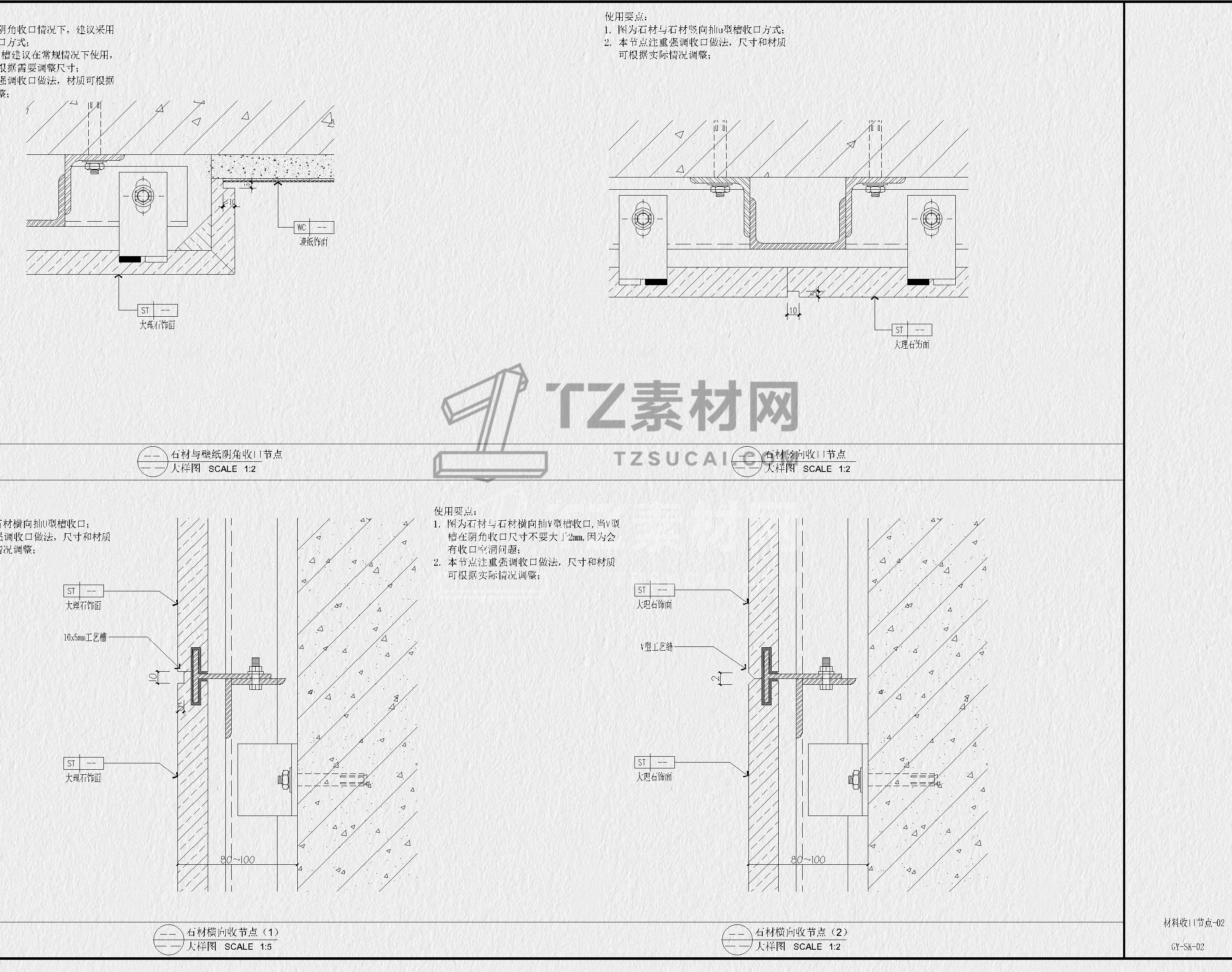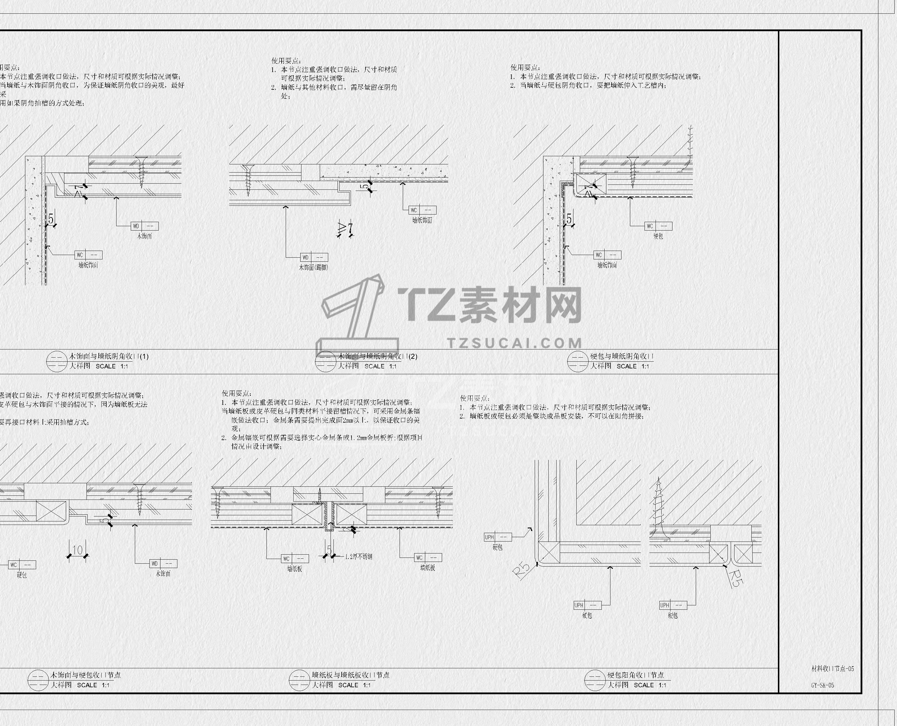 收口工艺CAD施工图 墙面节点CAD 室内收口CAD 地面节点CAD