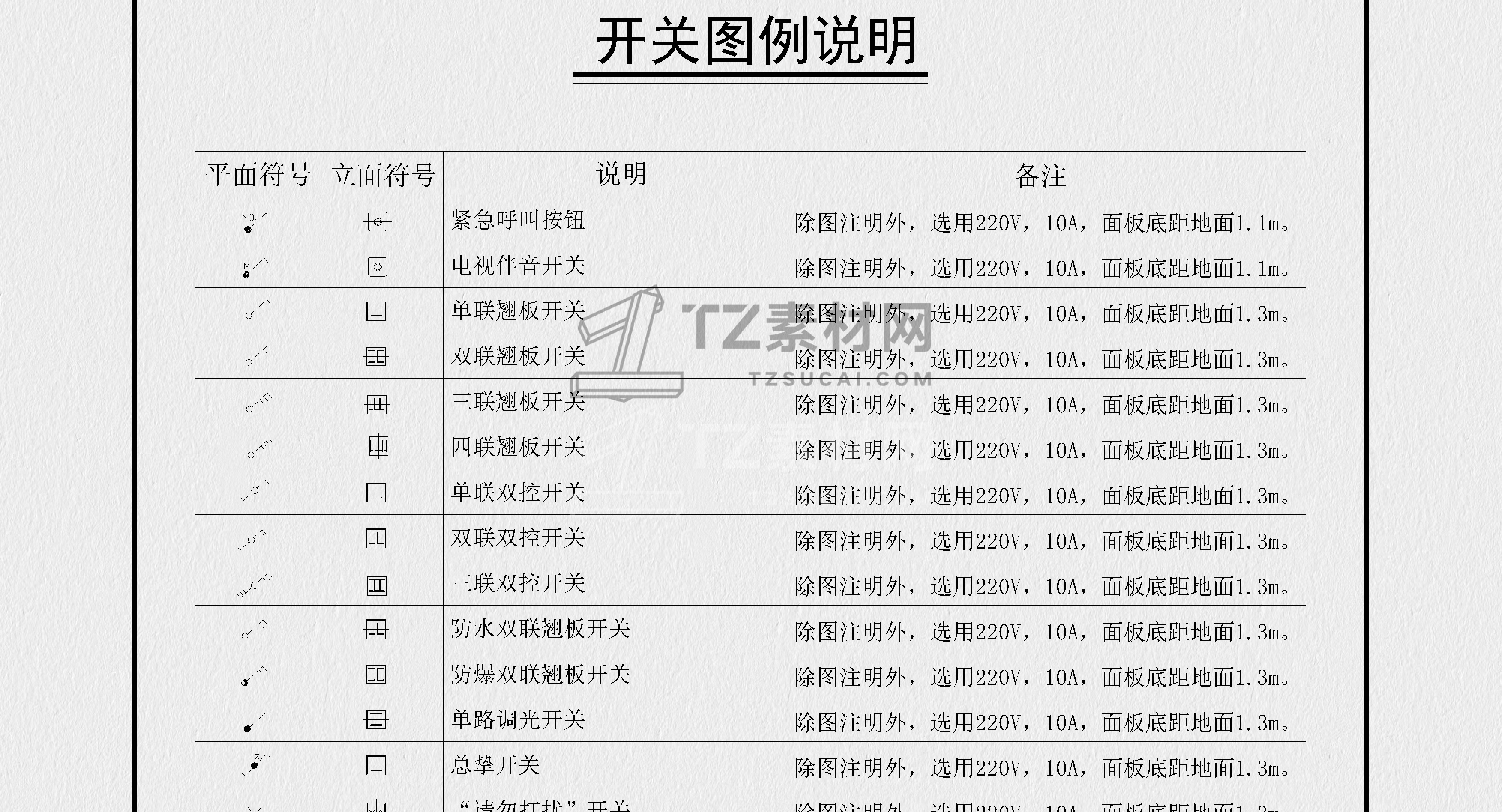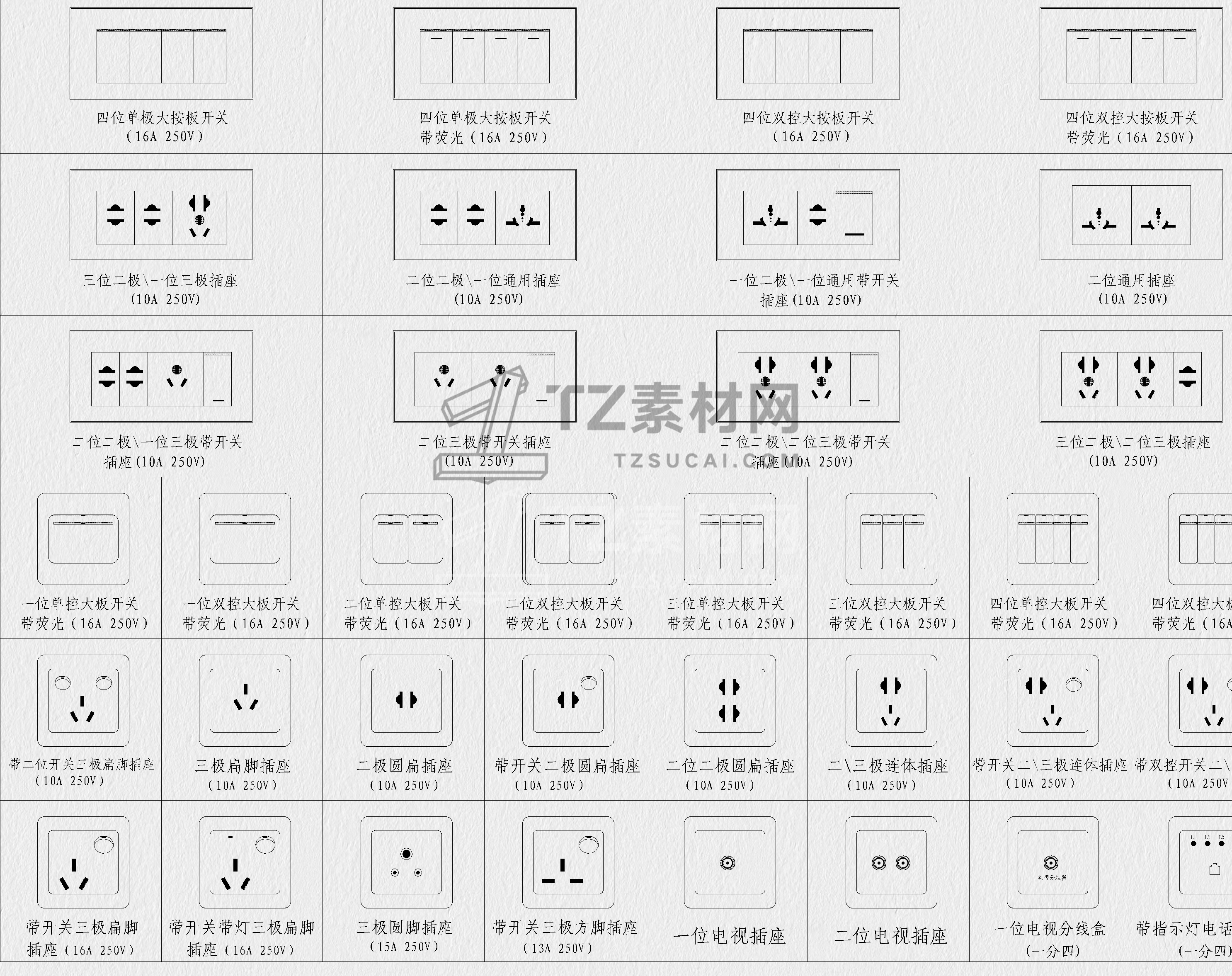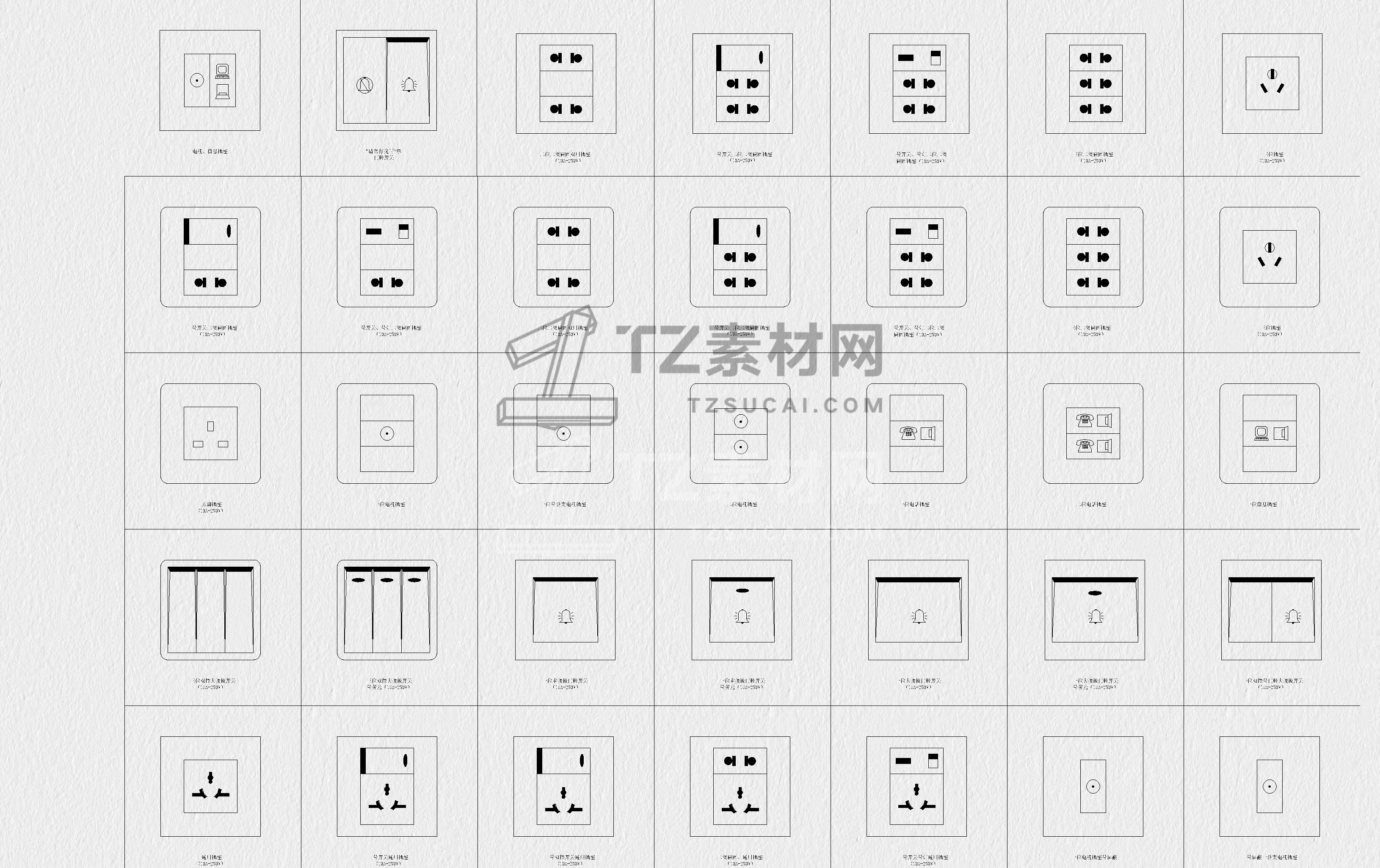 开关插座CAD 开关CAD 开关面板CAD 灯具CAD照明CAD插座CAD照明符号