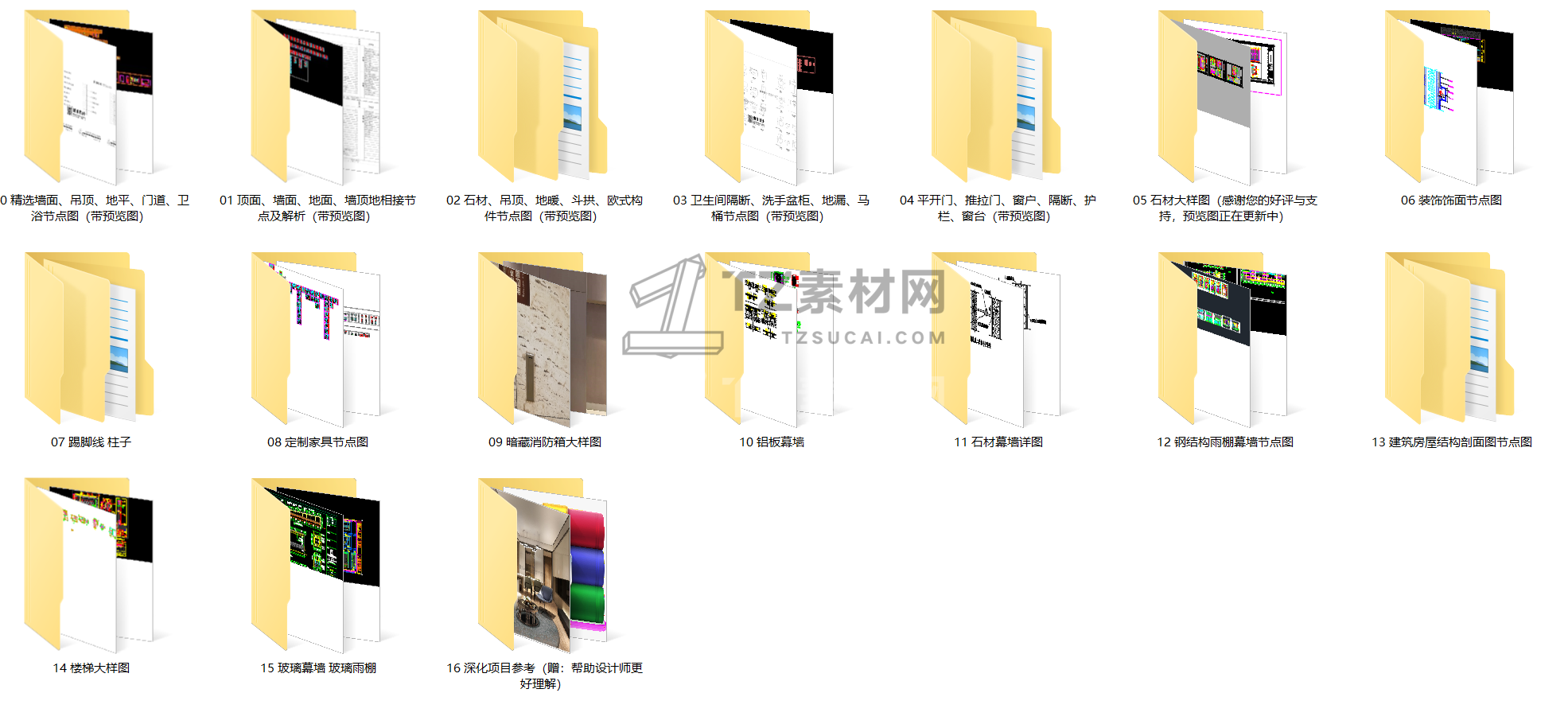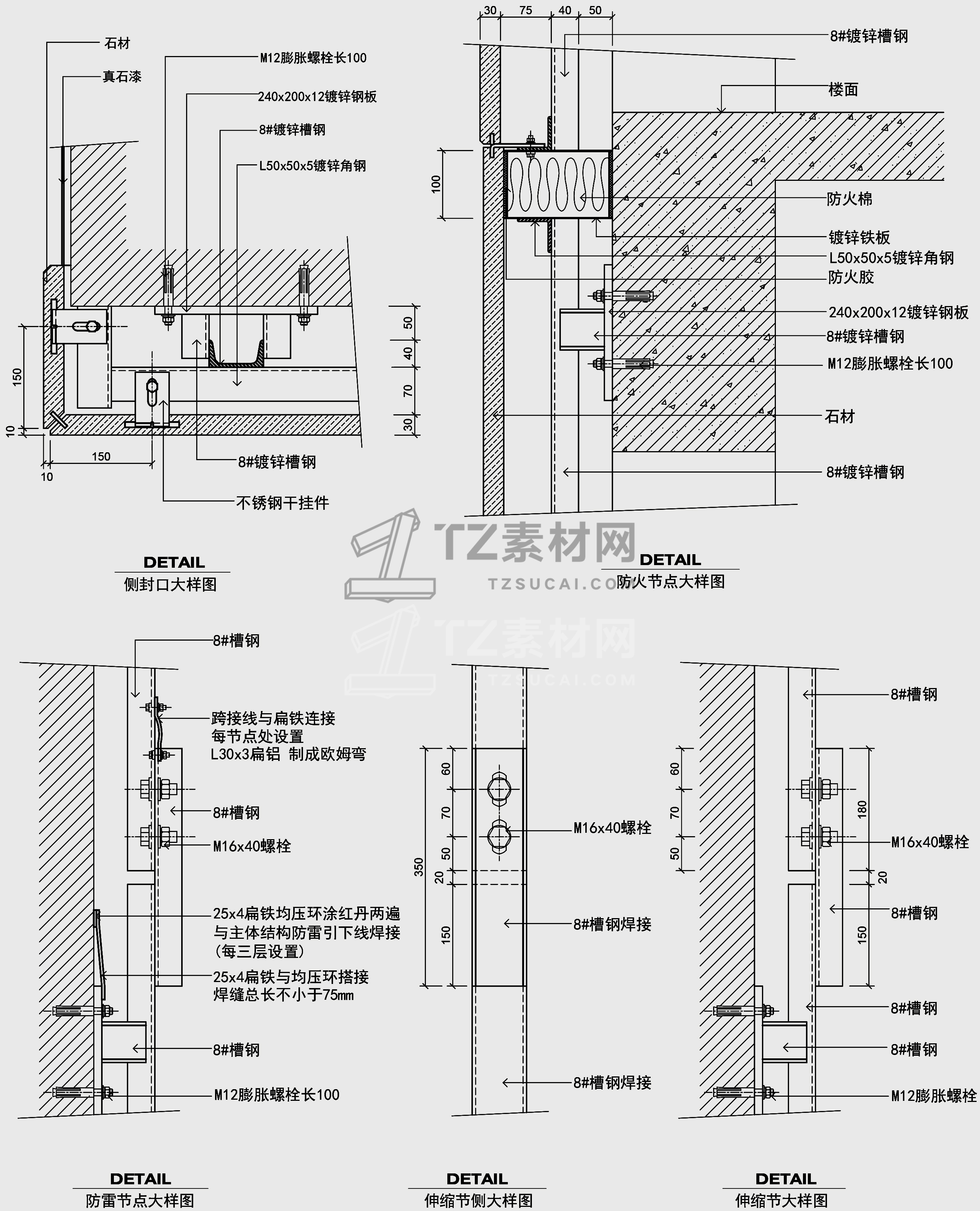 在从各式材料分类:玻璃、木饰面、石材、钢结构等等节点大样图