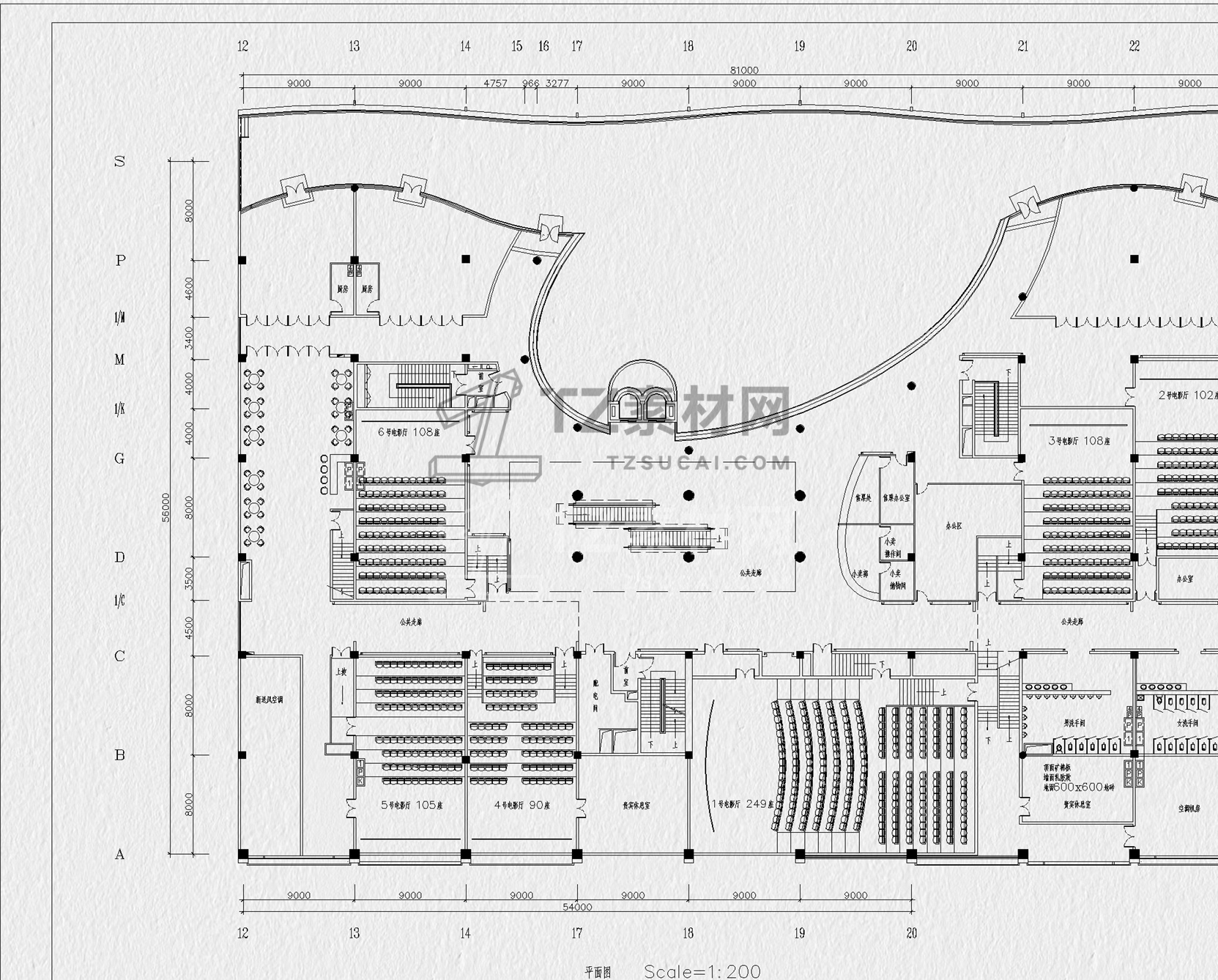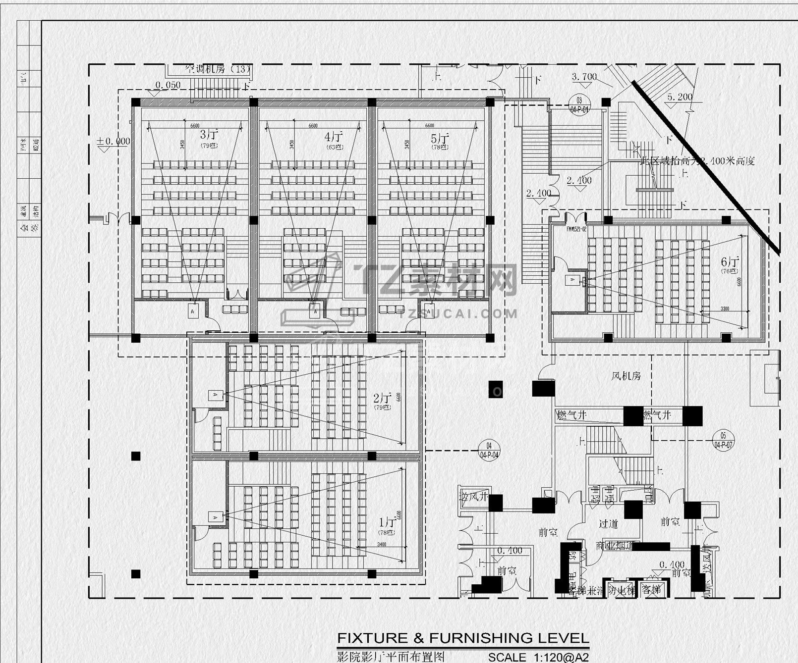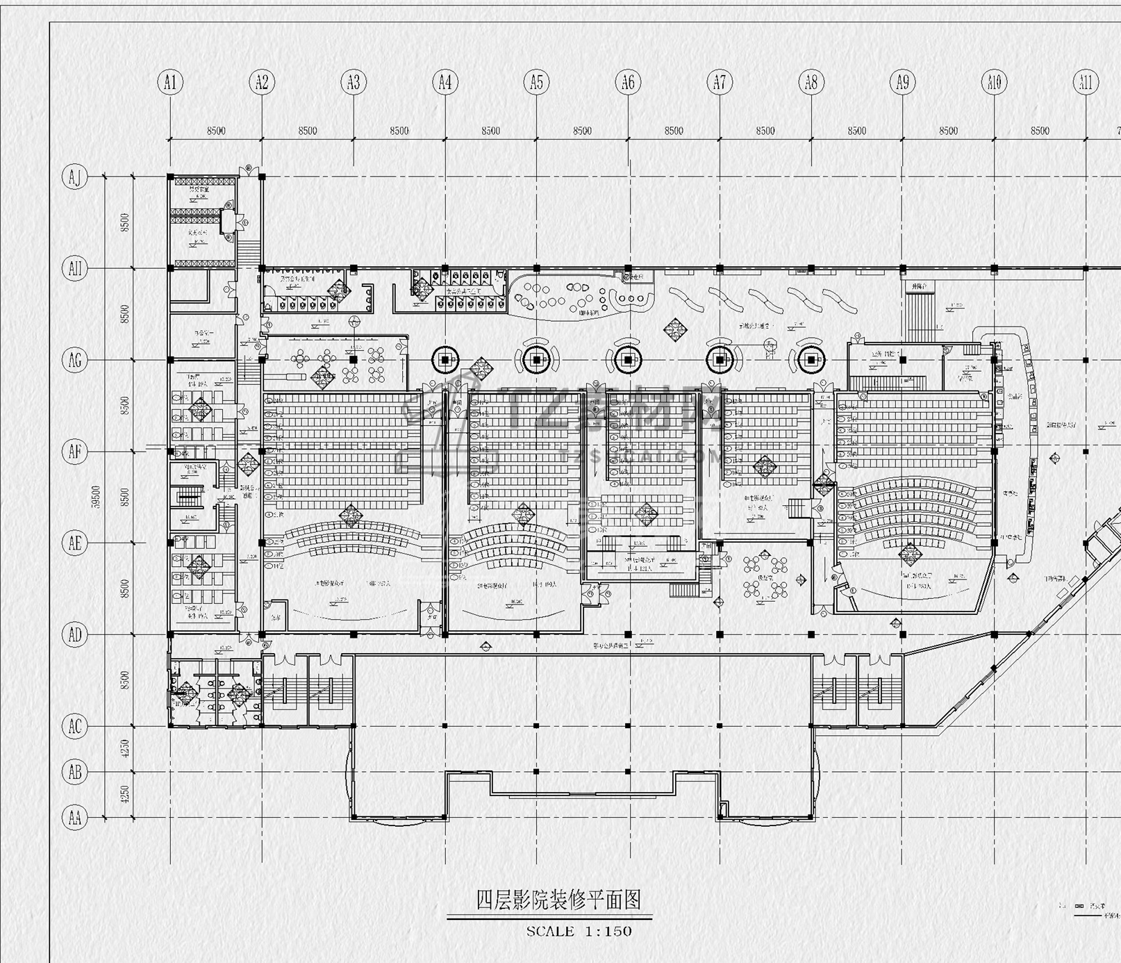 电影院CAD施工图 影厅CAD 电影院平面布置图CAD 电影城CAD