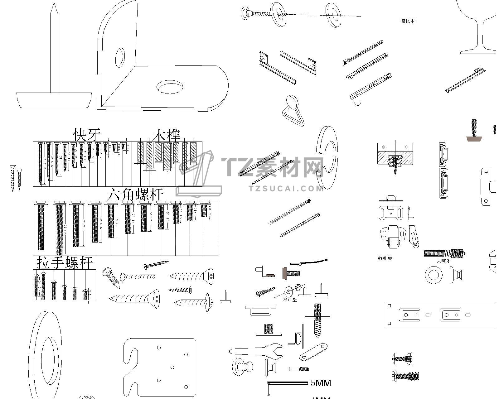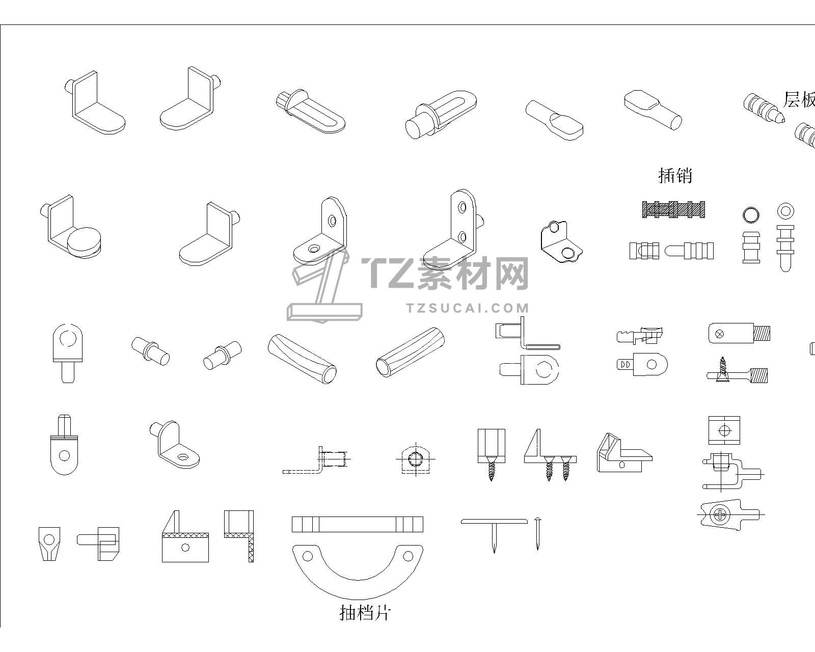 全屋定制五金CAD 五金配件CAD 螺丝CAD 拉手CAD 合页CAD 五金工具CAD