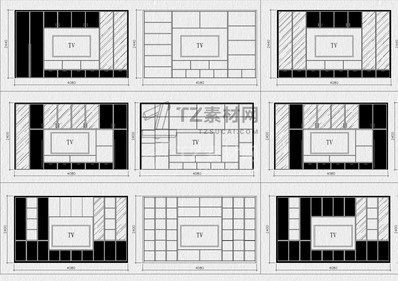 电视墙CAD 电视背景墙CAD 客厅电视墙CAD 电视柜CAD