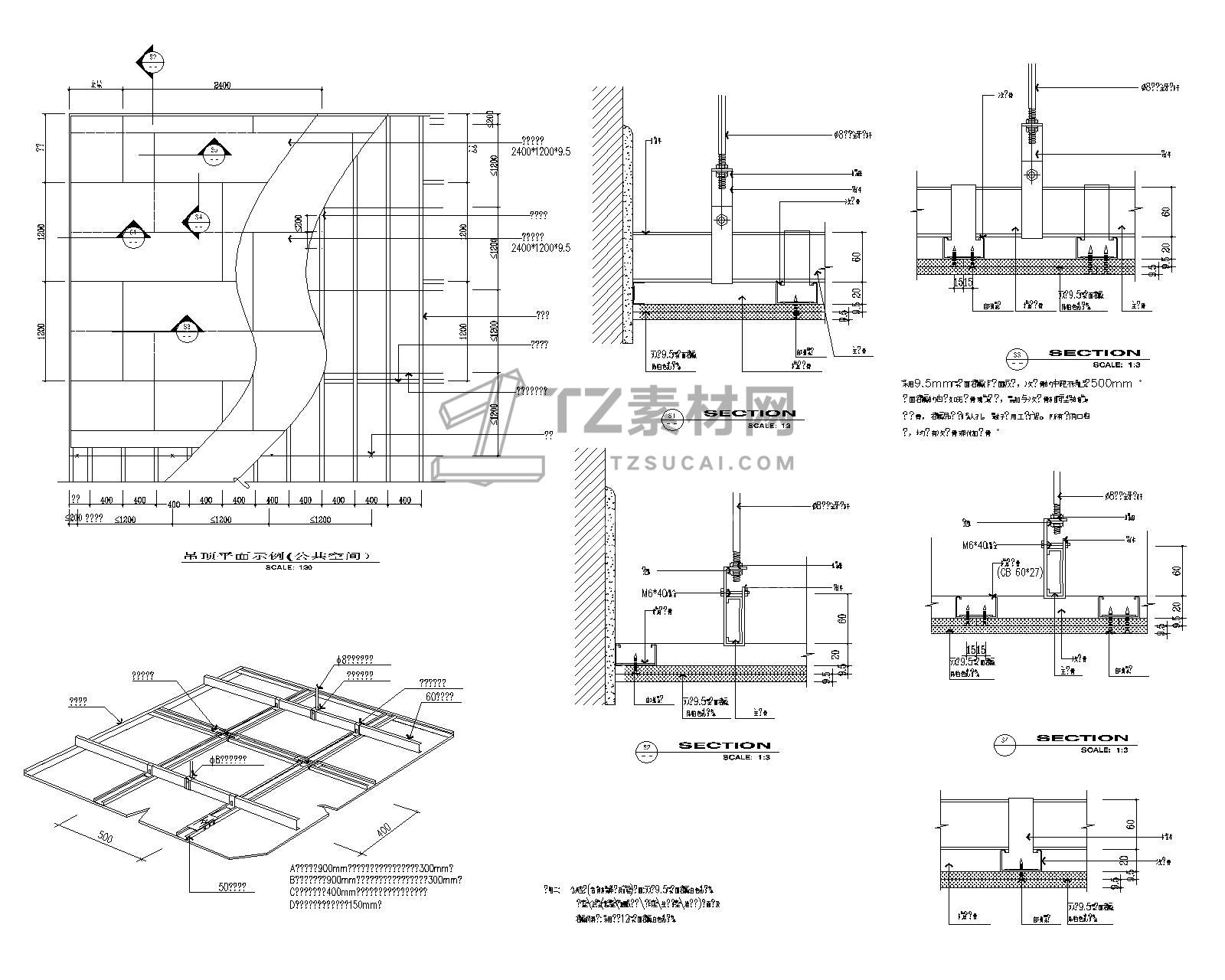 天花吊顶CAD 吊顶节点CAD 吊顶大样图CAD 轻钢龙骨吊顶CAD