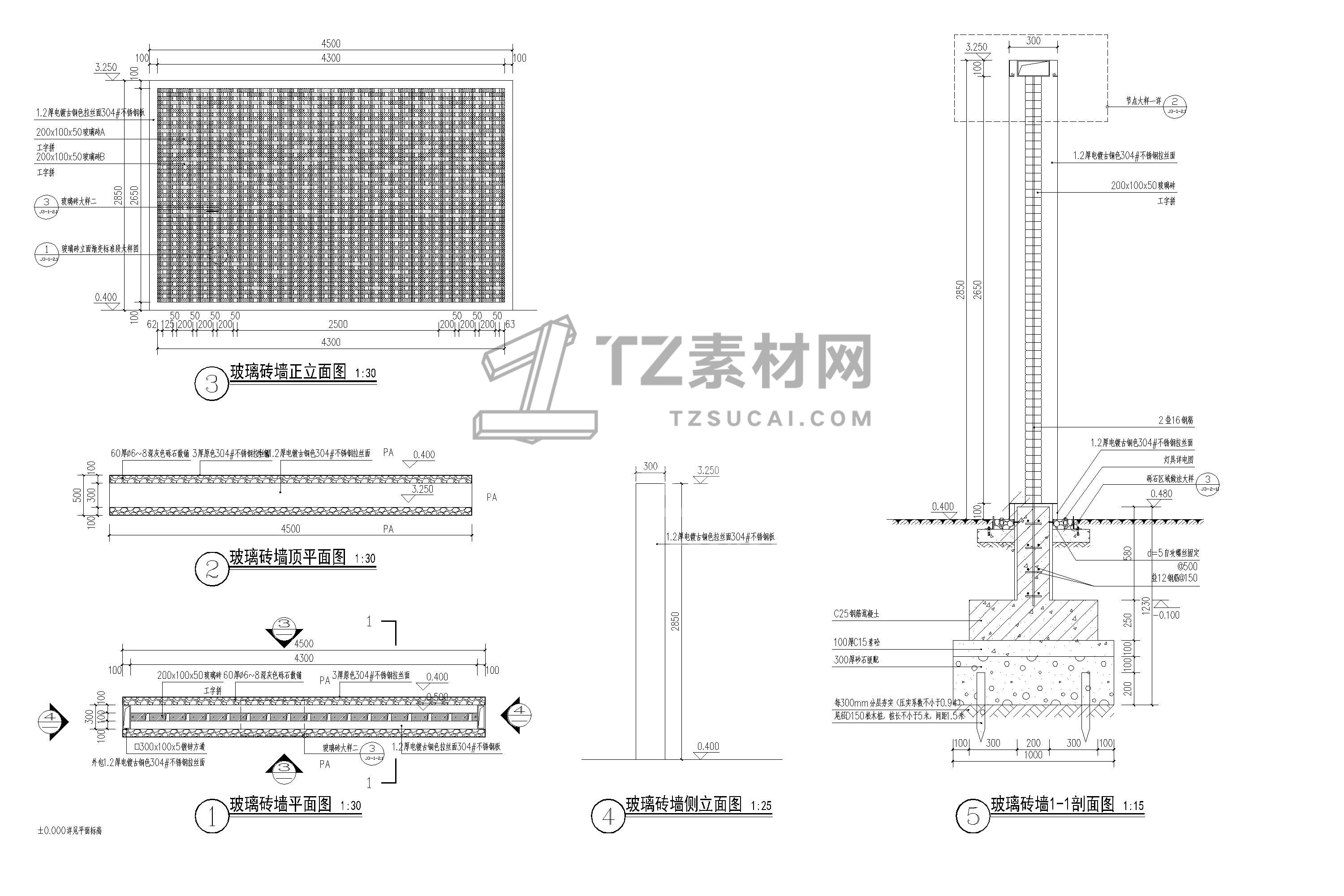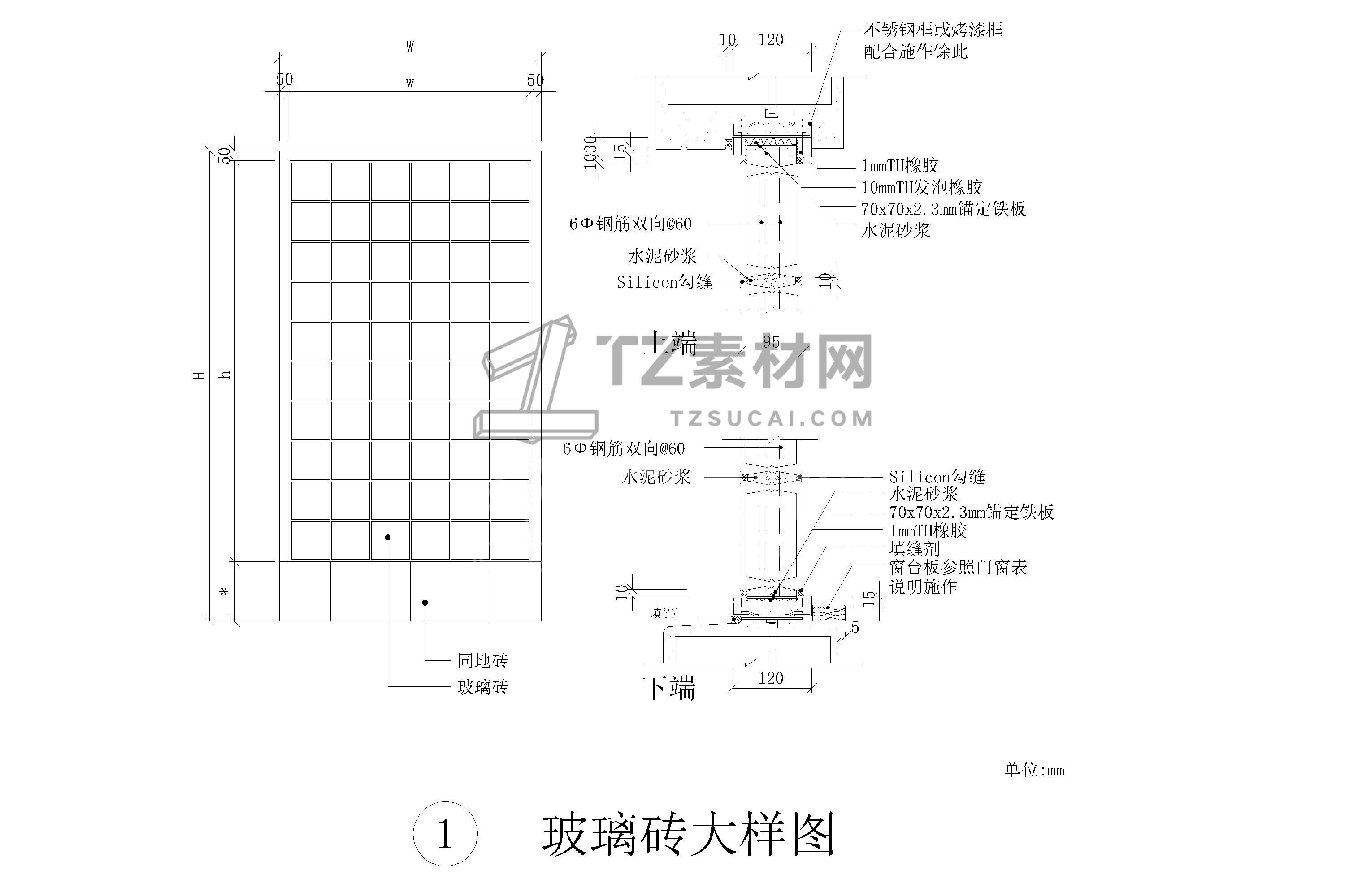 透明玻璃砖CAD施工图 玻璃砖景墙CAD 玻璃砖节点CAD 玻璃砖隔断
